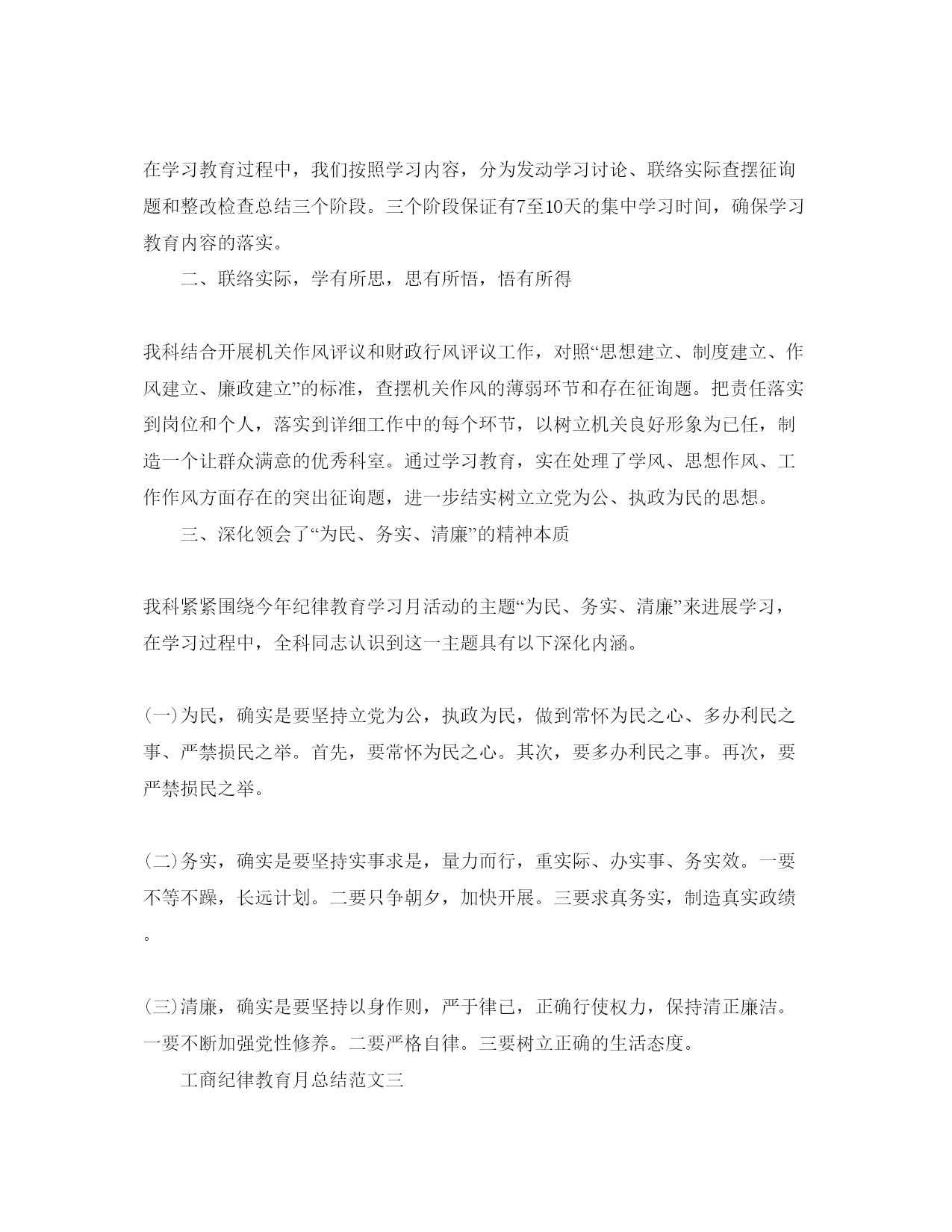 2022年工商纪律教育月参考总结.docx