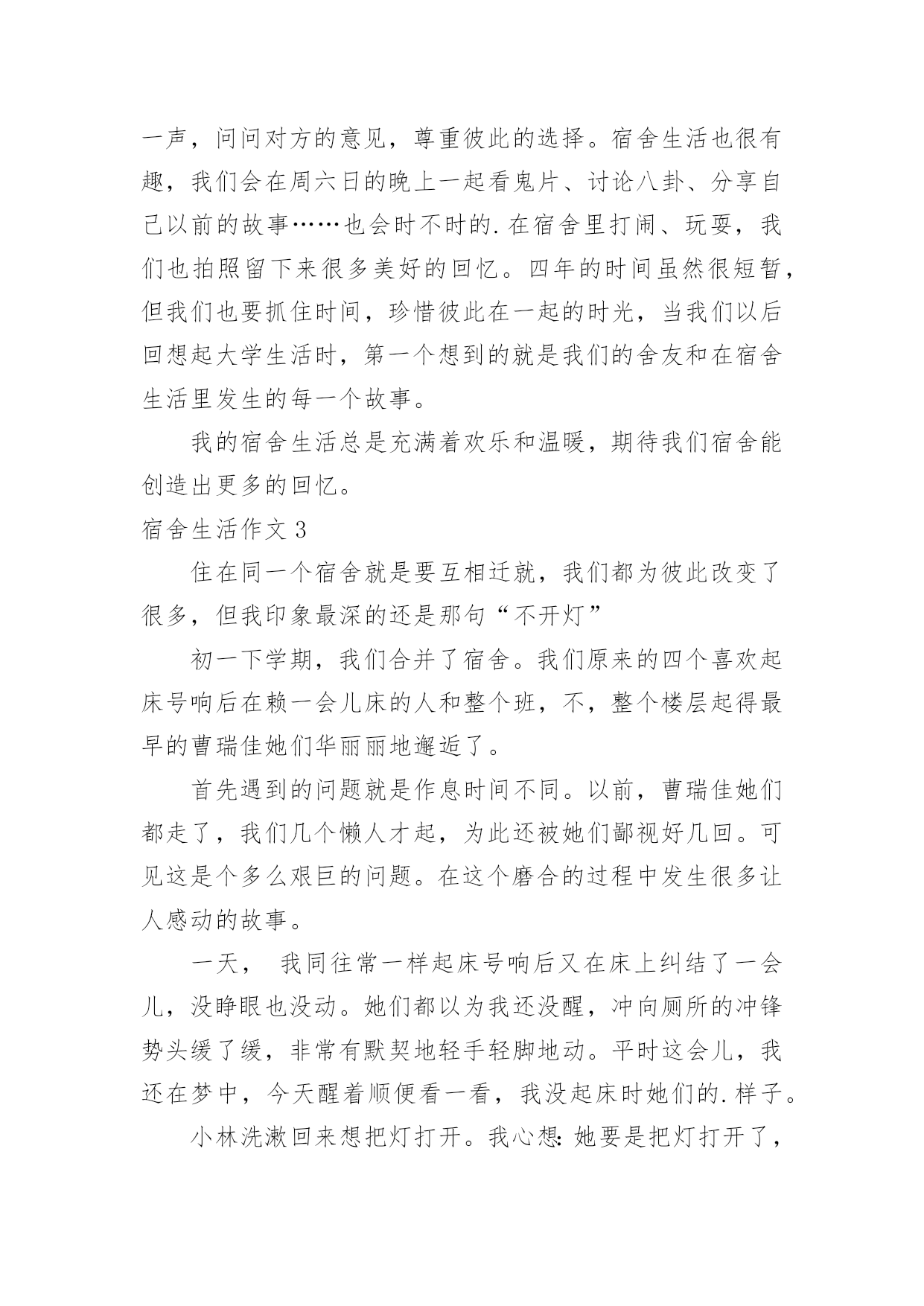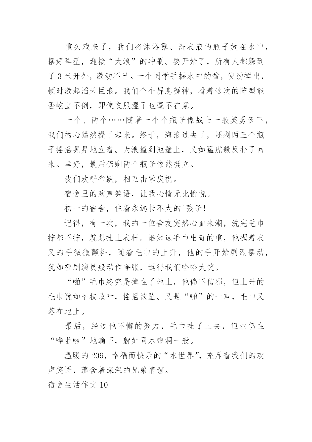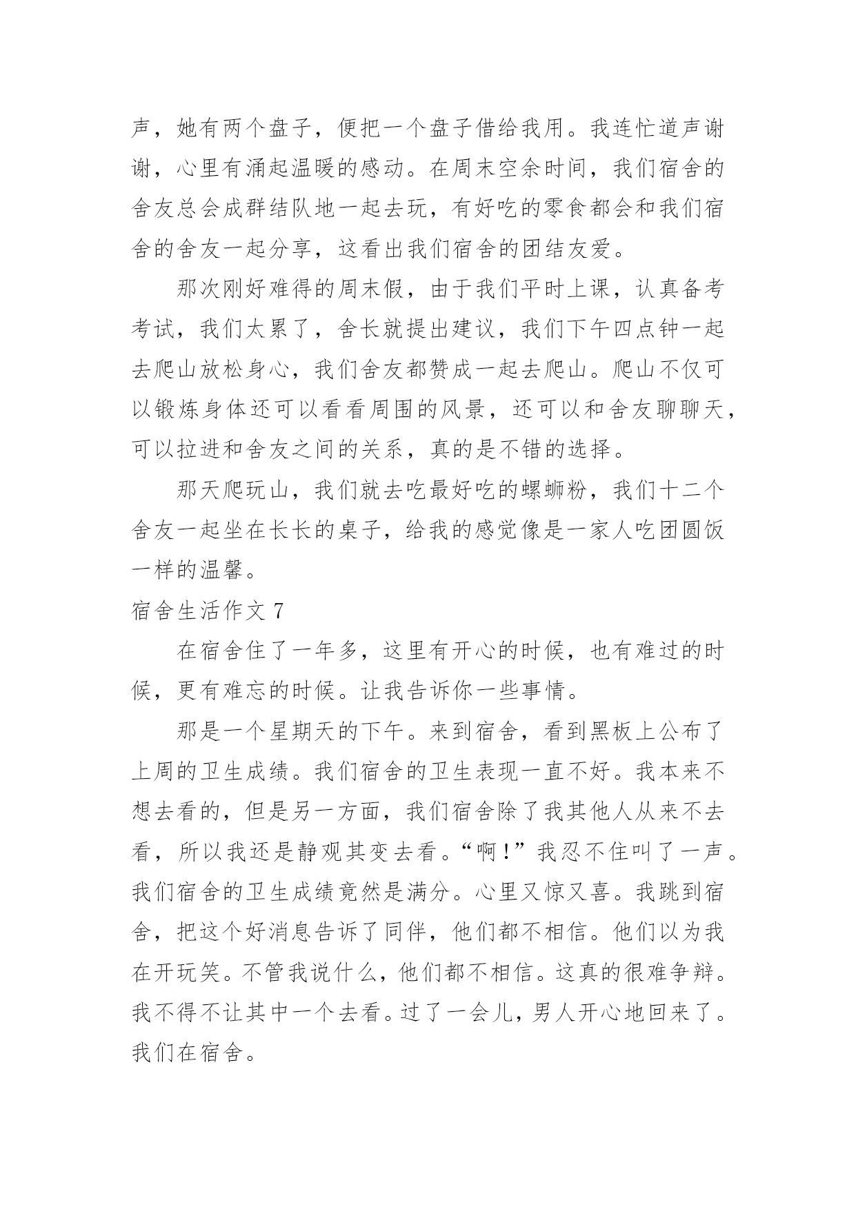 宿舍生活作文宿舍生活作文(通用15篇)在平日的学习、工作和生活里,大家都尝试过写作文吧,作文是经过人的思想考虑和语言组织,通过文字来表达一个主题意义的记叙方法。作文的注意事项有许多,你确定会写吗?下面是小编整理的宿舍生活作文,仅供参考,大家一起来看看吧。宿舍生活作文1一到杭外,我在名单上就找到了我的名字,我被安排到了小2班,宿舍是11幢的11205,让我的父母一切手续办好之后,我就迫不及待地来到了宿舍。一进寝室,我就说:“这不就是我想要的寝室吗?”学习桌、电扇、高低床、空调、卫生间。生活基本条件真是应有尽有。我是第一个来的.,我看了看名单,一个竟然是我们学校3班的一个小个子,一个叫何林轩(也是龙泉人)还有一个衢洲小男孩。第一天晚上可能是大家太兴奋了,晚上三点居然不约而同地在一起开狂欢,也许你会想你们怎么躲过生活老师的检查的吧,因为我们在第一天的时候就练就了一身熟练的伪装术,看到老师的手电亮了上面的人就会报1,然后全体都装成睡觉的样子,等瞒天过海之后,我们再聊得热火朝天,如果你想问我们聊的话题是什么,认识我的就知道了,对我这个电脑迷来说,永恒的话题就是——游戏。由于天气很热,每天中午都会看见同学大包小包地带着零食和冰饮料拿进宿舍,超市里说人山人海真是一点也不为过啊,收银处原来有了3个,还不得不又开放了一个,可队伍还排得像长龙,买一盒冰淇淋要等到化才能排好,所以大家都在快到收银处时才拿。这时回到宿舍,走廊里都甚至可以闻到一股股食物的清香,让没买的同学嘴谗虽然没多少钱,但又不得不去买。宿舍生活就是那么有趣!宿舍生活作文2宿舍生活对我来说是一个新的知识点,因为我从来没有住过宿,不知道如何跟舍友们相处。在大学的时候我就体会到了这种感觉。刚刚开始给我的感觉就是陌生、拘谨、不好意思,到后面经过我们之间朝夕相处的时候就发现我们的感情变得更加的深厚了,大家都对方有了更多的认识和了解,相处起来也轻松了不少。现在我也已经是大二了,不知不觉间我们认识已经有两年的时间了,时间过得真快呀!翻开以前拍摄的那些照片,依然还能看出那时候我们每个人的表情和动作,很青涩懵懂,对比于现在有种焕然一新的感觉。起初大家都是小心翼翼的相处,现在我们可以自由的调侃对方,有什么事情都不比藏着掖着,有事就说事,大家都会帮助我们的,让我体会到了很对的温暖。原来除了我们的父母之外还有其他人也很关心我们,可以分享自己的秘密或故事给他们听,大家也有共同的爱好,能愉快的融合在一起。而且我们出门都是集体活动,做什么事情都要告诉对方一声,问问对方的意见,尊重彼此的选择。宿舍生活也很有趣,我们会在周六日的晚上一起看鬼片、讨论八卦、分享自己以前的故事……也会时不时的.在宿舍里打闹、玩耍,我们也拍照留下来很多美好的回忆。四年的时间虽然很短暂,但我们也要抓住时间,珍惜彼此在一起的时光,当我们以后回想起大学生活时,第一个想到的就是我们的舍友和在宿舍生活里发生的每一个故事。我的宿舍生活总是充满着欢乐和温暖,期待我们宿舍能创造出更多的回忆。宿舍生活作文3住在同一个宿舍就是要互相迁就,我们都为彼此改变了很多,但我印象最深的还是那句“不开灯”初一下学期,我们合并了宿舍。我们原来的四个喜欢起床号响后在赖一会儿床的人和整个班,不,整个楼层起得最早的曹瑞佳她们华丽丽地邂逅了。首先遇到的问题就是作息时间不同。以前,曹瑞佳她们都走了,我们几个懒人才起,为此还被她们鄙视好几回。可见这是个多么艰巨的问题。在这个磨合的过程中发生很多让人感动的故事。一天,我同往常一样起床号响后又在床上纠结了一会儿,没睁眼也没动。她们都以为我还没醒,冲向厕所的冲锋势头缓了缓,非常有默契地轻手轻脚地动。平时这会儿,我还在梦中,今天醒着顺便看一看,我没起床时她们的.样子。小林洗漱回来想把灯打开。我心想:她要是把灯打开了,我就起了吧。正当我以为这次观察行动一无所获的时候,我吃了一惊。本来我紧闭着眼睛准备迎来刺眼的强光时,李景双说了句:“不开灯。任芸还没起呢。”这语气没有任何波澜,却似在我的心底投入一粒小石子,泛起层层涟漪。我犯了女生的“职业病”――多愁善感,小小地感动了一把如今,我已再也不用“不开灯”这个特殊待遇了,但我不会忘记“不开灯”这句话,因为它充满着宿友对我的关怀,它一定会让我的宿舍生活充满爱!宿舍生活作文4那是一个星期天的下午,我来到宿舍里看到小黑板上公布了上星期的卫生成绩。我们宿舍的卫生成绩从来都不好的,我本想不去看,但是又一想,我们宿舍里除了我以外,别人从来都不去看,所以我还是耐着性子去看了。“啊!”我不禁叫了一声。我们宿舍的这次卫生成绩竟然是满分,我心里又惊又喜,高兴极了,蹦蹦跳跳地来到宿舍里,把这个好消息,告诉了我的同伴们,但是他们都不信,以为我在开玩笑,无论我怎么说他们都不信,真是“有口难辩”,我只好让其中的.一个人去看看,过