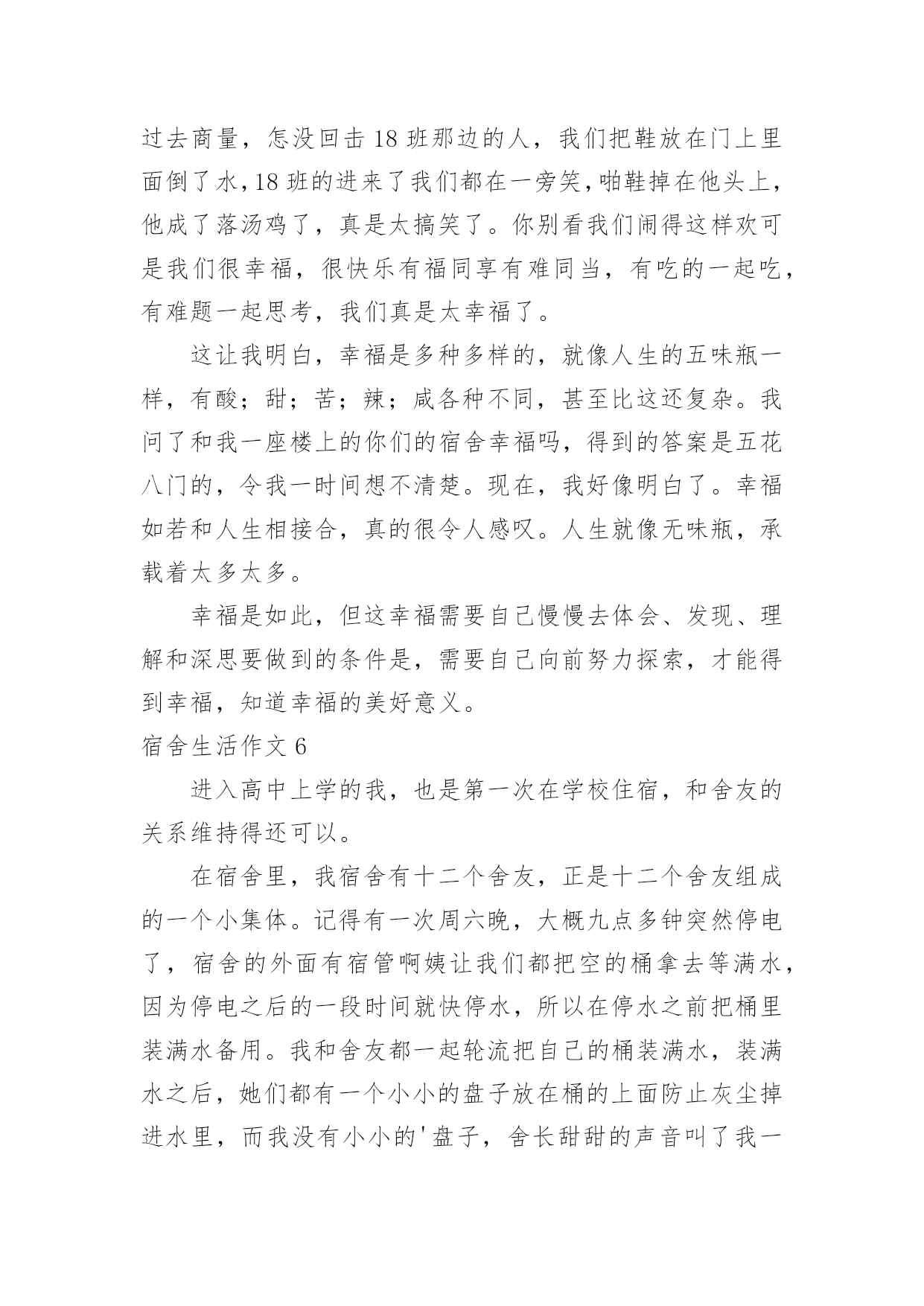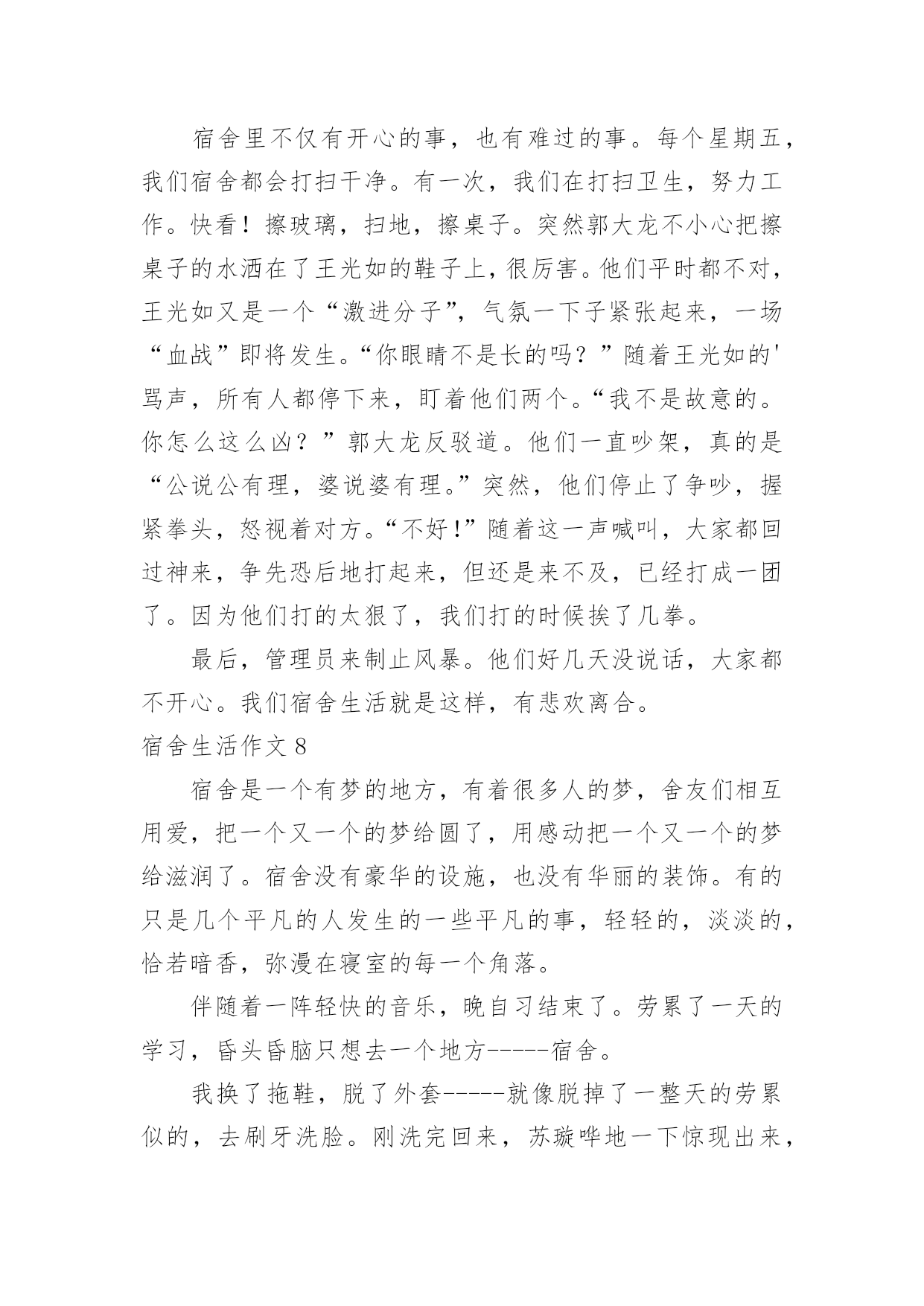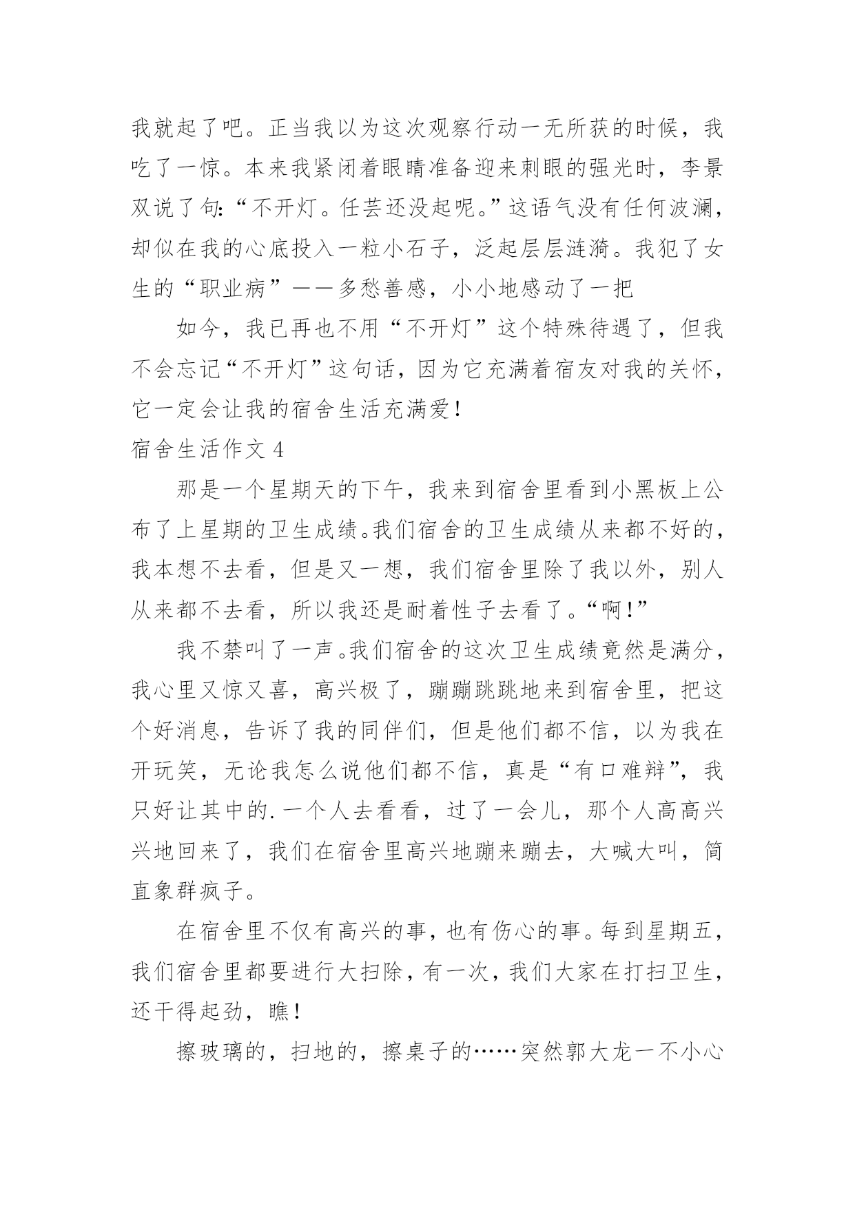 宿舍生活作文宿舍生活作文(通用15篇)在平日的学习、工作和生活里,大家都尝试过写作文吧,作文是经过人的思想考虑和语言组织,通过文字来表达一个主题意义的记叙方法。作文的注意事项有许多,你确定会写吗?下面是小编整理的宿舍生活作文,仅供参考,大家一起来看看吧。宿舍生活作文1一到杭外,我在名单上就找到了我的名字,我被安排到了小2班,宿舍是11幢的11205,让我的父母一切手续办好之后,我就迫不及待地来到了宿舍。一进寝室,我就说:“这不就是我想要的寝室吗?”学习桌、电扇、高低床、空调、卫生间。生活基本条件真是应有尽有。我是第一个来的.,我看了看名单,一个竟然是我们学校3班的一个小个子,一个叫何林轩(也是龙泉人)还有一个衢洲小男孩。第一天晚上可能是大家太兴奋了,晚上三点居然不约而同地在一起开狂欢,也许你会想你们怎么躲过生活老师的检查的吧,因为我们在第一天的时候就练就了一身熟练的伪装术,看到老师的手电亮了上面的人就会报1,然后全体都装成睡觉的样子,等瞒天过海之后,我们再聊得热火朝天,如果你想问我们聊的话题是什么,认识我的就知道了,对我这个电脑迷来说,永恒的话题就是——游戏。由于天气很热,每天中午都会看见同学大包小包地带着零食和冰饮料拿进宿舍,超市里说人山人海真是一点也不为过啊,收银处原来有了3个,还不得不又开放了一个,可队伍还排得像长龙,买一盒冰淇淋要等到化才能排好,所以大家都在快到收银处时才拿。这时回到宿舍,走廊里都甚至可以闻到一股股食物的清香,让没买的同学嘴谗虽然没多少钱,但又不得不去买。宿舍生活就是那么有趣!宿舍生活作文2宿舍生活对我来说是一个新的知识点,因为我从来没有住过宿,不知道如何跟舍友们相处。在大学的时候我就体会到了这种感觉。刚刚开始给我的感觉就是陌生、拘谨、不好意思,到后面经过我们之间朝夕相处的时候就发现我们的感情变得更加的深厚了,大家都对方有了更多的认识和了解,相处起来也轻松了不少。现在我也已经是大二了,不知不觉间我们认识已经有两年的时间了,时间过得真快呀!翻开以前拍摄的那些照片,依然还能看出那时候我们每个人的表情和动作,很青涩懵懂,对比于现在有种焕然一新的感觉。起初大家都是小心翼翼的相处,现在我们可以自由的调侃对方,有什么事情都不比藏着掖着,有事就说事,大家都会帮助我们的,让我体会到了很对的温暖。原来除了我们的父母之外还有其他人也很关心我们,可以分享自己的秘密或故事给他们听,大家也有共同的爱好,能愉快的融合在一起。而且我们出门都是集体活动,做什么事情都要告诉对方一声,问问对方的意见,尊重彼此的选择。宿舍生活也很有趣,我们会在周六日的晚上一起看鬼片、讨论八卦、分享自己以前的故事……也会时不时的.在宿舍里打闹、玩耍,我们也拍照留下来很多美好的回忆。四年的时间虽然很短暂,但我们也要抓住时间,珍惜彼此在一起的时光,当我们以后回想起大学生活时,第一个想到的就是我们的舍友和在宿舍生活里发生的每一个故事。我的宿舍生活总是充满着欢乐和温暖,期待我们宿舍能创造出更多的回忆。宿舍生活作文3住在同一个宿舍就是要互相迁就,我们都为彼此改变了很多,但我印象最深的还是那句“不开灯”初一下学期,我们合并了宿舍。我们原来的四个喜欢起床号响后在赖一会儿床的人和整个班,不,整个楼层起得最早的曹瑞佳她们华丽丽地邂逅了。首先遇到的问题就是作息时间不同。以前,曹瑞佳她们都走了,我们几个懒人才起,为此还被她们鄙视好几回。可见这是个多么艰巨的问题。在这个磨合的过程中发生很多让人感动的故事。一天,我同往常一样起床号响后又在床上纠结了一会儿,没睁眼也没动。她们都以为我还没醒,冲向厕所的冲锋势头缓了缓,非常有默契地轻手轻脚地动。平时这会儿,我还在梦中,今天醒着顺便看一看,我没起床时她们的.样子。小林洗漱回来想把灯打开。我心想:她要是把灯打开了,我就起了吧。正当我以为这次观察行动一无所获的时候,我吃了一惊。本来我紧闭着眼睛准备迎来刺眼的强光时,李景双说了句:“不开灯。任芸还没起呢。”这语气没有任何波澜,却似在我的心底投入一粒小石子,泛起层层涟漪。我犯了女生的“职业病”――多愁善感,小小地感动了一把如今,我已再也不用“不开灯”这个特殊待遇了,但我不会忘记“不开灯”这句话,因为它充满着宿友对我的关怀,它一定会让我的宿舍生活充满爱!宿舍生活作文4那是一个星期天的下午,我来到宿舍里看到小黑板上公布了上星期的卫生成绩。我们宿舍的卫生成绩从来都不好的,我本想不去看,但是又一想,我们宿舍里除了我以外,别人从来都不去看,所以我还是耐着性子去看了。“啊!”我不禁叫了一声。我们宿舍的这次卫生成绩竟然是满分,我心里又惊又喜,高兴极了,蹦蹦跳跳地来到宿舍里,把这个好消息,告诉了我的同伴们,但是他们都不信,以为我在开玩笑,无论我怎么说他们都不信,真是“有口难辩”,我只好让其中的.一个人去看看,过
