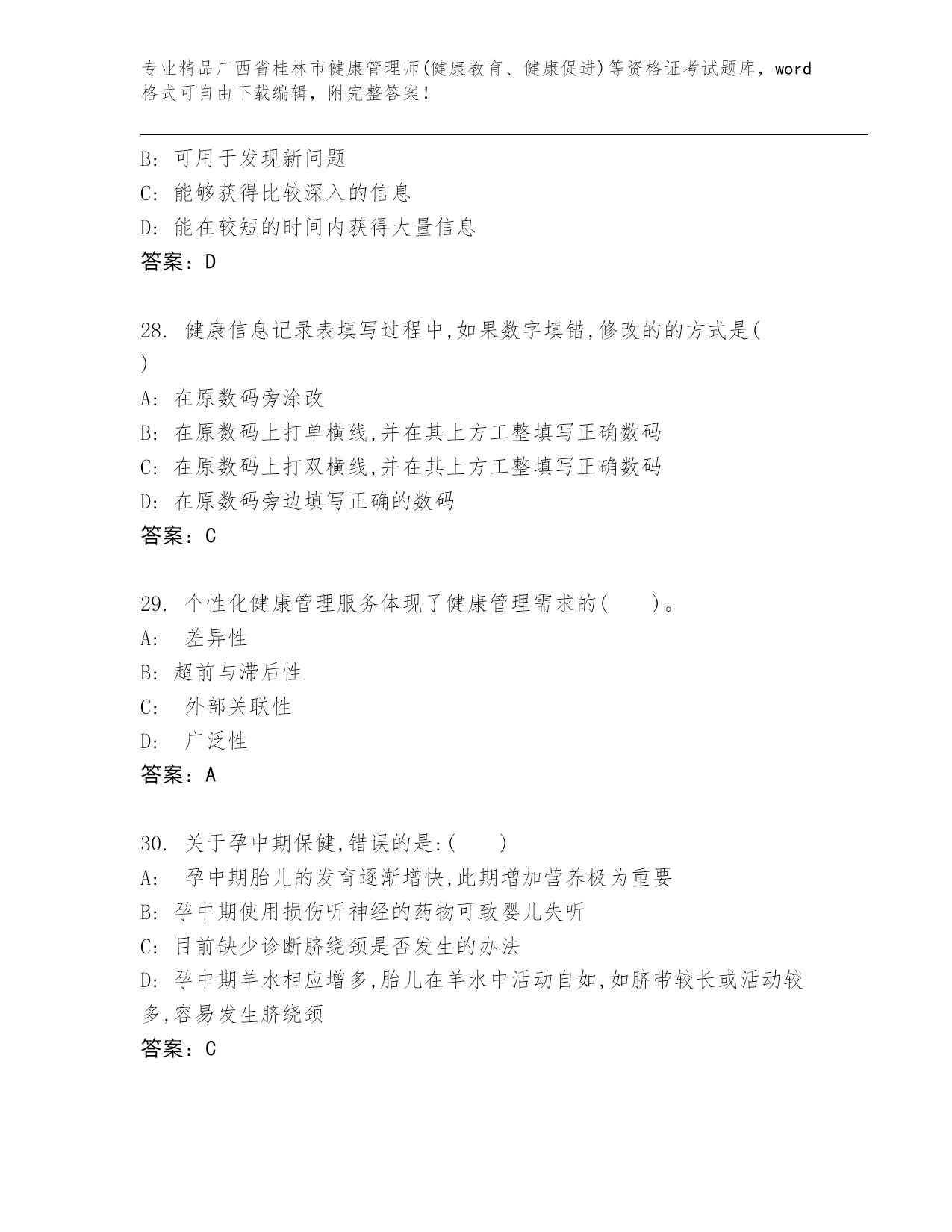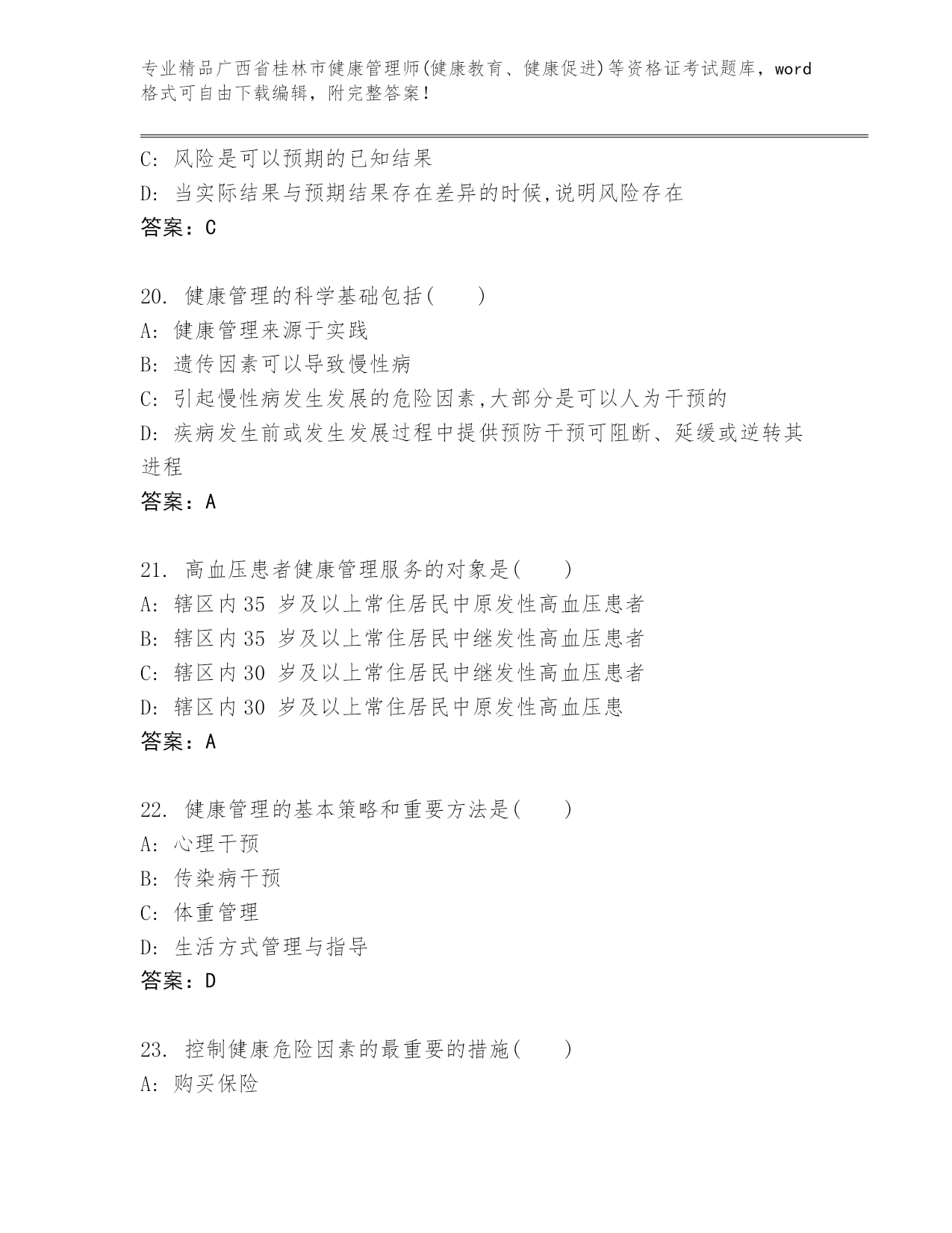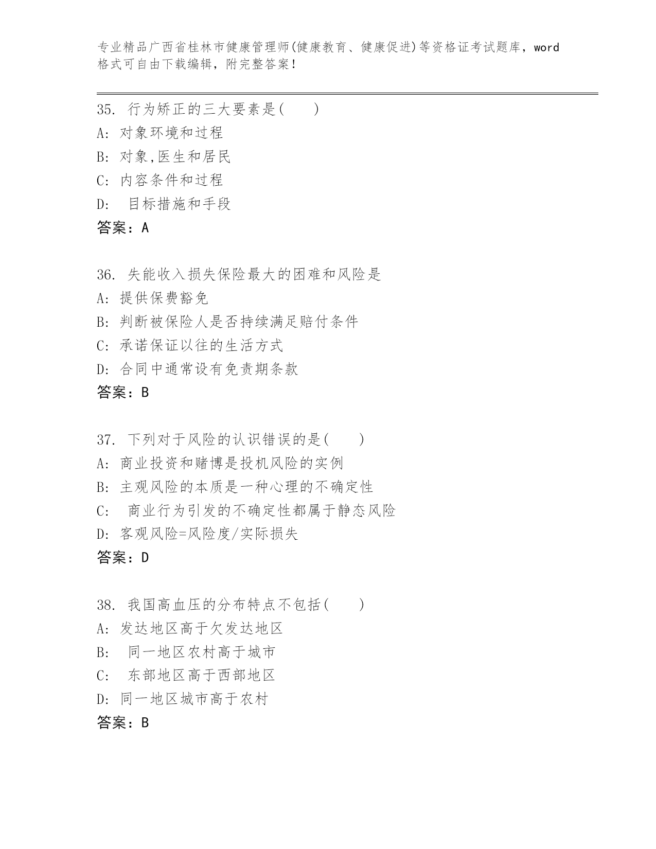 广西省桂林市健康管理师(健康教育、健康促进)等资格证考试王牌题库带解析答案.docx