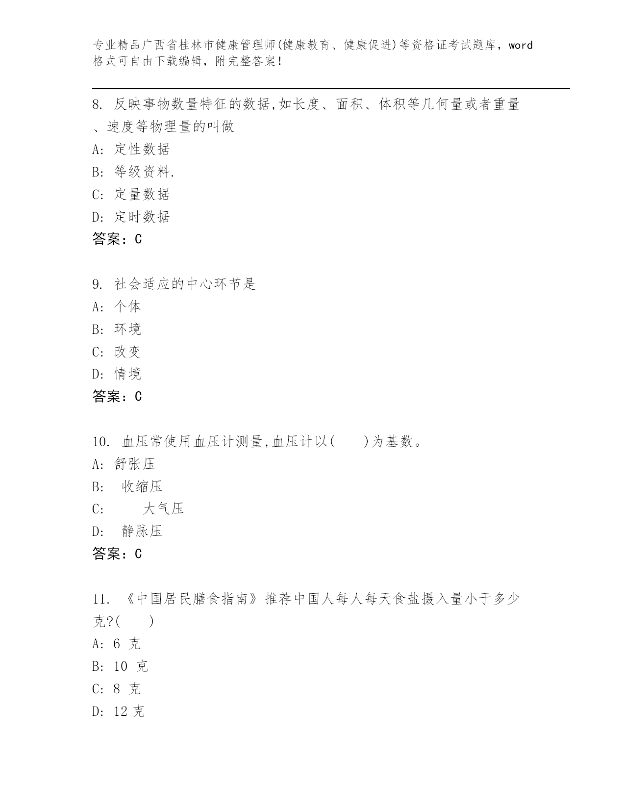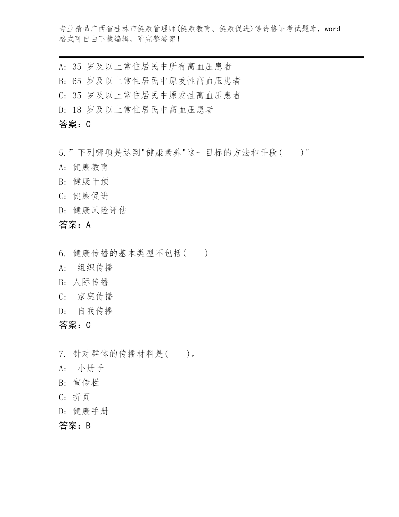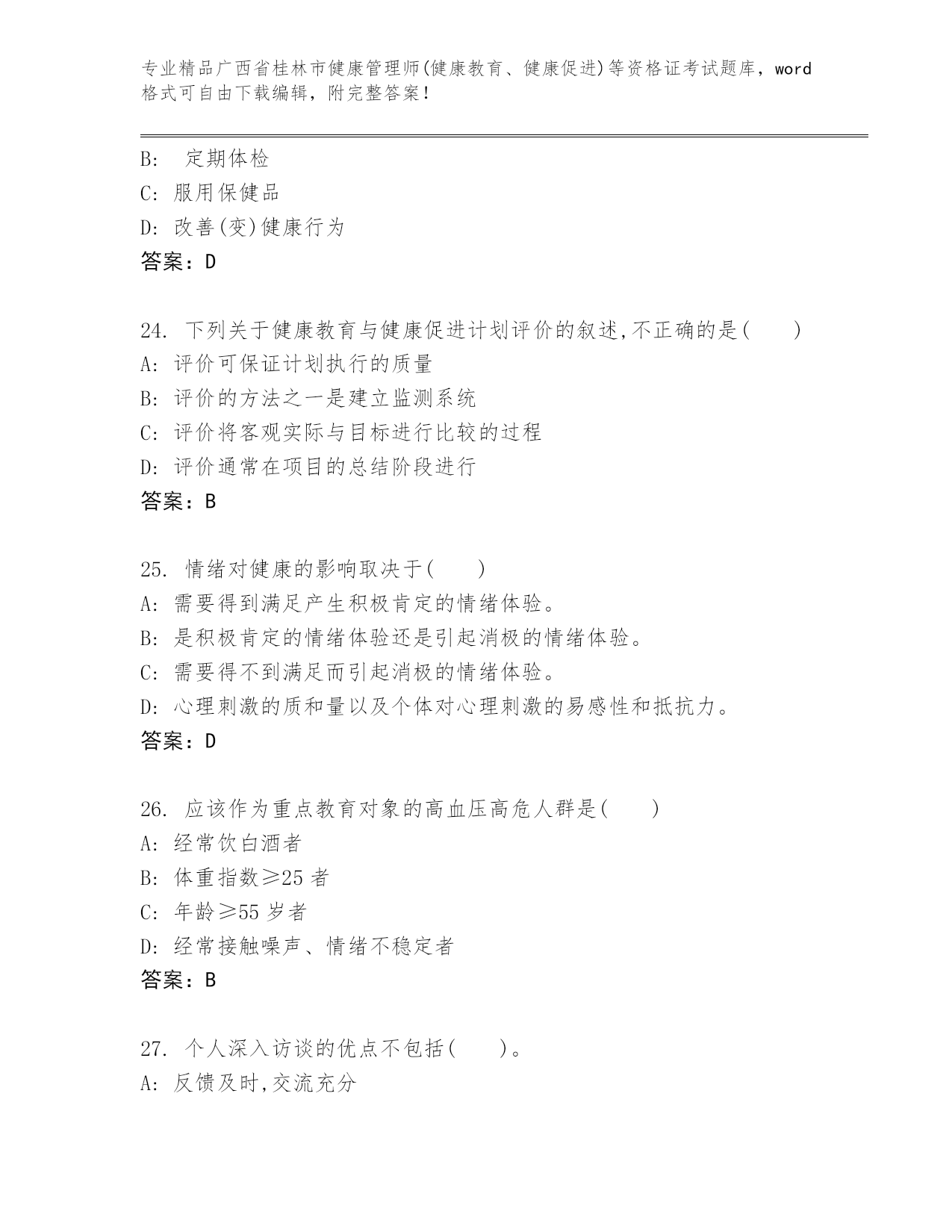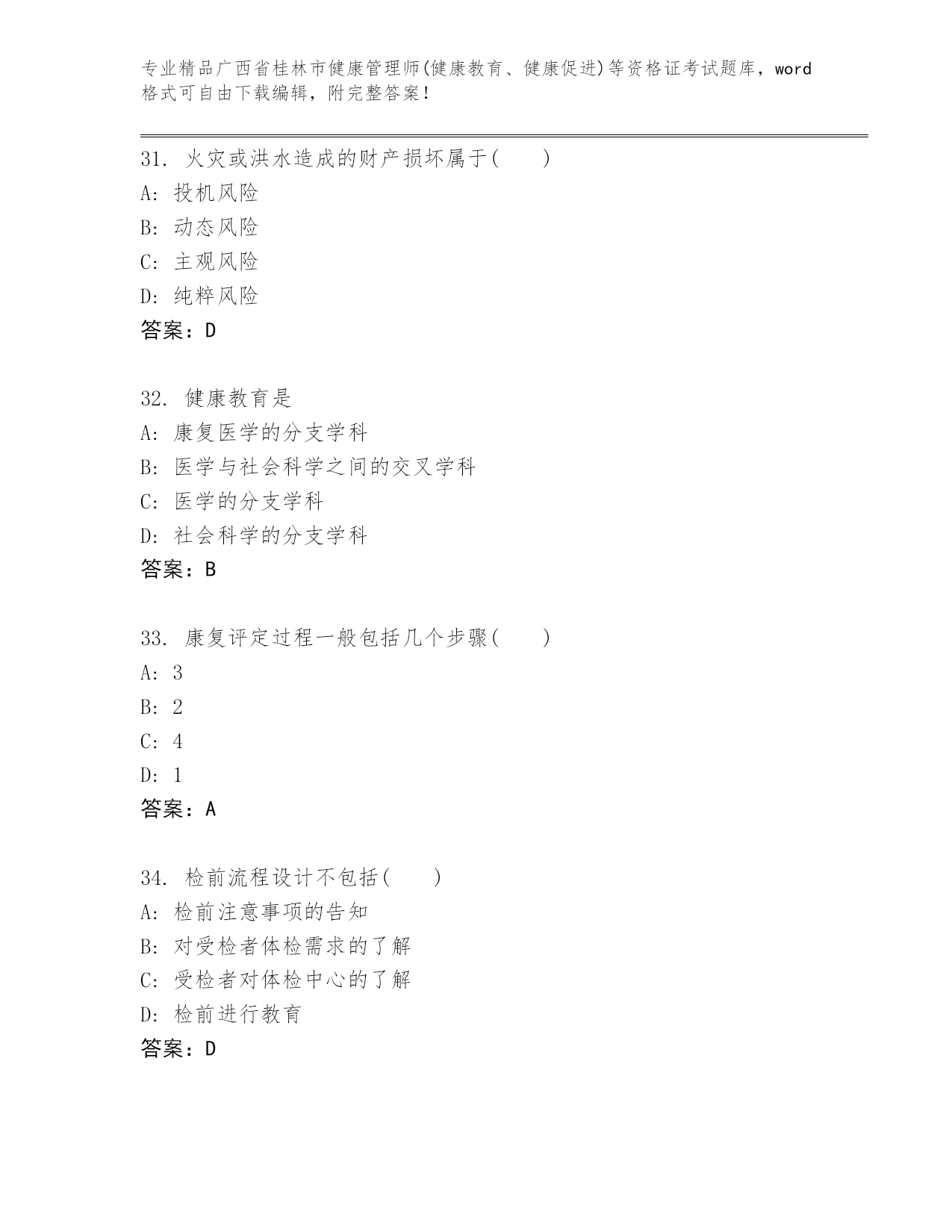 广西省桂林市健康管理师(健康教育、健康促进)等资格证考试王牌题库带解析答案.docx