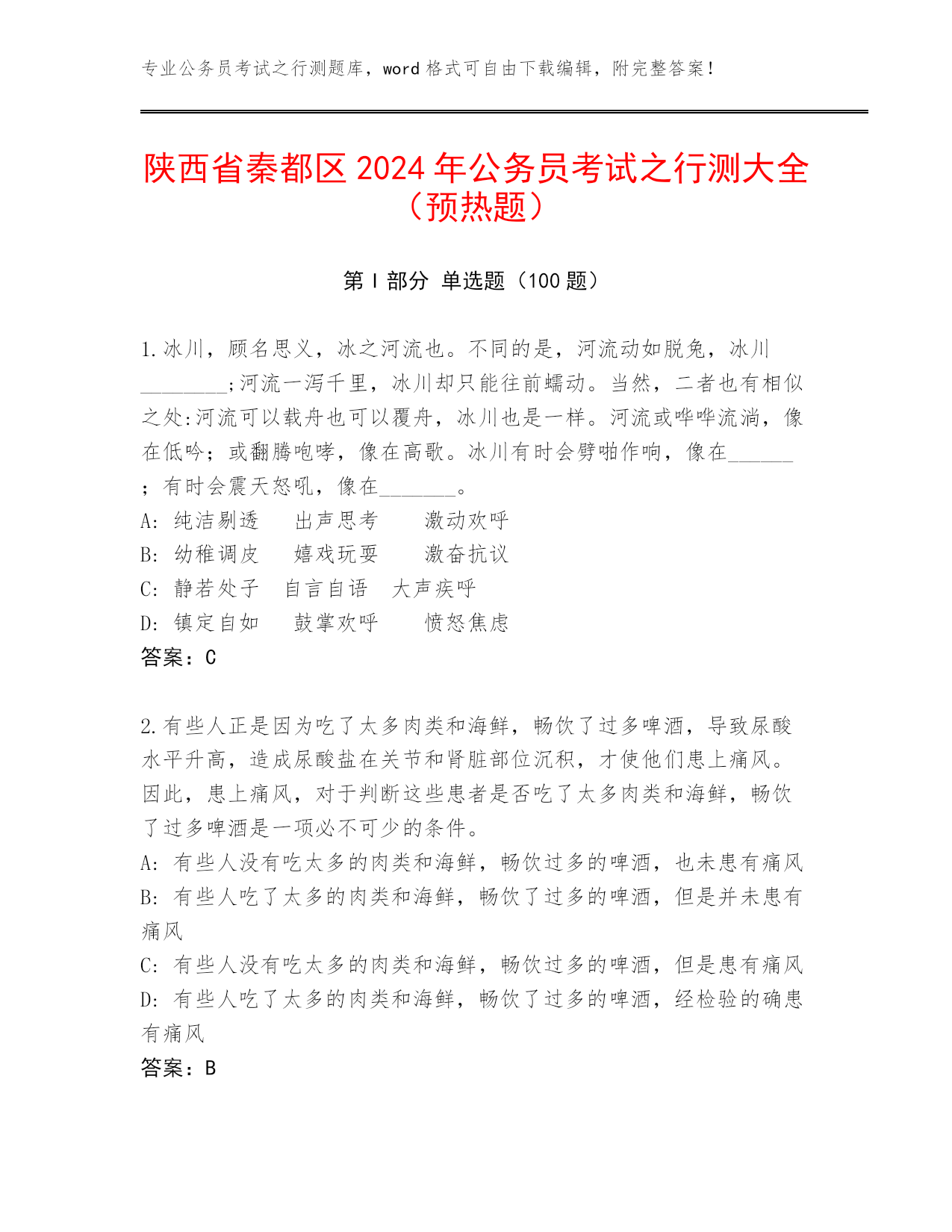 陕西省秦都区2024年公务员考试之行测大全(预热题).docx