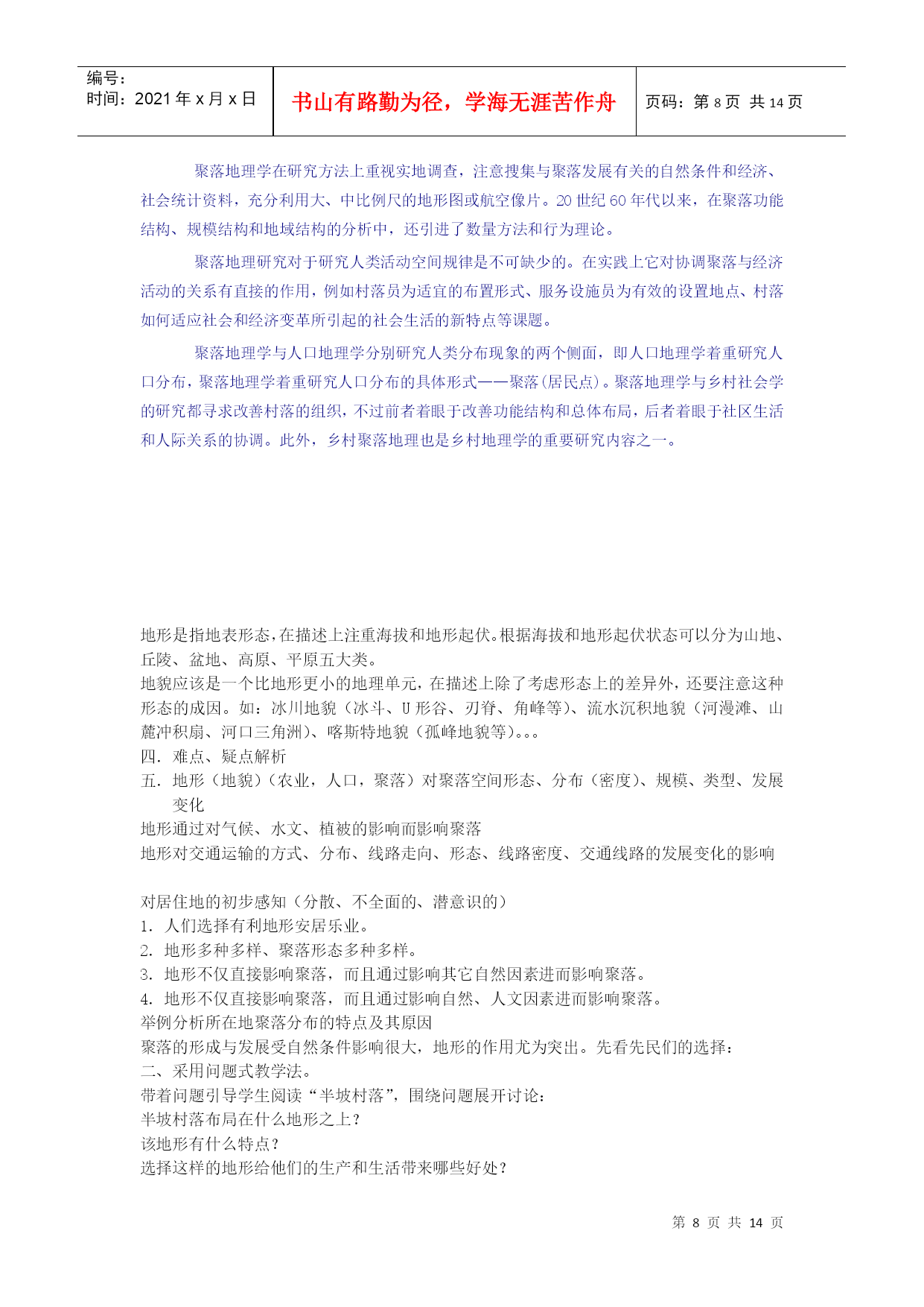 地理教案教学设计地形对聚落、交通的影响