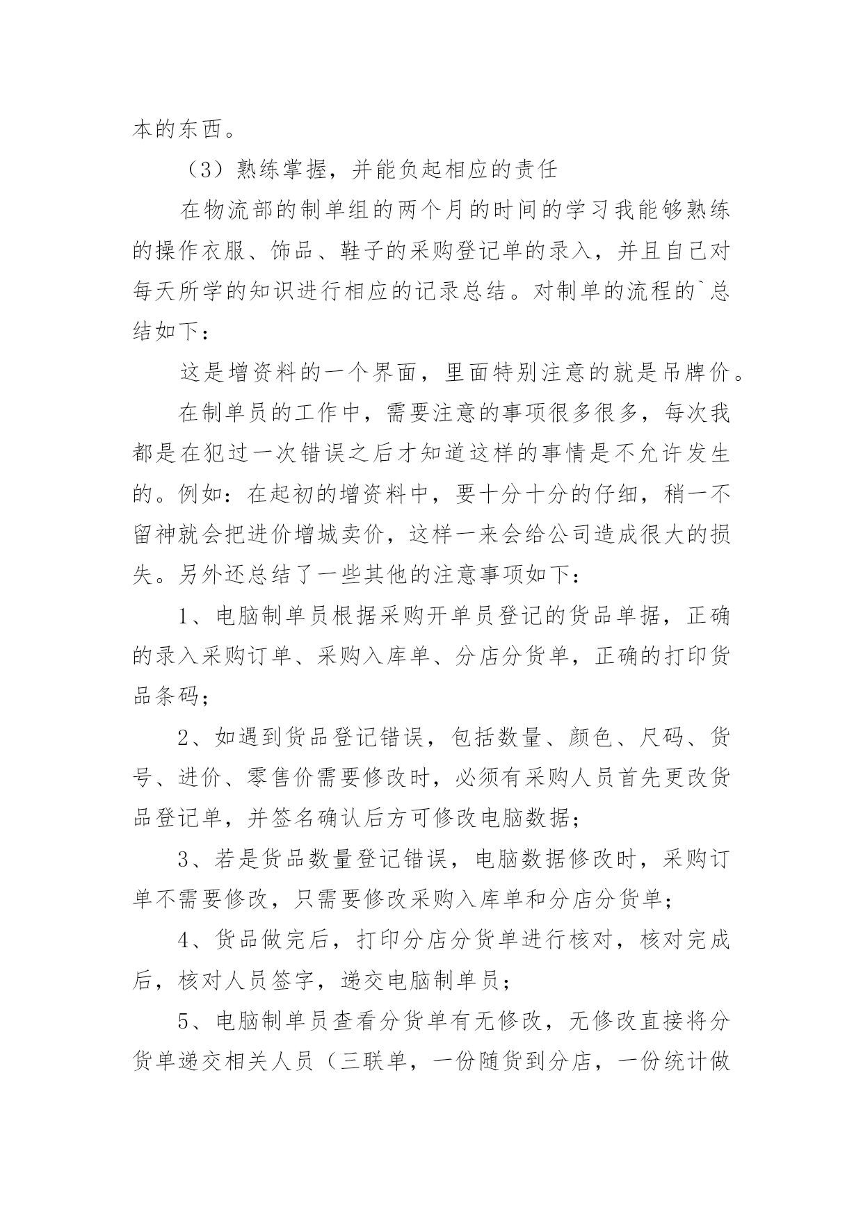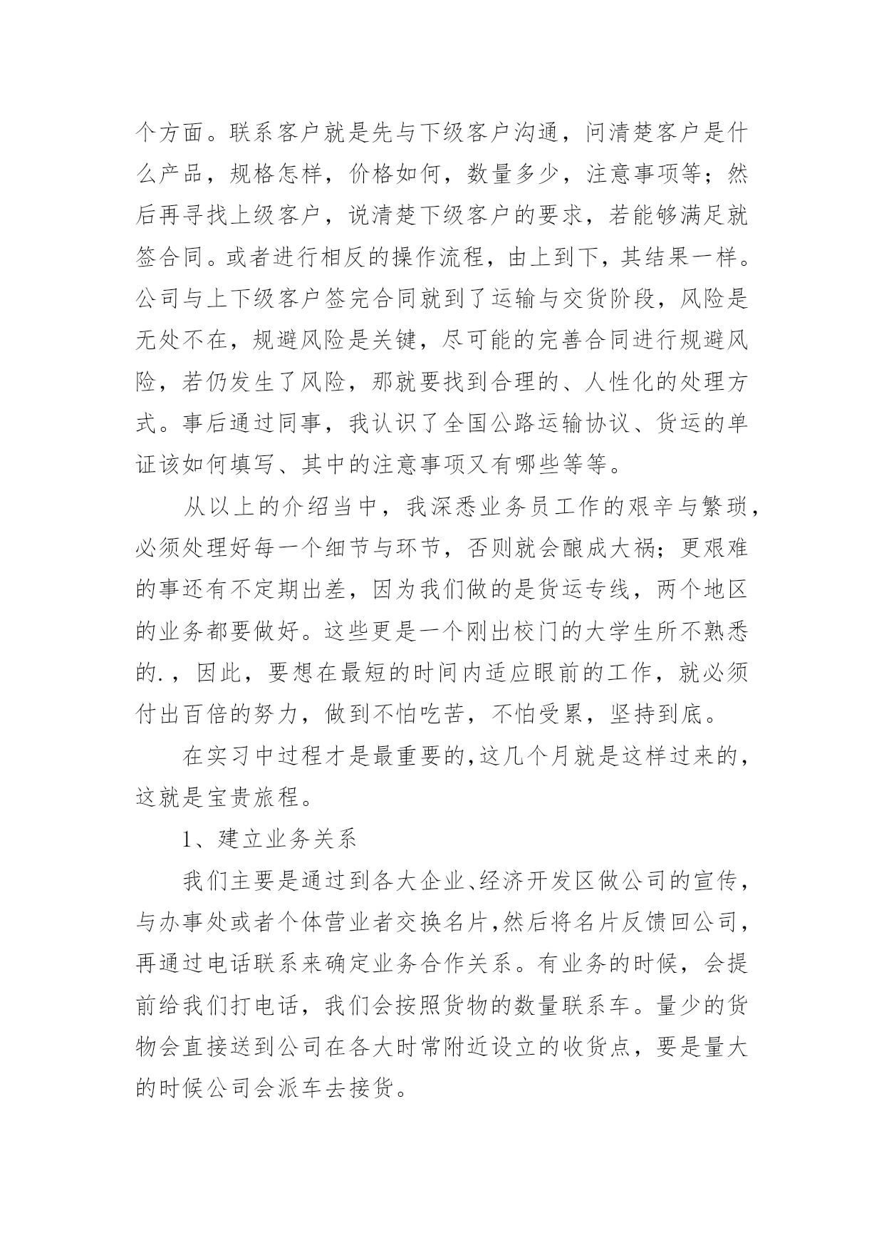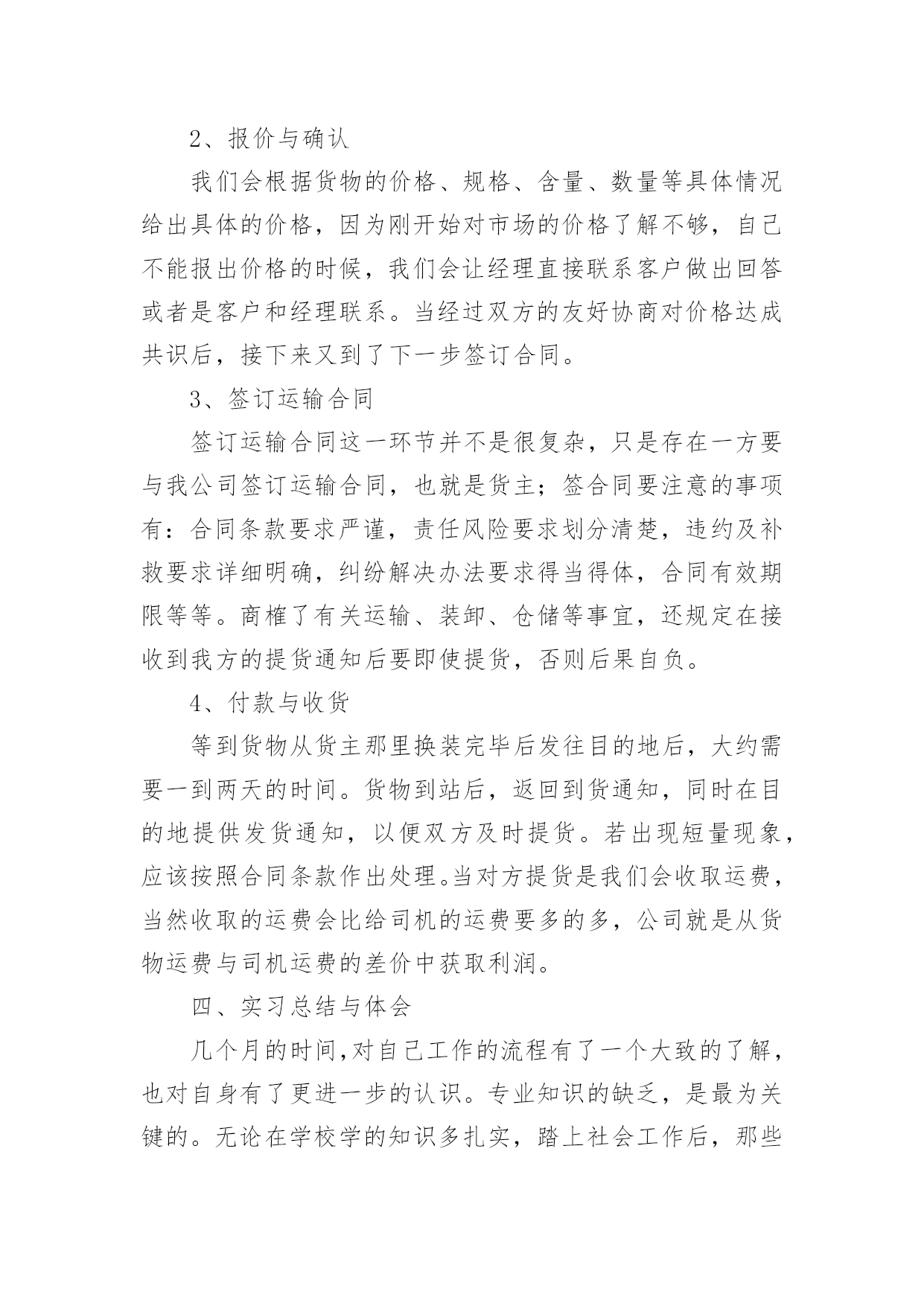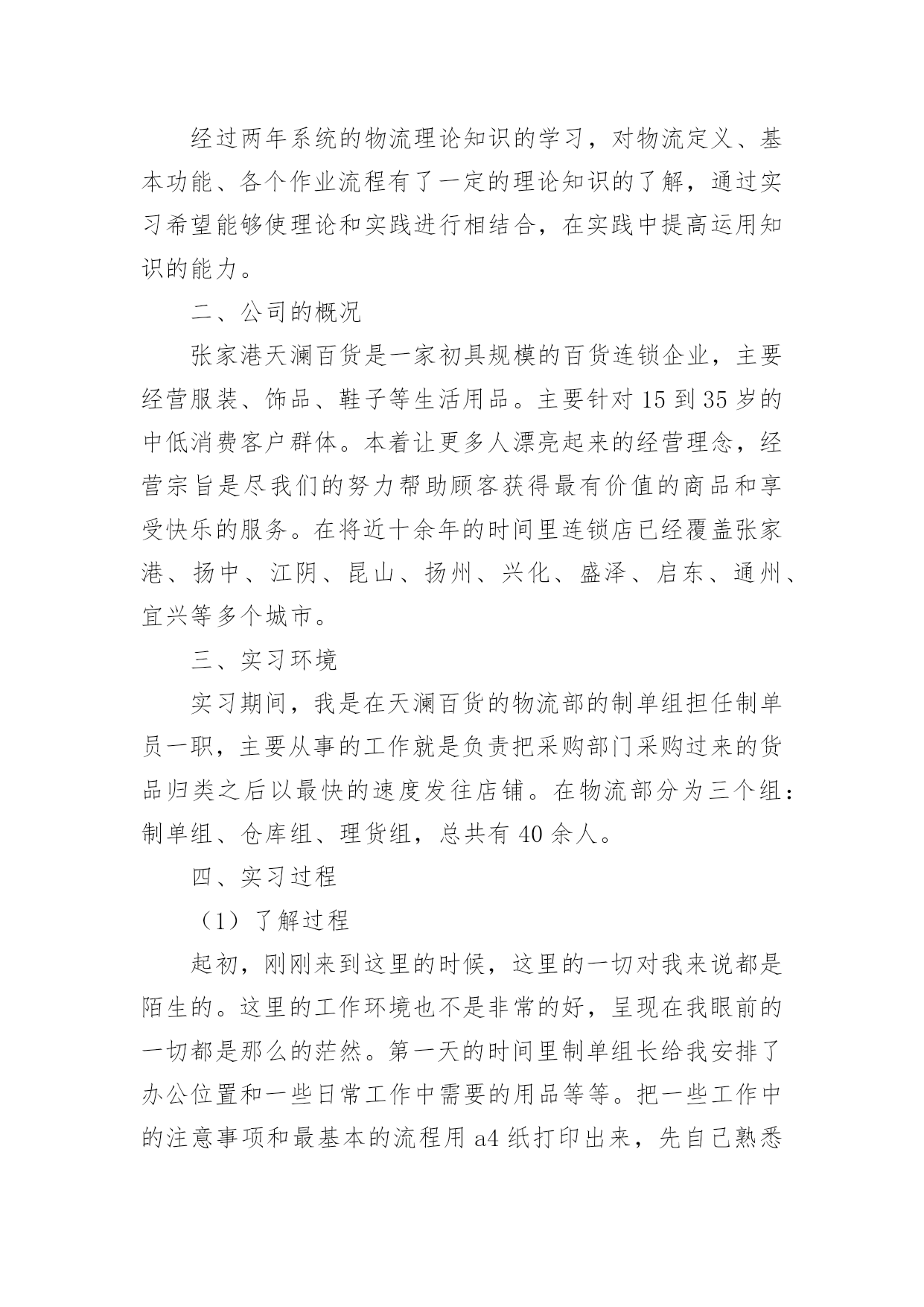 物流公司实习报告物流公司实习报告汇编15篇随着个人的文明素养不断提升,报告与我们的生活紧密相连,我们在写报告的时候要注意逻辑的合理性。一起来参考报告是怎么写的吧,下面是小编为大家整理的物流公司实习报告,供大家参考借鉴,希望可以帮助到有需要的朋友。物流公司实习报告120xx年1月19日至3月30日这一段时间,我在广州市新邦物流效劳有限公司花都花东停业部停止毕业消费实习。这是第一次正式与社会接轨踏上工作岗位,开端与以往完整不一样的生活。时间如梭,三个多月的实习锻炼时间在人生的长河中只要那么一小段,虽说实习的时间是有限的,但我的收获却很大。我永远不会遗忘与同事们一同走过的短暂而充实的日子,谢谢你们的照顾和批判、时间太短暂了,我们只能走马观花似地去接触和吸收新的事物,但我们经过时间也学到了很多书本上没有的学问,即增长了见识,开阔了视野,又增长了理论操作才能,丰厚了生活阅历,这将是我们走向社会的一笔最为珍贵的财富,从基本上处理了我的一些思想认识问题,促进了本身世界观的转变。经过在广州市新邦物流效劳有限公司花都花动停业部遭到的暖和,教育和鼓舞,使我加强了自自信心和骄傲感,坚决了本人的信心,更为本人日后就业指明了方向,对本人的社会定位和本身价值停止了一次客观评价,发现本人与理想之间的差距,处理了眼高手低的问题。从学生的身份转变到一名公司职员,短短3个多月的工作过程使我收获颇丰。不只是在专业学问方面,最主要是在为人处事方面。社会在加速度地发作变化,对人才的请求也越来越高,要用开展的目光看问题,得不时进步思想认识,完善本人。经过3个月的实习,让我学会了许多,学会了生活,学会了做人,学会了工作。懂得了也了解了“能够享用的生活是短暂的”的真实含义。在这里还要感激一切的人,赵经理,客服主管小燕,柜台主管张海桃,业务学问丰厚的小谭,生动搞笑的北方人小史,认真担任的广东人小刘,热心协助我的同事小玉,小殷,小钟,小伍,小李,小冯,三个小王。还有会计小陈,配送部小余,谢谢你们。你们让我学会了很多学不到的东西,我想在以后的日子,我一定会比如今成熟很多。在工作的.过程中,感触最深的四个字就是"接受"和"认真",刚从学校出来的"单纯学子"对许多事都有"看不惯的态度"。如今想想,其实没必要那样一时的愤慨。由于要干好本人不喜欢的事情,不就要挨骂,最终倒运还是本人。其实许多生活的原理都晓得,凡事多一份心。只是当发作在本人身上时却显得不那么苏醒。还好,从亲身的阅历得到了分明的答案。最后,终于走了本人选择的那条路,也承受一些理想。我想生活有时分就是这么无法,我不得不承受一些事实,纵使我心里不再不甘愿。到了最后,我想独一句可以抚慰本人的一句话。“假如想要抵达顶点,那就从低层做起吧”。物流公司实习报告2一、实习目的进入单位实习,是为了进一步了解物流的运作和相关设施,设备与人员技术技能,物流设施设备等的基本常识;掌握物流系统的构成和物流基本环节,掌握运输,仓储,包装,装卸搬运,配送,信息处理等基本的物流作业功能的相关知识,做到学以致用,把从学校学到的理论知识与实际工作中的实践贯穿起来,并依据学习的理论提出自己的意见。从社会实践中,逐步完善自我、发展自我,最终完全融入现实生活当中,做一名言出必行、知识与能力兼备、符合社会主义发展目标的合格大学生。二、单位介绍济南市xxxx信息服务部是由一批具有丰富物流经验的精英所组成。主要经营全国范围内的货物运输等。公司现有提送货车辆20余部、干线运输车辆100余部、箱式货车50余部、员工50余人,网点遍布山东全省,网络覆盖全国各大中城市。提供主要方向济南到东北三省全境,北京、山西、新疆、内蒙、陕西全境,宁夏、兰州、西宁、拉萨全境,四川、重庆、昆明全境,上海、广州等全国各省市全境服务。公司本着客户满意是我们最大的心愿为服务宗旨,以诚信、安全、快捷、准确为服务承诺,珍惜与客户的每一次合作,用脚踏实地的作风,以"一流的团队,一流的服务,一流的质量"为客户提供最完善的物流服务,在山东物流市场中获得众多客户的好评。公司秉承顾客至上,锐意进取的经营理念,坚持客户第一的原则为广大客户提供优质的服务。坚定不移的贯彻"客户的需要是腾顺不懈的追求"这一经营方针,遵循安全、快捷、经济、优质的服务理念,可为客户提供代收货款、仓储包装、同城速递、整车零担运输、城市配送、物流规划咨询、物流方案设计等一系列高档次全方位立体化的物流服务。为每一位客户提供一流的物流服务,领先时代潮流,开创现代物流,迎广大客户惠顾!济南市xxxxxx信息服务部全心致力于物流事业,立足山东做透全国。三、实习内容与过程第一天,早早的起来,去了单位,本身很期待着成为其中的一员。当走进单位的一刹那,就遇见了当时的经理,他带着我们两个人认识了一下公司的人员,他们很热情地介绍了自己的职务和姓名。简单聊了几