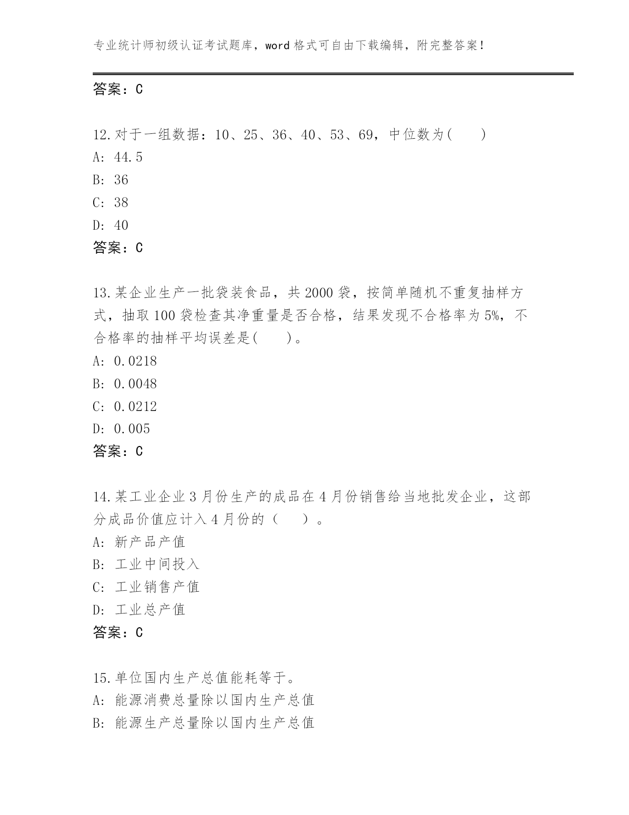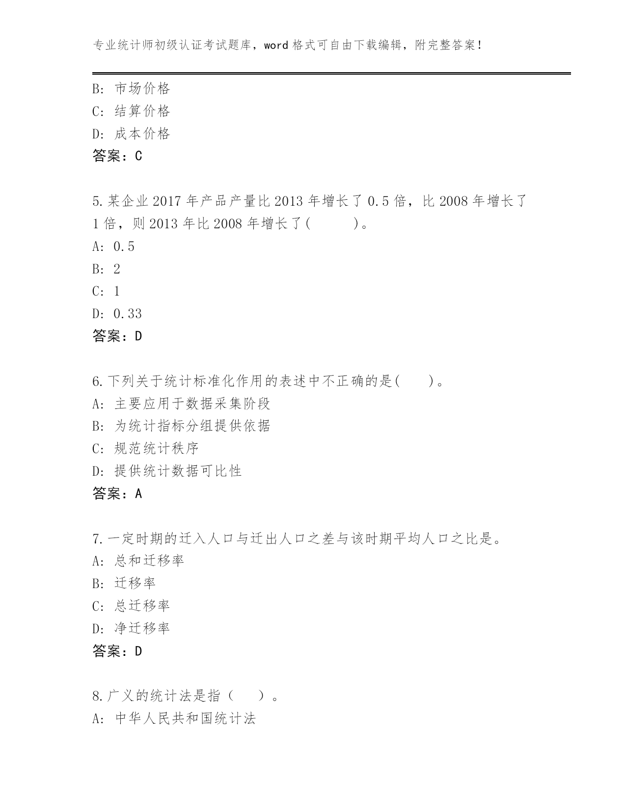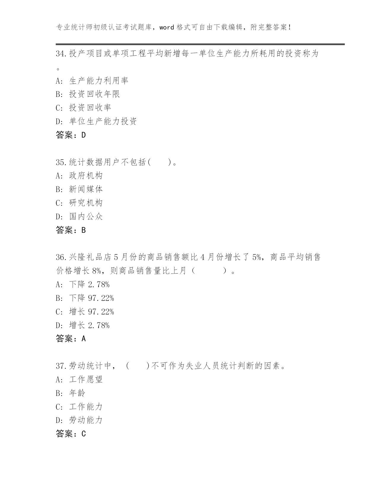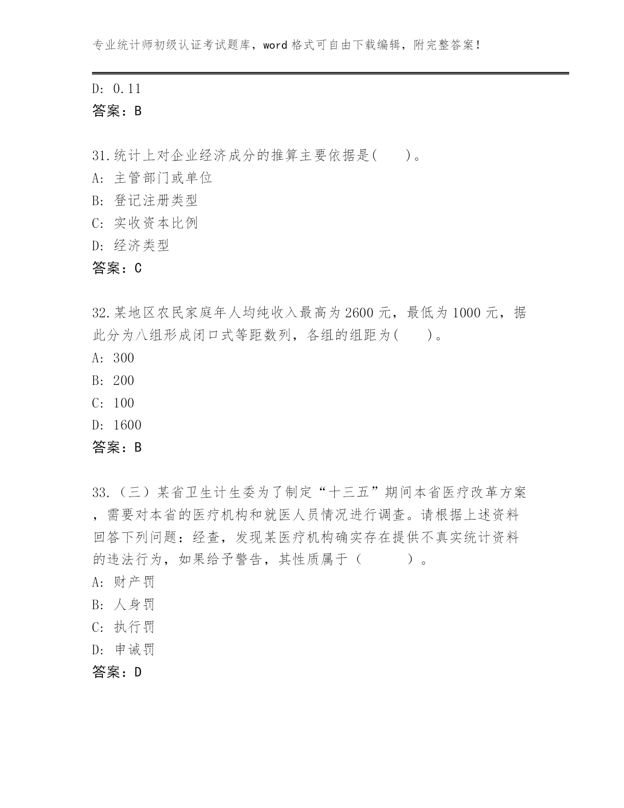 完整版湖北省丹江口市统计师初级认证考试通关秘籍题库(预热题).docx