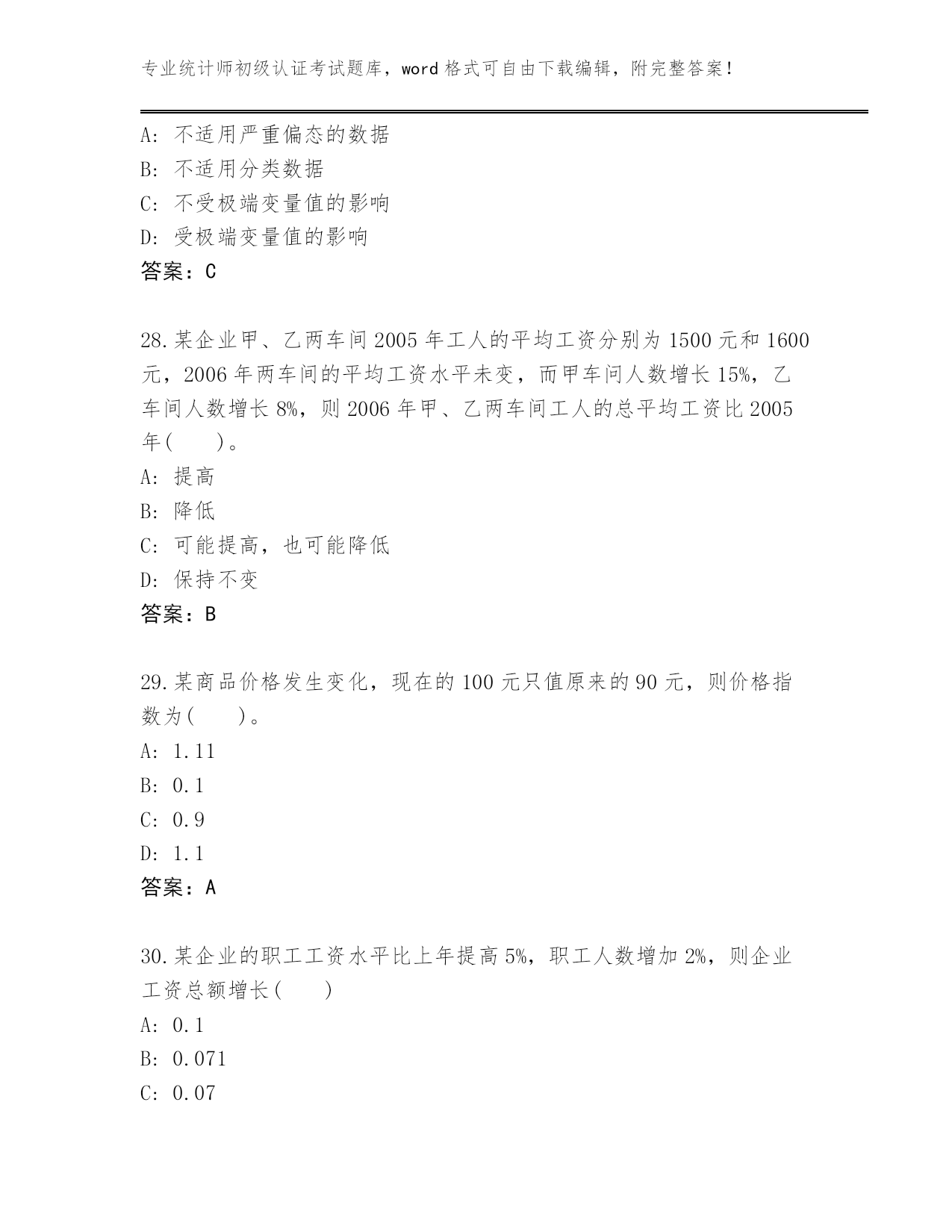 完整版湖北省丹江口市统计师初级认证考试通关秘籍题库(预热题)