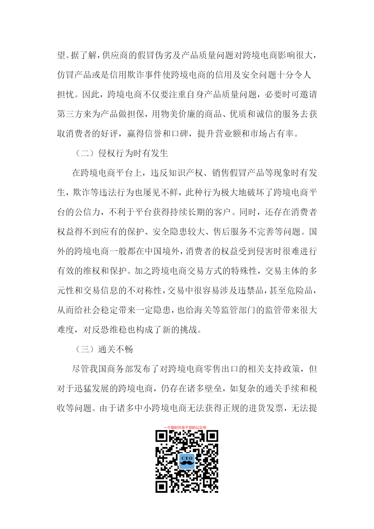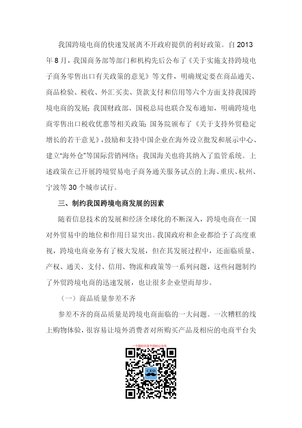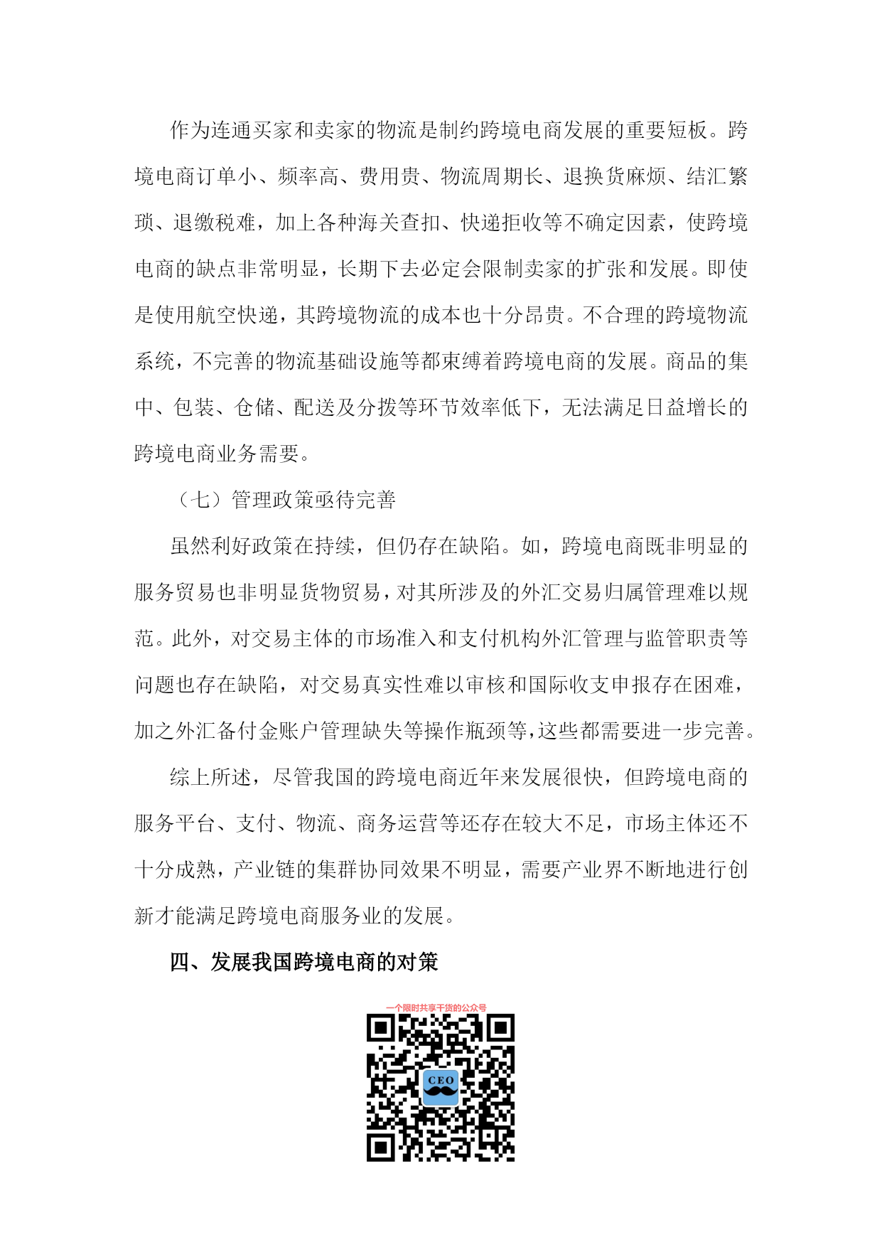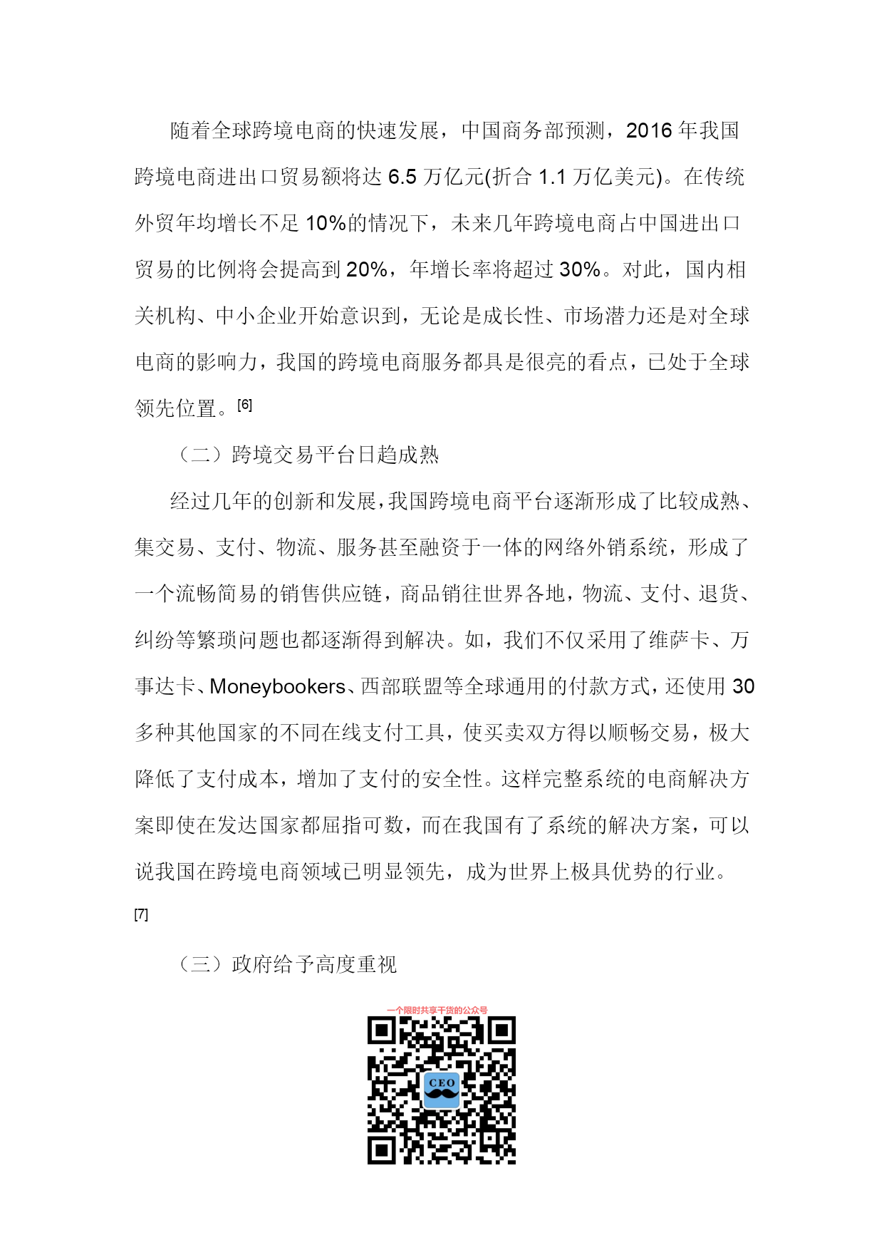 PAGE将跨境电商建成“中国制造”出口的新通道徐松,张艳艳(安徽财经大学国际经济贸易学院,安徽蚌埠233030)摘要:随着电子信息技术的不断发展和经济全球化的深入,跨境电商已成为中国企业拓展海外市场、提升品牌国际形象和增强核心竞争力的重要渠道。跨境电商改变了外贸企业的传统经营方式,影响了中国对外贸易产业链布局,在我国已初步形成了新的业态模式。无论其成长性、市场潜力和影响力,中国跨境电商服务已处于全球领先位置。但我国跨境电商发展还存在质量、产权、通关、支付、信用、物流和政策等瓶颈,应采取措施促进跨境电商发展,为我国外贸企业占领着未来竞争制高点、最终取得成功提供支持。关键词:跨境电商;跨境物流;中国制造;跨境通关;大数据中图分类号:文献标识码:A文章编号:1007-7685(2015)02-0000-00跨境电商(Cross-borderelectroniccommerce)指分属不同关境的交易双方,通过跨境电子商务平台达成交易、进行支付和结算,并通过跨境物流将交易的商品送达买方、完成跨境交易的一种国际贸易活动,是把传统国际贸易加以网络化、电子化的新型国际贸易方式。参考文献:[1]孟祥铭,汤倩慧.中国跨境贸易电子商务发展现状与对策分析[J].沈阳工业大学学报,2014(2):120-121.随着国内外经济环境的变化,特别是2008年国际金融危机后,国际市场需求萎靡,以小额跨境交易为代表的跨境电子商务及物流服务有了新的发展。阿里巴巴集团在美国成功上市后,2014年11月11日推出双11购物狂欢活动,重点在跨境电子商务上做文章,将中国消费品与世界市场相连接。据统计,天猫购物狂欢节总成交额超571亿元,其中无线成交占总成交额42.6%,参与狂欢的国家和地区共计217个,全天累计产生2.78亿个物流订单。[2]荆林波,梁春晓:中国电子商务服务业发展报告No.2[M].社会科学文献出版社,2013.20-25.跨境电商作为拓展海外营销渠道、提升品牌国际形象和增强核心竞争力的有效途径,得到了世界各国和企业的关注,并在全球范围异军突起,改变了外贸企业的传统经营方式,也深刻影响了我国对外贸易产业链布局。当前,我国跨境电商的发展初步形成了新业态模式,这既为我国贸易方式转型提供了新抓手,为“中国制造”出口提供了新的通道,也对传统贸易下的政府管理体制提出了新需求和新挑战。[3]鄂立彬.国际贸易新方式:跨境电子商务的最新研究[J].东北财经大学学报,2014(2).一、跨境电商的优势(一)降低销售成本,扩大贸易额相较于传统对外贸易,跨境电商的优势非常明显,通过跨境电商,一件商品从我国工厂生产出来后,依靠互联网和国际物流,直接销售给海外的零售商或终端消费者,大大减少了中间环节,降低了成本和门槛,提高了回款速度和效率,加快了对外贸易节奏。跨境电商是未来电商经济的发展重点,通过对全社会信息流、资金流、物流及劳动就业的巨大影响,实现人力、技术、生产与资本等社会资源的有效整合和优化配置,充分挖掘国际市场需求,带动企业出口的同时帮助企业获取更多的价值增值。众多生产厂家通过跨境电商将产品销往世界各地,不仅可实现销量的提升,很多品牌还可逐渐获得海外消费者认可。(二)提升产品附加值跨境电商可把我国最优质的商品通过互联网平台直销全球,促进了我国自主品牌的发展,提升了我国产品的附加值。我国因制造能力在全球具有较强的竞争优势而享有“世界工厂”美誉,但在发达国家产业升级和产业转移过程中,我国大量企业变为替国际品牌企业代工生产的代工(OEM)制造商,即使拥有成熟的加工制造能力,但在国际知名品牌光环的遮掩下,无法拥有自己的品牌,也很少为消费者所知。而跨境电商使这些代工企业有机会走上前台,直接面对消费者,并做大做强自有品牌,为“中国制造”掘金全球注入新动力。所以,跨境电商不仅可发挥中小企业的优势,还可帮助它们重塑国际产业链,促进其外贸出口方式转变,增强其国际竞争力。在外贸“新常态”下,跨境电商将助推“中国制造”扬帆海外,促进“中国制造”向“中国创造”、“中国想象”和“中国营销”转变。[4]程景伟.跨境电商成外贸新宠再造“中国制造”优势[N].中国新闻网,2014-10-27.(三)充分发挥外贸的带动作用对消费者来说,跨境电商不仅使他们能较容易地获取其他国家相关信息而且也能买到物美价廉的商品;对企业来说,跨境电商构建的开放、多维、立体的多边经贸合作模式,不仅拓宽了进入国际市场的路径,而且促进了多边资源的优化配置和企业间的互利共赢;对国家来说,世界各地对“中国制造”产品的刚性需求,使电子商务在国际贸易中的地位和作用日益凸显,这对扩大中国对外贸易、改善对外贸易结构、促进各相关部门的发展、发挥对外贸易的带动效应将发挥巨大的促进作用。二、我