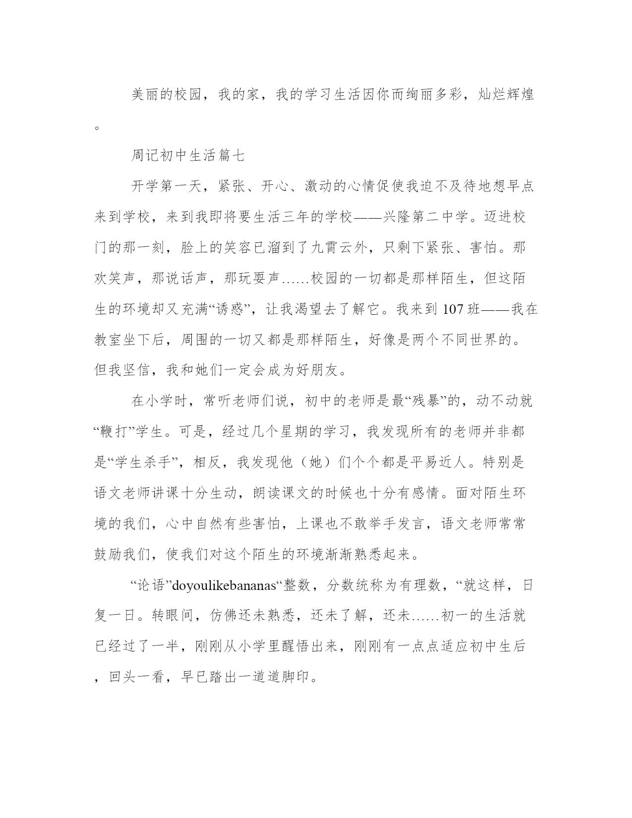 最新周记初中生活初中生活周记(精选19篇)
