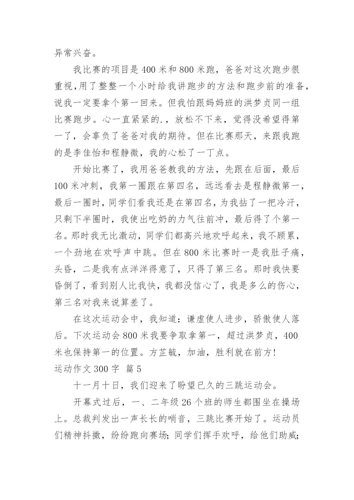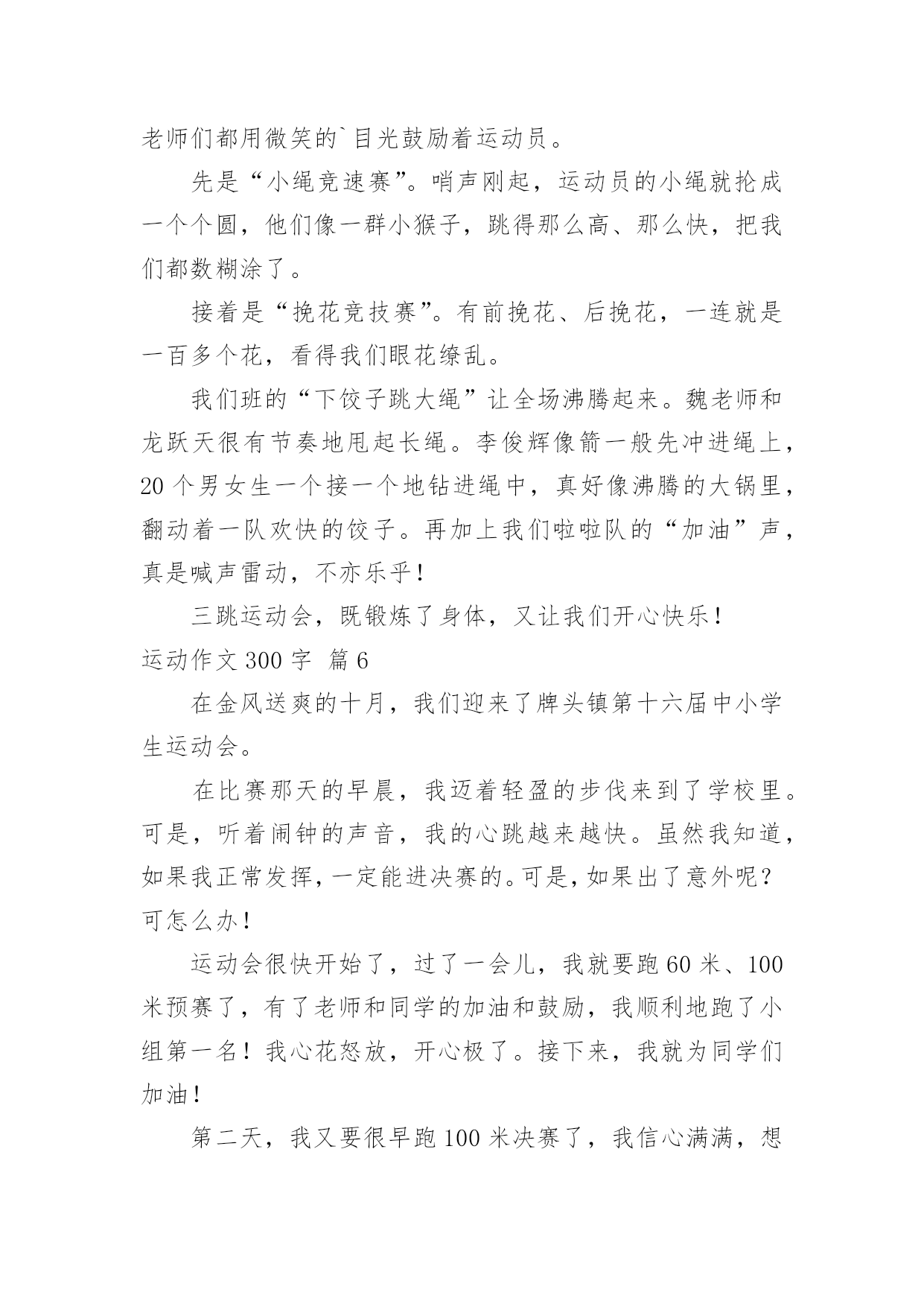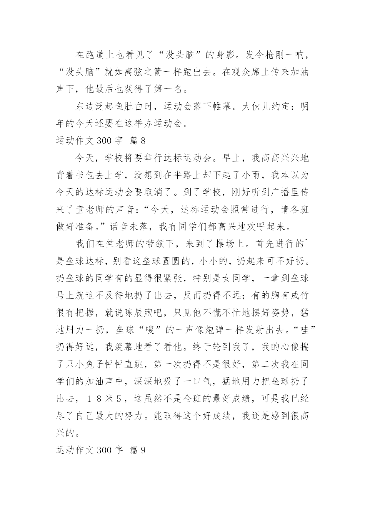运动作文300字运动作文300字(热)在平凡的学习、工作、生活中,大家都跟作文打过交道吧,根据写作命题的特点,作文可以分为命题作文和非命题作文。你知道作文怎样写才规范吗?以下是小编整理的运动作文300字10篇,欢迎阅读与收藏。运动作文300字篇1篮球是我每日“必修课”。若哪一天我没打球,心里便好似掉了块肉。中午,一阵激烈的球赛后,那感觉真酣畅淋漓啊!回到家,作业完成后,投篮“训练”又开始了。有人会说:家里投篮,你家有篮框?不怕吵到邻居?哈,在我的设计下,创造了一种新式“家庭投篮”——排球代替篮球(排球比篮球轻多了),想象着墙上有个篮球框,往墙壁高处投再迅速接住,这样做既不打扰到邻居,又不怕砸坏了家里的'什么。哈!两全其美的方法。没球在手,我依然可投。在闲着无聊的时候,我就模仿乔丹、科比的步伐“走”起来,胯下运球、转身、投篮!有人说我耍酷,哼!才不是呢,其实我只是在意念中熟练篮球步伐。教室里,粉笔头也成了我投篮的“球”。用完粉笔后,我不着急还回去,而是眯着眼,下蹲,投,“通!”一声清脆悦耳,“球”进了粉笔盒。我爱篮球,不管有球没球,只要有个目标,我都能“投”!运动作文300字篇2一天,我和外婆一起出门晨跑。跑着跑着我慢慢地想起了一次学校里的运动会,在这次运动会上我们班得到了全年级第一名。为什么我们能得第一呢?就是因为我们使用了全身的力气来应付这场“战斗”。这才让我们知道,团结就是力量。老师在操场上摆好终点与起点的位置,并且还把赛道画好了。老师他们拿起刷子,沾上那白白的油漆,弯下腰一笔一笔地画在操场上,许许多多的'老师不一会一条一条笔直的雪白色线条画好了。老师分好谁去比什么了以后,我们便去到了“战场”上,和别班“战斗”。我们班同学是很拼的。一位同学一脚踩空滑倒在地上,但他一咕噜跑起来继续三步并两步地跑着。还有一位同学看着别班比我们快了一些,他便使用最快的速度跑了起来,就像一颗陨石一样飞了过去。终于到我比赛了。我是比接力跑的,我拿着接力棒,眉头紧皱,心想如果我跑慢了,那我们班便会输掉。我便使用最快的速度飞奔过去,果然赢了。我们还有全班一起跳绳,看哪个班跳得多。我们每个人拿着绳用力地甩呀甩,脚也不停地跳啊跳。我跳了一百六十三个,这个数我可记得很清楚。一个人的力量什么也不是,很多人的力量是很强的,团结就是力量。运动作文300字篇3一年一度的运动会如期举行了,但这次运动会与往年不同,因为增加了一个入场式。运动会开始了,我们在领操员赵一鸣的带领下,迈着矫健的步伐整整齐齐地走进了操场,在走近主席台时,我们将手中的乒乓球拍高高地举起喊道:“锻炼身体,增强体魄,三(3)三(3)确保前三!”特别是在最后,我们一边喊“耶!”一边还做了个胜利的手势,让台上的评委摸哈大笑。从他们的笑声中,我仿佛看到了这次入场式我们班的得分一定很高。然而,最精彩的部分还是运动员们的精彩表演了,其中最令我兴奋的是男子跑步比赛中云雨的表现。比赛一开始,只见裁判将旗子一挥,云雨便像离弦的箭一样飞跑了出去。台下的同学也不干落后,齐声喊道:“云雨加油!云雨加油!我估计全年级拉拉队口号喊得最整齐的应该是我们班。“糟糕!云雨要被追上了!”我立刻被这句话吓了一跳。连忙一看,一名别的班的`运动员在云雨身后紧追不舍。云雨一阵狂奔就将对手甩得远远的了。看到这,我才舒了一口气。最后,云雨使出浑身的力气一步跨过了终点。“耶!云雨得第一啦!”这次运动会真精彩呀!运动会都过去几天了,可那精彩的一幕幕还刻在我的脑海里,至今还没忘记。运动作文300字篇4星期四,是举行一年一度运动会的日子,全校师生显得异常兴奋。我比赛的项目是400米和800米跑,爸爸对这次跑步很重视,用了整整一个小时给我讲跑步的方法和跑步前的准备,说我一定要拿个第一回来。但我怕跟妈妈班的洪梦贞同一组比赛跑步。心一直紧紧的.,放松不下来,觉得没希望得第一了,会辜负了爸爸对我的期待。但在比赛那天,来跟我跑的是李佳怡和程静微,我的心松了一丁点。开始比赛了,我用爸爸教我的方法,先跟在后面,最后100米冲刺,我第一圈跟在第四名,远远看去是程静微第一,最后一圈时,同学们看我还是在第四名,为我拈了一把冷汗,只剩下半圈时,我使出吃奶的力气往前冲,最后得了个第一名。那时我无比激动,同学们都高兴地欢呼起来,我不顾累,一个劲地在欢呼声中跳。但在800米比赛时一是我肚子痛,头昏,二是我有点洋洋得意了,只得了第三名。那时我快要昏倒了,看到别人比我快,我都没信心了,我是多么的伤心,第三名对我来说算差了。在这次运动会中,我知道:谦虚使人进步,骄傲使人落后。下次运动会800米我要争取拿第一,超过洪梦贞,400米也保持第一的位置。方芷毓,加油,胜利就在前方!运动作文300字篇5十一月十日,我们迎来了盼望已久的三跳运动会。开幕式过后,一、二年级26个班的师生都围坐在操场