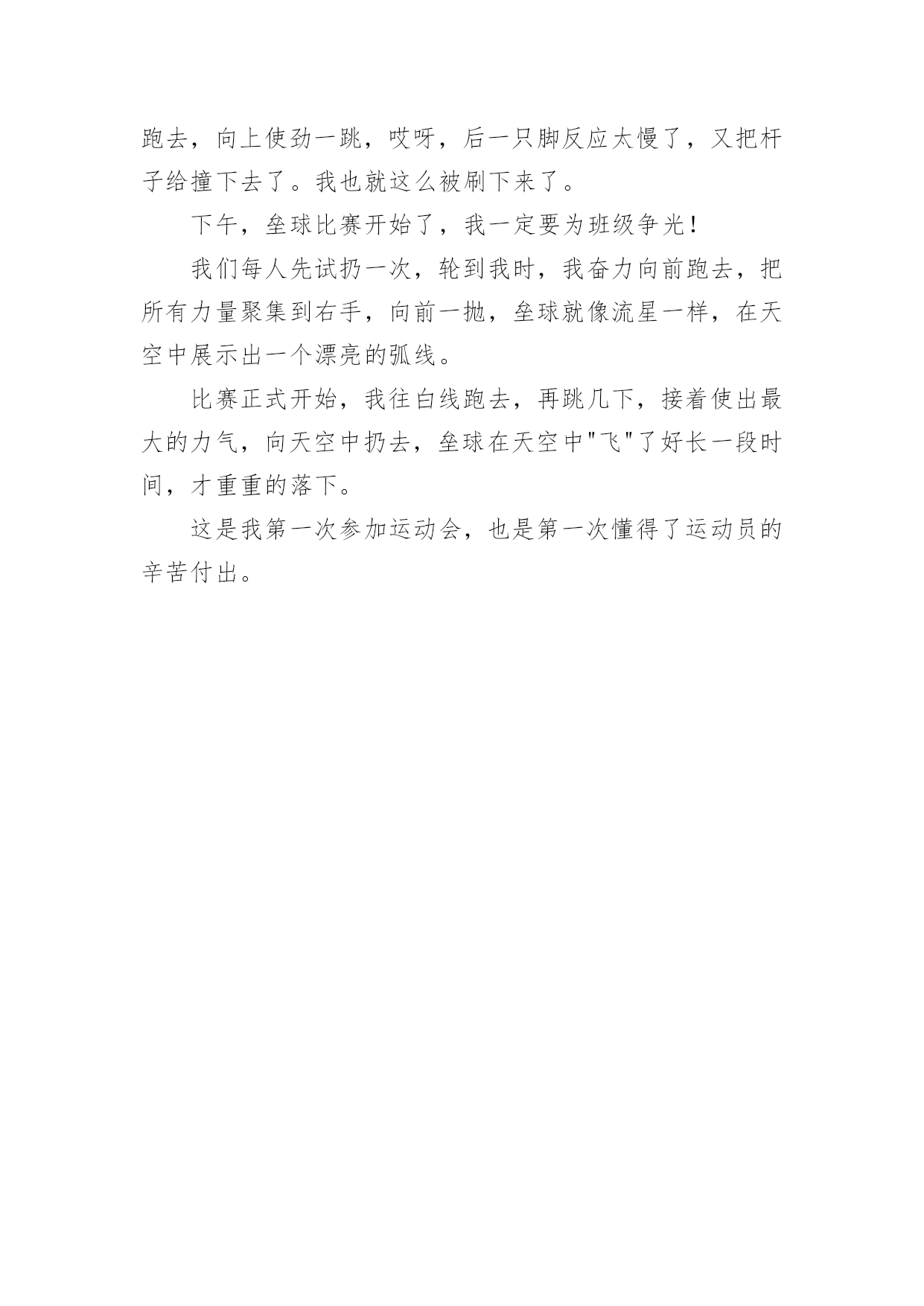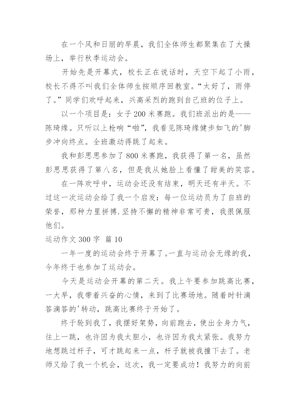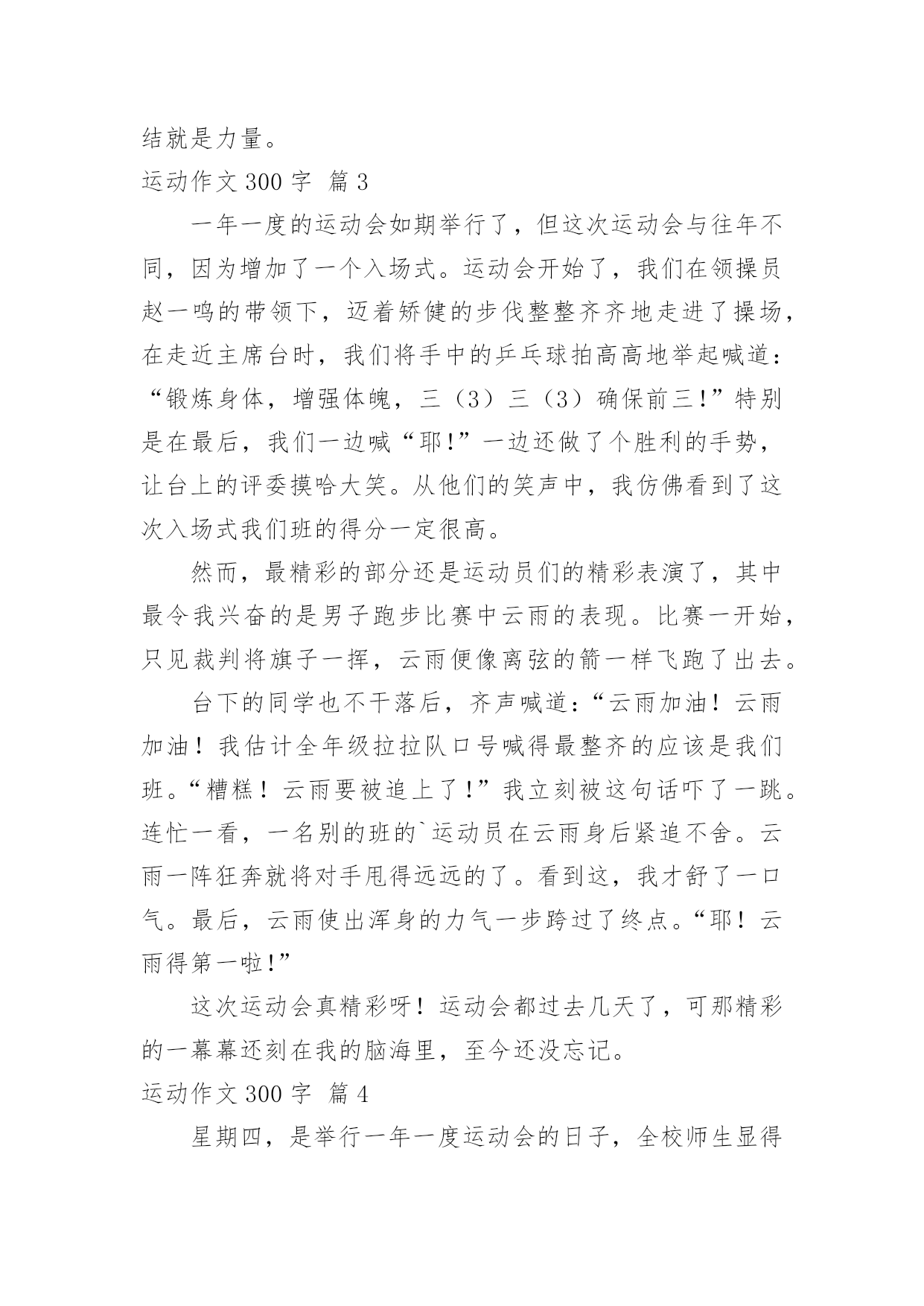 运动作文300字运动作文300字(热)在平凡的学习、工作、生活中,大家都跟作文打过交道吧,根据写作命题的特点,作文可以分为命题作文和非命题作文。你知道作文怎样写才规范吗?以下是小编整理的运动作文300字10篇,欢迎阅读与收藏。运动作文300字篇1篮球是我每日“必修课”。若哪一天我没打球,心里便好似掉了块肉。中午,一阵激烈的球赛后,那感觉真酣畅淋漓啊!回到家,作业完成后,投篮“训练”又开始了。有人会说:家里投篮,你家有篮框?不怕吵到邻居?哈,在我的设计下,创造了一种新式“家庭投篮”——排球代替篮球(排球比篮球轻多了),想象着墙上有个篮球框,往墙壁高处投再迅速接住,这样做既不打扰到邻居,又不怕砸坏了家里的'什么。哈!两全其美的方法。没球在手,我依然可投。在闲着无聊的时候,我就模仿乔丹、科比的步伐“走”起来,胯下运球、转身、投篮!有人说我耍酷,哼!才不是呢,其实我只是在意念中熟练篮球步伐。教室里,粉笔头也成了我投篮的“球”。用完粉笔后,我不着急还回去,而是眯着眼,下蹲,投,“通!”一声清脆悦耳,“球”进了粉笔盒。我爱篮球,不管有球没球,只要有个目标,我都能“投”!运动作文300字篇2一天,我和外婆一起出门晨跑。跑着跑着我慢慢地想起了一次学校里的运动会,在这次运动会上我们班得到了全年级第一名。为什么我们能得第一呢?就是因为我们使用了全身的力气来应付这场“战斗”。这才让我们知道,团结就是力量。老师在操场上摆好终点与起点的位置,并且还把赛道画好了。老师他们拿起刷子,沾上那白白的油漆,弯下腰一笔一笔地画在操场上,许许多多的'老师不一会一条一条笔直的雪白色线条画好了。老师分好谁去比什么了以后,我们便去到了“战场”上,和别班“战斗”。我们班同学是很拼的。一位同学一脚踩空滑倒在地上,但他一咕噜跑起来继续三步并两步地跑着。还有一位同学看着别班比我们快了一些,他便使用最快的速度跑了起来,就像一颗陨石一样飞了过去。终于到我比赛了。我是比接力跑的,我拿着接力棒,眉头紧皱,心想如果我跑慢了,那我们班便会输掉。我便使用最快的速度飞奔过去,果然赢了。我们还有全班一起跳绳,看哪个班跳得多。我们每个人拿着绳用力地甩呀甩,脚也不停地跳啊跳。我跳了一百六十三个,这个数我可记得很清楚。一个人的力量什么也不是,很多人的力量是很强的,团结就是力量。运动作文300字篇3一年一度的运动会如期举行了,但这次运动会与往年不同,因为增加了一个入场式。运动会开始了,我们在领操员赵一鸣的带领下,迈着矫健的步伐整整齐齐地走进了操场,在走近主席台时,我们将手中的乒乓球拍高高地举起喊道:“锻炼身体,增强体魄,三(3)三(3)确保前三!”特别是在最后,我们一边喊“耶!”一边还做了个胜利的手势,让台上的评委摸哈大笑。从他们的笑声中,我仿佛看到了这次入场式我们班的得分一定很高。然而,最精彩的部分还是运动员们的精彩表演了,其中最令我兴奋的是男子跑步比赛中云雨的表现。比赛一开始,只见裁判将旗子一挥,云雨便像离弦的箭一样飞跑了出去。台下的同学也不干落后,齐声喊道:“云雨加油!云雨加油!我估计全年级拉拉队口号喊得最整齐的应该是我们班。“糟糕!云雨要被追上了!”我立刻被这句话吓了一跳。连忙一看,一名别的班的`运动员在云雨身后紧追不舍。云雨一阵狂奔就将对手甩得远远的了。看到这,我才舒了一口气。最后,云雨使出浑身的力气一步跨过了终点。“耶!云雨得第一啦!”这次运动会真精彩呀!运动会都过去几天了,可那精彩的一幕幕还刻在我的脑海里,至今还没忘记。运动作文300字篇4星期四,是举行一年一度运动会的日子,全校师生显得异常兴奋。我比赛的项目是400米和800米跑,爸爸对这次跑步很重视,用了整整一个小时给我讲跑步的方法和跑步前的准备,说我一定要拿个第一回来。但我怕跟妈妈班的洪梦贞同一组比赛跑步。心一直紧紧的.,放松不下来,觉得没希望得第一了,会辜负了爸爸对我的期待。但在比赛那天,来跟我跑的是李佳怡和程静微,我的心松了一丁点。开始比赛了,我用爸爸教我的方法,先跟在后面,最后100米冲刺,我第一圈跟在第四名,远远看去是程静微第一,最后一圈时,同学们看我还是在第四名,为我拈了一把冷汗,只剩下半圈时,我使出吃奶的力气往前冲,最后得了个第一名。那时我无比激动,同学们都高兴地欢呼起来,我不顾累,一个劲地在欢呼声中跳。但在800米比赛时一是我肚子痛,头昏,二是我有点洋洋得意了,只得了第三名。那时我快要昏倒了,看到别人比我快,我都没信心了,我是多么的伤心,第三名对我来说算差了。在这次运动会中,我知道:谦虚使人进步,骄傲使人落后。下次运动会800米我要争取拿第一,超过洪梦贞,400米也保持第一的位置。方芷毓,加油,胜利就在前方!运动作文300字篇5十一月十日,我们迎来了盼望已久的三跳运动会。开幕式过后,一、二年级26个班的师生都围坐在操场