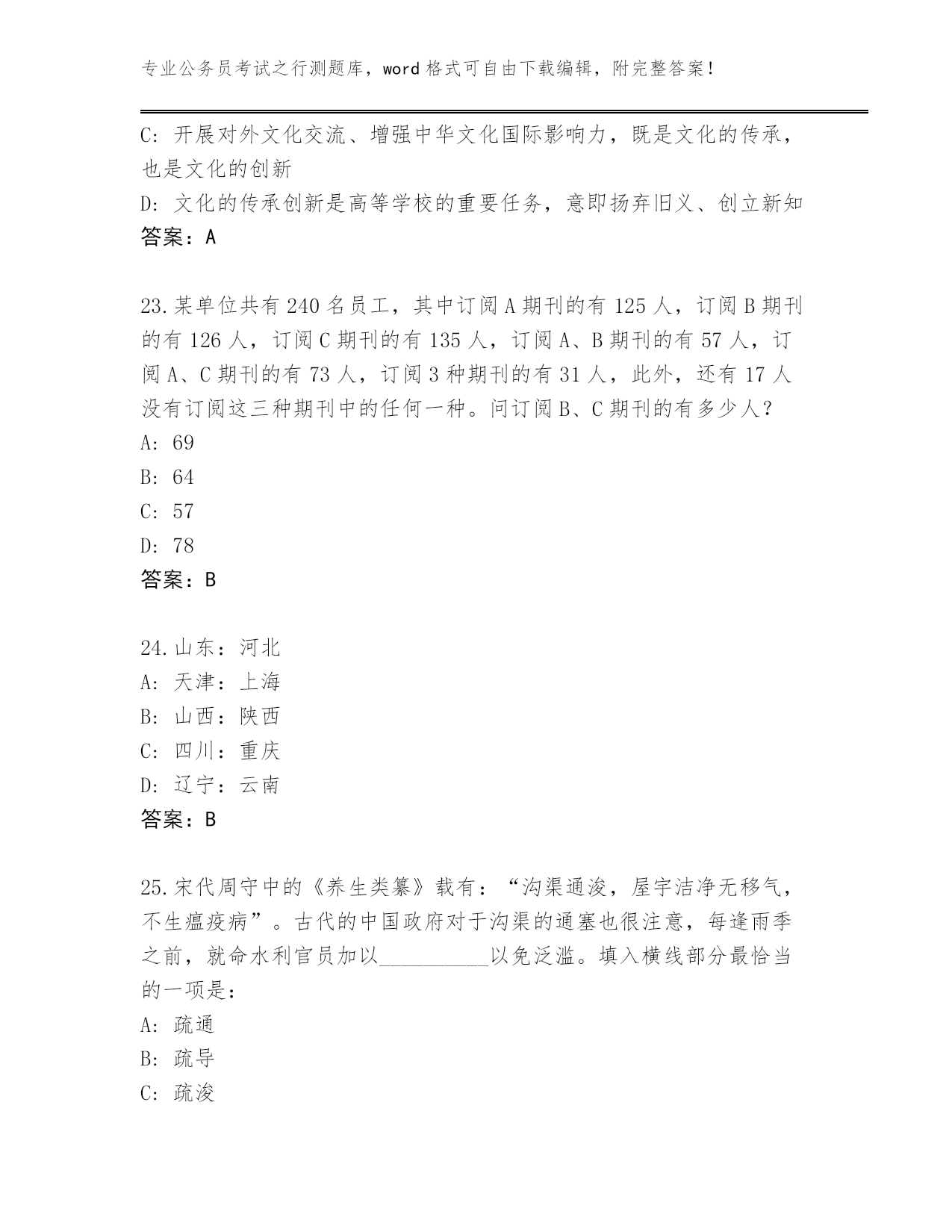 甘肃省完整版公务员考试之行测附参考答案(精练)