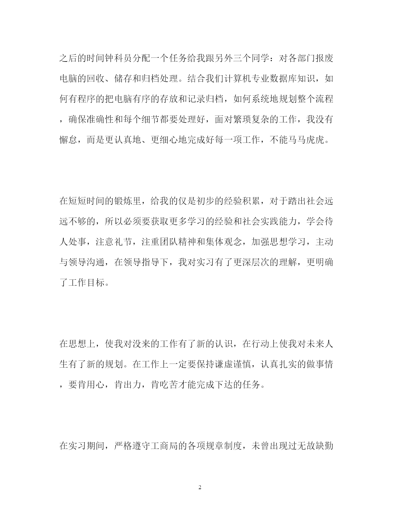 此资料由网络收集而来,如有侵权请告知上传者立即删除。资料共分享,我们负责传递知识。PAGEPAGE3工商局实习自我鉴定工商局实习自我鉴定工商局实习自我鉴定在为期十天的实习期间,我学会了很多,也懂得了很多在生活上没法获得到的知识和道理,回顾这十天,虽然做了不算多的工作,而且工作重复而繁琐,可是却体会到了历久以来最多的做人道理。从第一天黄科员把我安排到办公室的时候,我的工作正式开始了。我的指导负责人是牛科员,首先他给我介绍了自己的日常工作流程,如何利用电子邮件来进行对工商局信访邮件的回复和管理。清晰明确的步骤,妥善安全的备份,保证了人民群众的利益以及对人民群众负责任的态度,我在工作上得到了牛科员以及办公室领导的.认可和表扬。之后的时间钟科员分配一个任务给我跟另外三个同学:对各部门报废电脑的回收、储存和归档处理。结合我们计算机专业数据库知识,如何有程序的把电脑有序的存放和记录归档,如何系统地规划整个流程,确保准确性和每个细节都要处理好,面对繁琐复杂的工作,我没有懈怠,而是更认真地、更细心地完成好每一项工作,不能马马虎虎。在短短时间的锻炼里,给我的仅是初步的经验积累,对于踏出社会远远不够的,所以必须要获取更多学习的经验和社会实践能力,学会待人处事,注意礼节,注重团队精神和集体观念,加强思想学习,主动与领导沟通,在领导指导下,我对实习有了更深层次的理解,更明确了工作目标。在思想上,使我对没来的工作有了新的认识,在行动上使我对未来人生有了新的规划。在工作上一定要保持谦虚谨慎,认真扎实的做事情,要肯用心,肯出力,肯吃苦才能完成下达的任务。在实习期间,严格遵守工商局的各项规章制度,未曾出现过无故缺勤,迟到早退现象,并能跟同事和睦相处。工作积极主动、高效,学习认真,待人诚恳,听从上级指挥,积极观察、体验、思考,定能灵活运用自己的知识解决工作中遇到的问题。阅读本站更多相关文章:文员实习自我鉴定优秀本科毕业生自我鉴定党员自我鉴定怎么写