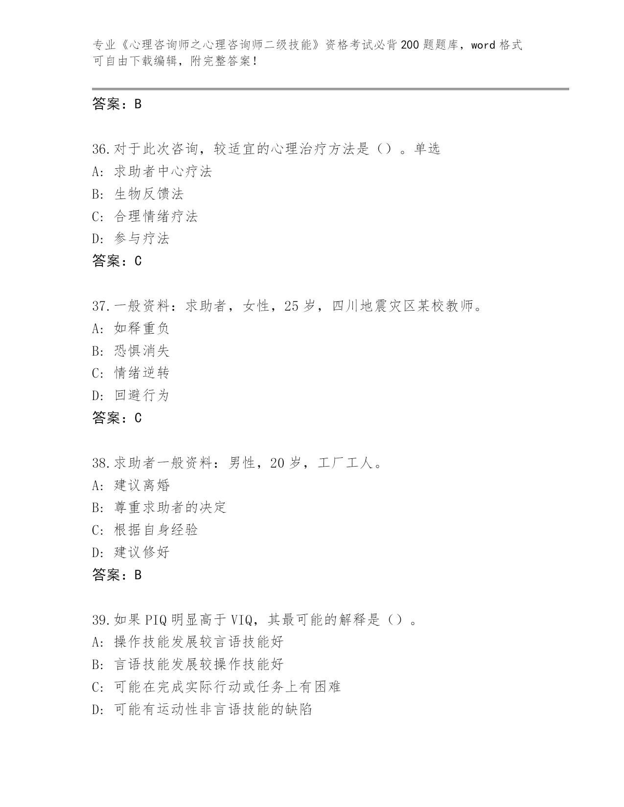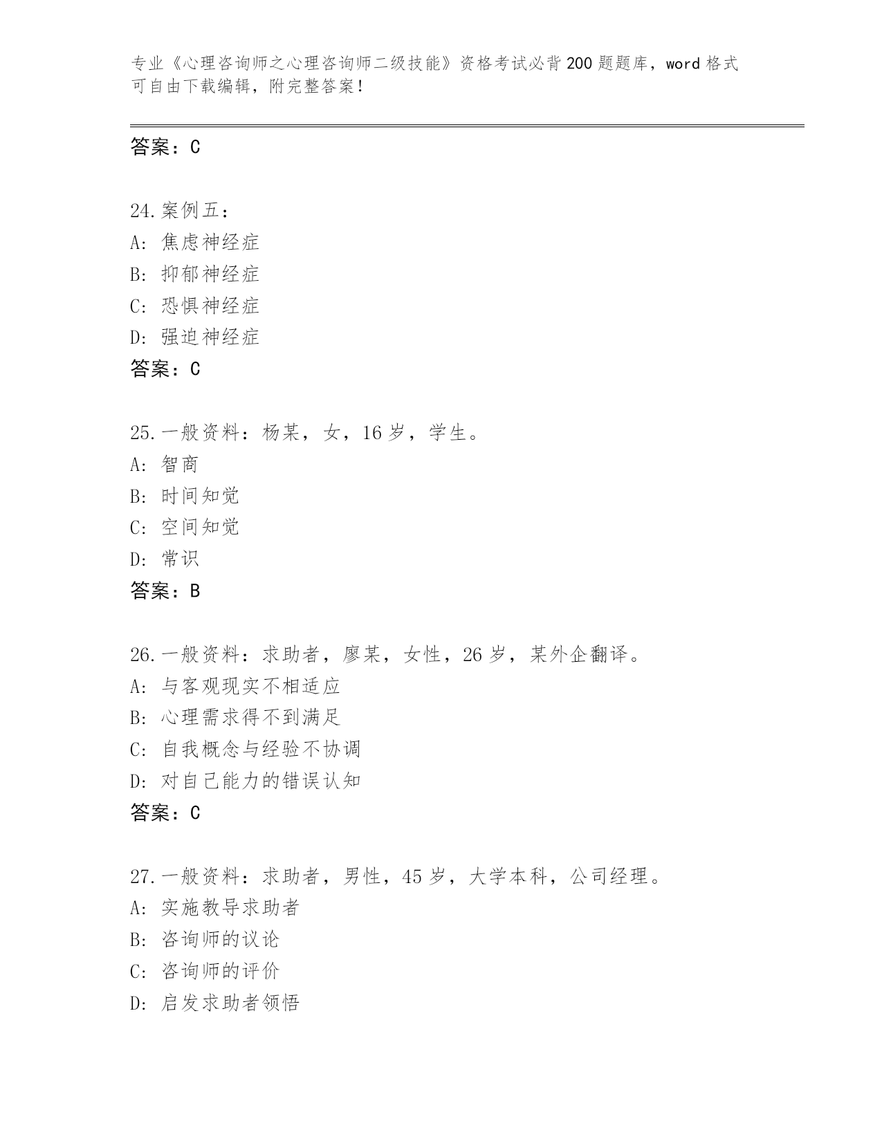 2024云南省江川区《心理咨询师之心理咨询师二级技能》资格考试必背200题题库带答案(典型题)