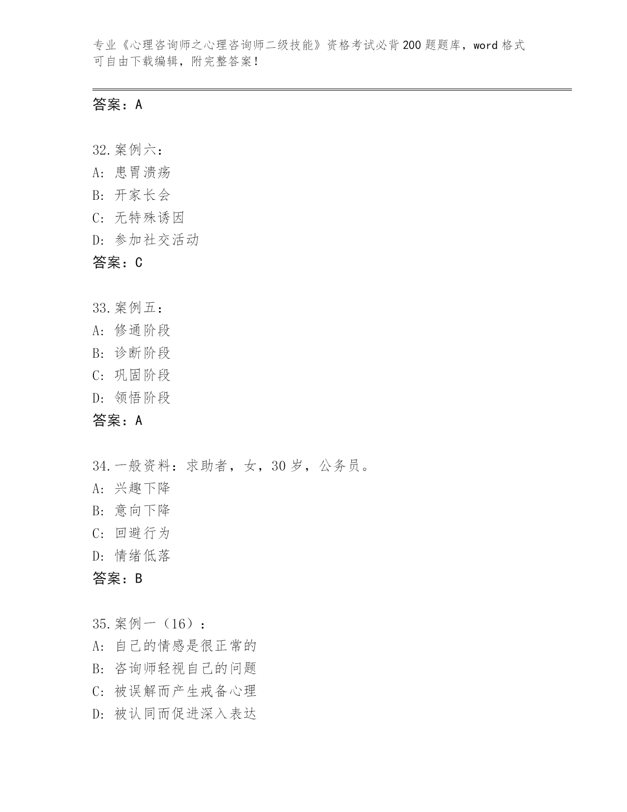 河南省《心理咨询师之心理咨询师二级技能》资格考试必背200题真题题库及答案()