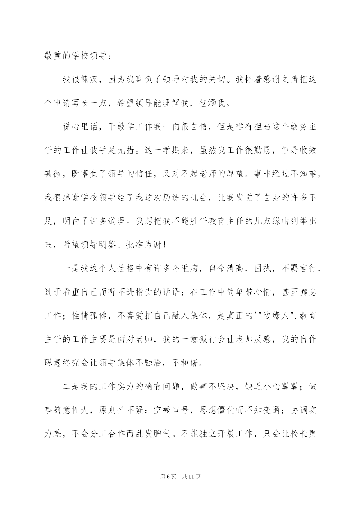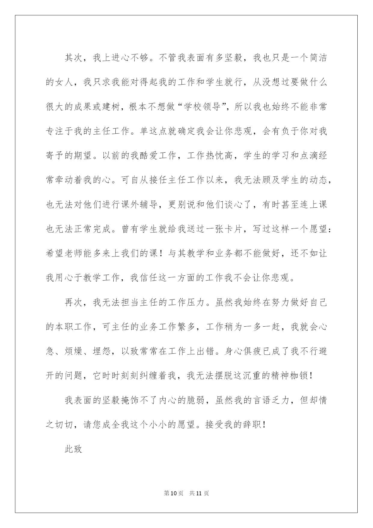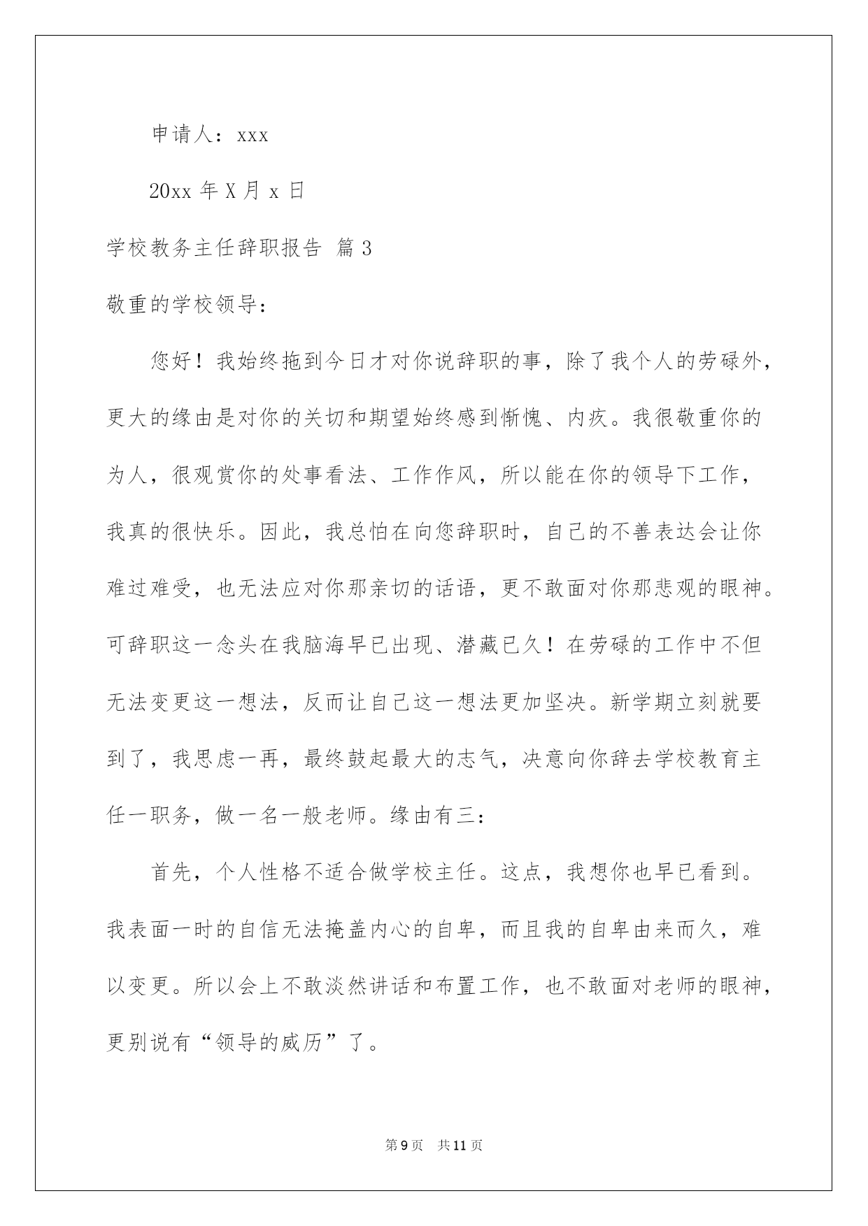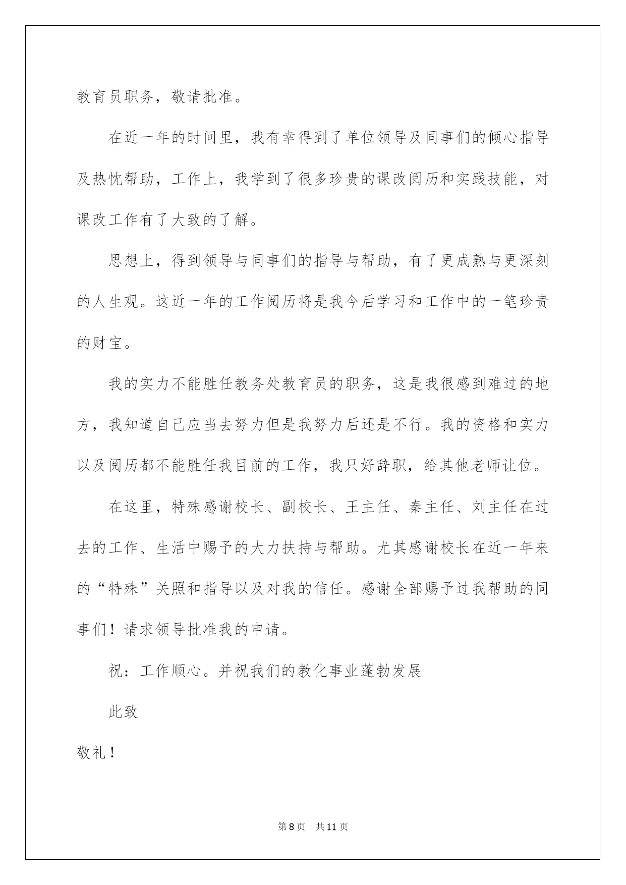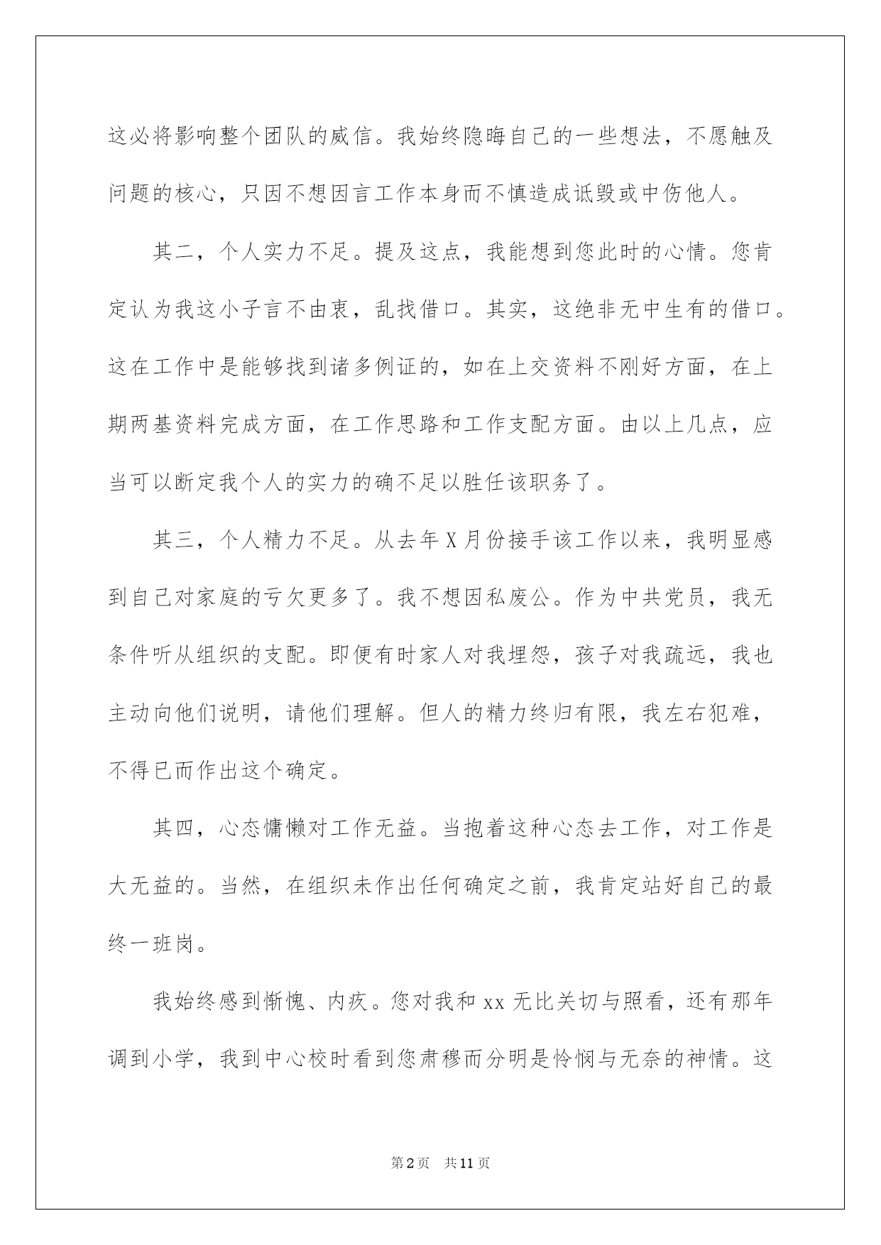 第PAGE\*Arabic\*MERGEFORMAT11页共NUMPAGES\*Arabic\*MERGEFORMAT11页第PAGE\*MERGEFORMAT11页共NUMPAGES\*MERGEFORMAT11页第PAGE\*MERGEFORMAT11页共NUMPAGES\*MERGEFORMAT11页第PAGE\*MERGEFORMAT11页共NUMPAGES\*MERGEFORMAT11页第PAGE\*MERGEFORMAT11页共NUMPAGES\*MERGEFORMAT11页第PAGE\*MERGEFORMAT11页共NUMPAGES\*MERGEFORMAT11页第PAGE\*MERGEFORMAT11页共NUMPAGES\*MERGEFORMAT11页第PAGE\*MERGEFORMAT11页共NUMPAGES\*MERGEFORMAT11页第PAGE\*MERGEFORMAT11页共NUMPAGES\*MERGEFORMAT11页第PAGE\*MERGEFORMAT11页共NUMPAGES\*MERGEFORMAT11页第PAGE\*MERGEFORMAT11页共NUMPAGES\*MERGEFORMAT11页2022学校教务主任辞职报告关于学校教务主任辞职报告三篇在当下这个社会中,越来越多的事务都会运用到报告,其在写作上有肯定的技巧。那么你真正懂得怎么写好报告吗?以下是我帮大家整理的学校教务主任辞职报告3篇,希望对大家有所帮助。学校教务主任辞职报告篇1敬重的X校长:言及此事,实难启齿。圣贤有言:受人滴水之恩,当涌泉相报也。况您予我之恩,何言滴水?我深知有负您的厚望。然思虑一再,虽负不义之名,我心愿已定:决意辞去xx学校教育主任一职务,去做一名一般老师。缘由有四:其一,团队凝合力不够。这或许是我个人错误的想法。目前,团队找不出一个可以统率全局的人,或因威信不足,或因实力不足以胜任。有时个人意志代表团队意志,我不能否认个人意志的正确率,也不能否认个人意志的重要作用,而生怕个人意志的不正确率大于零。这必将影响整个团队的威信。我始终隐晦自己的一些想法,不愿触及问题的核心,只因不想因言工作本身而不慎造成诋毁或中伤他人。其二,个人实力不足。提及这点,我能想到您此时的心情。您肯定认为我这小子言不由衷,乱找借口。其实,这绝非无中生有的借口。这在工作中是能够找到诸多例证的,如在上交资料不刚好方面,在上期两基资料完成方面,在工作思路和工作支配方面。由以上几点,应当可以断定我个人的实力的确不足以胜任该职务了。其三,个人精力不足。从去年X月份接手该工作以来,我明显感到自己对家庭的亏欠更多了。我不想因私废公。作为中共党员,我无条件听从组织的支配。即便有时家人对我埋怨,孩子对我疏远,我也主动向他们说明,请他们理解。但人的精力终归有限,我左右犯难,不得已而作出这个确定。其四,心态慵懒对工作无益。当抱着这种心态去工作,对工作是大无益的。当然,在组织未作出任何确定之前,我肯定站好自己的最终一班岗。我始终感到惭愧、内疚。您对我和xx无比关切与照看,还有那年调到小学,我到中心校时看到您肃穆而分明是怜悯与无奈的神情。这些,任何一个有良知的人都不会麻木不仁。想到电话里您对我的悲观,交谈中对我寄予的希望。而我近乎不行理喻的想法,这让原来就为全镇教化事业操够了心的您因我不求上进而无语。想到这些,这对我这个封建而守旧的人来说,我无法摆脱这沉重的精神枷锁。望领导早日批准我的辞职申请,在此特别的感谢!此致敬礼!xxx日期学校教务主任辞职报告篇2敬重的领导:进入教务处已整整八年,八年来我对工作可算是兢兢业业、勤勤恳恳,虽没取得多大的成果,但也没有出现过重大的差错。八年下来,我明显感到身心的乏累不堪,感到精力、实力的不足,越来越感到再也不能胜任教务主任一职,现特提出辞职申请。1、个人实力不足。多年来虽努力工作,但因实力有限,越来越感到力不从心。一是不能很好完成领导、上级支配的工作任务,对布置下来的任务感到麻烦,不知如何去做,即使做了,也是勉牵强强,达不到领导的预期与满足,甚至有时完成不好、或完成不了交办的任务。二是各项工作的开展不能顺顺当当,总是感到磕磕碰碰,一些小的失误、差错时常出现,一些支配不能尽人意,总是招来各方面的埋怨与埋怨,无形当中造成不小的冲突。2、身心乏累。秉性使然,造成了我对工作总想尽善尽美,这也使我深感身心的乏累。一是精力上明显不如从前,不管什么总是放在心上,挥之不去。失眠或深夜醒来再也睡不着已成习以为常,满脑子都是工作,总感到工作有考虑不到的或考虑不周的,即使强迫自己忘掉或自我劝慰也是枉