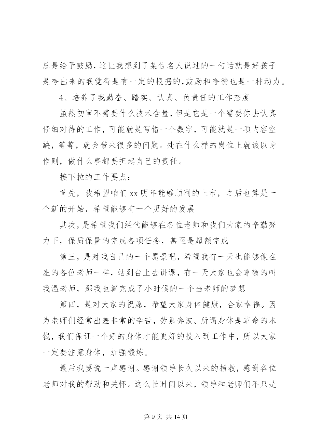 第PAGE\*Arabic\*MERGEFORMAT14页共NUMPAGES\*MERGEFORMAT14页保险述职报告范文精选5篇工作总结20xx年是xxx寿险市场竞争更加激烈的一年,同时也是xxx个险发展重要的一年,xxx个险在中支公司总经理室的正确领导下,认真贯彻落实年初总经理室提出的各项要求,紧紧围绕分公司及中支下达的各项工作指标,以业务发展作为全年的工作主题,明确经营思路,把握经营重点,积极有效地开展工作,取得了较好的成绩。为了给今后工作提供有益的借鉴,现将xxx个险xx年的工作情况和xx年的工作计划汇报如下:20xx年的经营成果和工作总结截至12月1日,xxx个险在全体业务同仁、内外勤的共同努力下,共实现新单保费收入xxxx万元,其中期交保费xxx万元,趸交保费xxxxx元,意外险保费xxxx万元,提前两个月完成分公司下达的期缴指标;个险至12月有营销代理人xxxx人,其中持证人数xxxx人,持证率xx%;各级主管xx人,其中部经理x人,主任x人。实现了业务规模和团队人力的稳定。回顾xx年走过的历程,凝聚着xxx太保人顽强奋斗,执着拼搏的精神,围绕不同阶段的工作重点,针对各阶段实际状况,我们积极调整思路,跟上公司发展的节奏,主要采取了以下具体工作措施:从思想上坚定信心,明确方向,充分认识市场形势,抓住机遇,直面挑战。今年xxx同业公司不断从各个方面和我们展开较量,特别是国寿、华泰、泰康、人保等大小公司。在这种市场环境中,只有迎头赶上,积极发展才是硬道理。xxx个险上下充分领会上级精神,认识到决不能被动地围着市公司的计划指标转,而是应该积极地开拓市场,这是两种不同的发展观念,也将取得截然不同的发展结果。我们利用各种时机,转变个险所有内外勤的观念,变要我发展为我要发展。对于销售一线的业务人员,我们反复强调,取得业绩占领市场才是根本,要看到寿险市场取之不尽的资源,并意识到做一份保单就占有一块市场。只有树立起发展的新观念,不断占领市场份额,用服务和士气与同业竞争,营销团队才能在市场大潮中立于不败之地。正是攻克了思想上的堡垒,统一了发展观念,才为xxx个险从根本上增强了凝聚力,xxx个险呈现出积极主动,健康向上的精神面貌。针对全年各阶段经营重点,我部门积极配合中支公司各项安排,结我个险实际情况,适时推出竞赛方案,有针对性地进行业绩拉动。特别是在今年7月份百日大战中,推出了群英会聚人民大会堂的竞赛方案,树明星、拉标杆,布置天天拜访,周周举绩,月月增员、百日达标的口号,在各个职场中悬挂,有效加强了团队凝聚力,通过全体内外勤百日的浴血奋战,最终达成全省进度前十强的好成绩,xxx个险达成赴人民大会堂的代表合计12名。针对个险组训,明确职责定位,强化岗位意识和工作责任心,使外勤伙伴和内勤工作人员都认清方向,各司其职。1、针对团队主管强化目标意识,增强主管带动意识。2、针对精英高手强化荣誉感,加强训练和培养。3、针对个险内勤人员,调整部门架构,明确岗位职责,切实作好团队的支持和服务工作。一手抓基础管理,提高团队素质,维护团队稳定;一手抓产品业务,提高规模保费,保证目标达成。1、基础工作,立足长远发展,是xxx个险长期以来始终坚持的方向,在xx年,xxx个险基础管理工作又上了新的台阶。从早会经营、出勤管理、系统培训、职场建设等多个方面,加强点滴培养,使各项工作有序开展,团队形成了规律性的工作习惯,团队素质不断提升,队伍稳定性不断增强。在早会经营方面,xxx个险高度重视,要求组训下大力气保证每次早会的效果,一年来经营成果显著。为了做好出勤管理,滨个险年初修订了考勤管理办法,取消了兼职的说法,对所有人提出明确的考勤奖惩机制,要在全辖树立制度意识,明确要工号就要上班工作的硬道理,引导团队进一步端正风气,养成良好工作作风。2、抓基础管理的同时,认真做好产品说明会的组织保障工作,开展形式多样的客户答谢活动,特别在今年七月以来,在各网点积极举办个人专场,取得了不错的成绩,也得到了外勤人员的赞同。保险理赔个人工作总结时间过的好快,转眼间一年的时间又要过去了,真是时不我待。在加入xx保险xx分公司的半年时间内,得到大家的帮忙实在是太多,此刻我将本年度的工作状况汇报一下:理赔理算岗位是一个工作十分较为繁琐的岗位。它在理赔的整个流程上算是最后一道关口。是这是一项十分需要耐心和细心的工作岗位。对于我的工作,我有得有失,做的并不够完善。一、理赔案件结案从客户出现报案后,现场查勘完毕,客户交起索赔材料,定损后录入新系统,转到核价岗,做完理算,领导审批签字,方可拿给财务部转账汇款。截止12月份,已结2000余件已决赔案。并且在透过年底理赔部全部门的努力,将已决案件结案率成功的从70%提升至85%以上,完成了总公司下达分公司理赔结案率的任务。