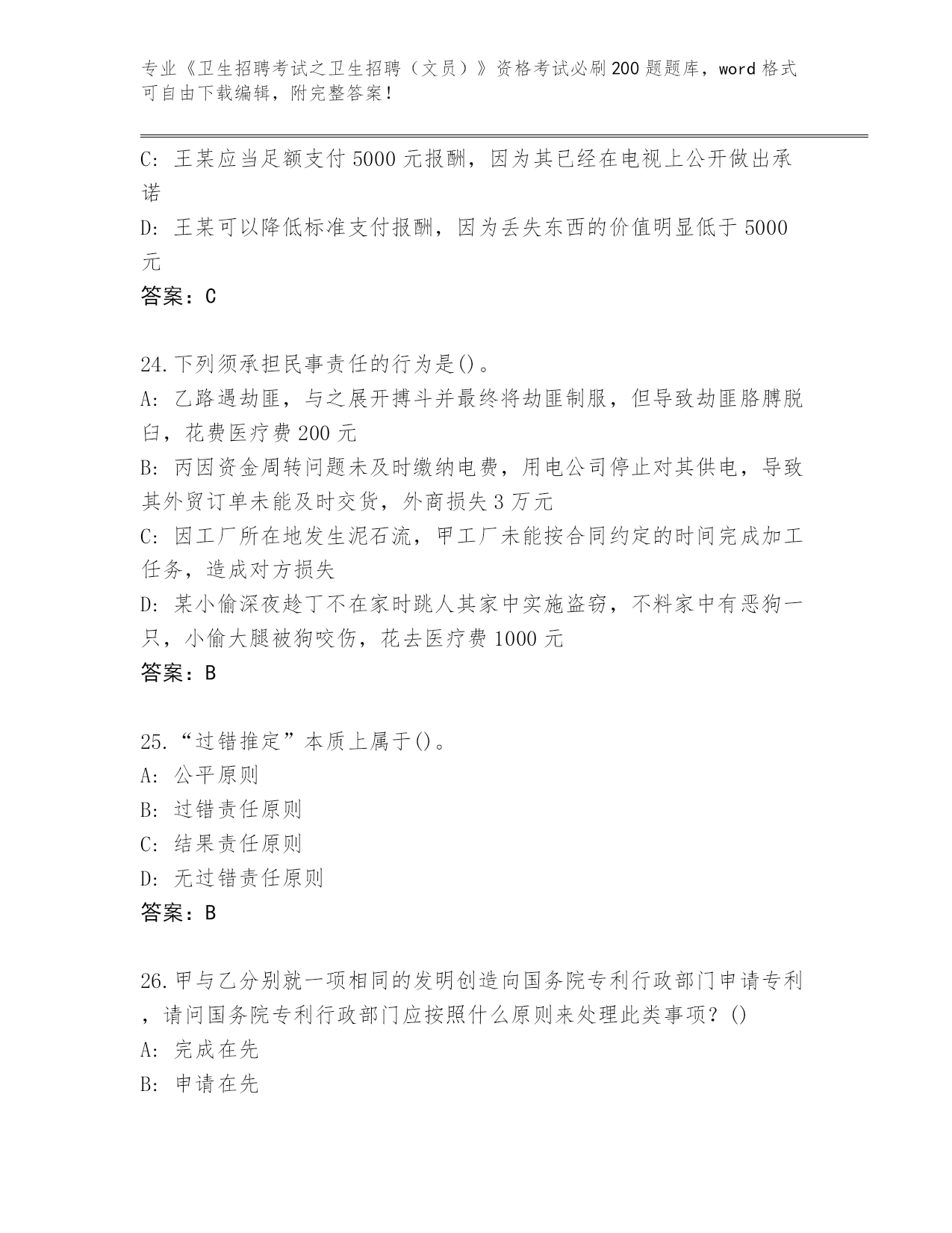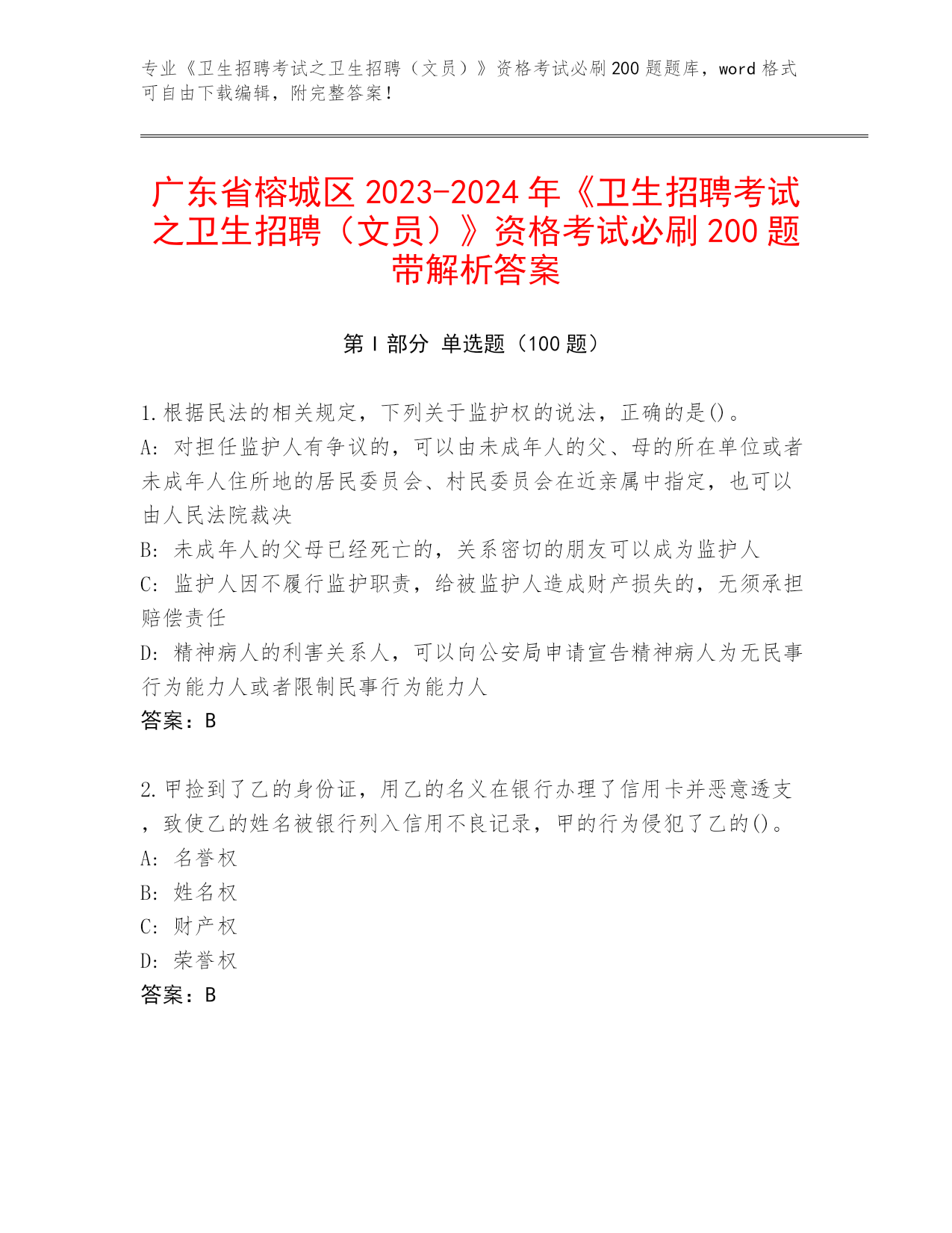 广东省榕城区2023-2024年《卫生招聘考试之卫生招聘(文员)》资格考试必刷200题带解析答案
