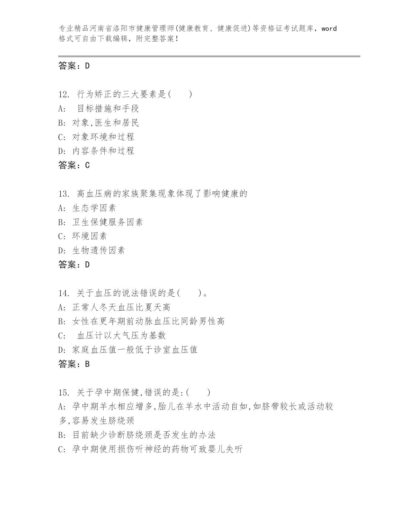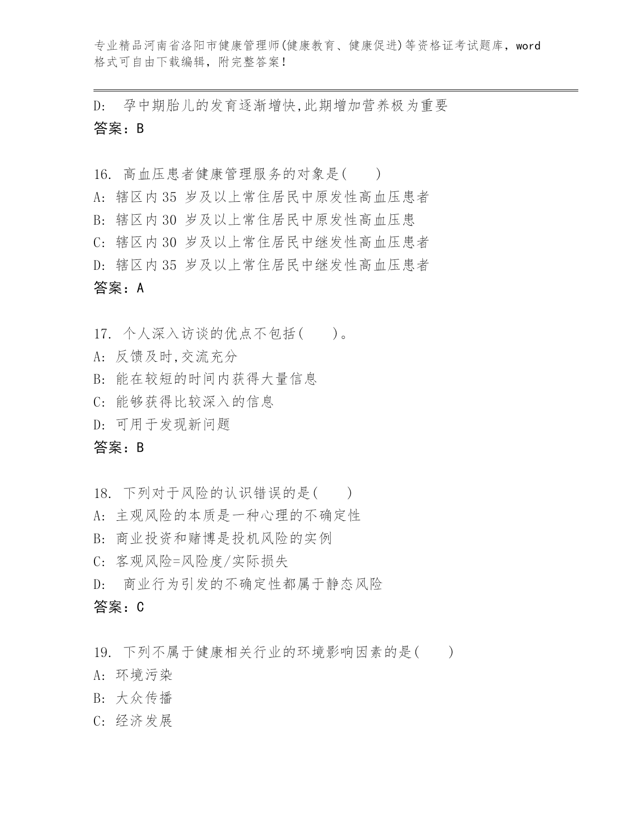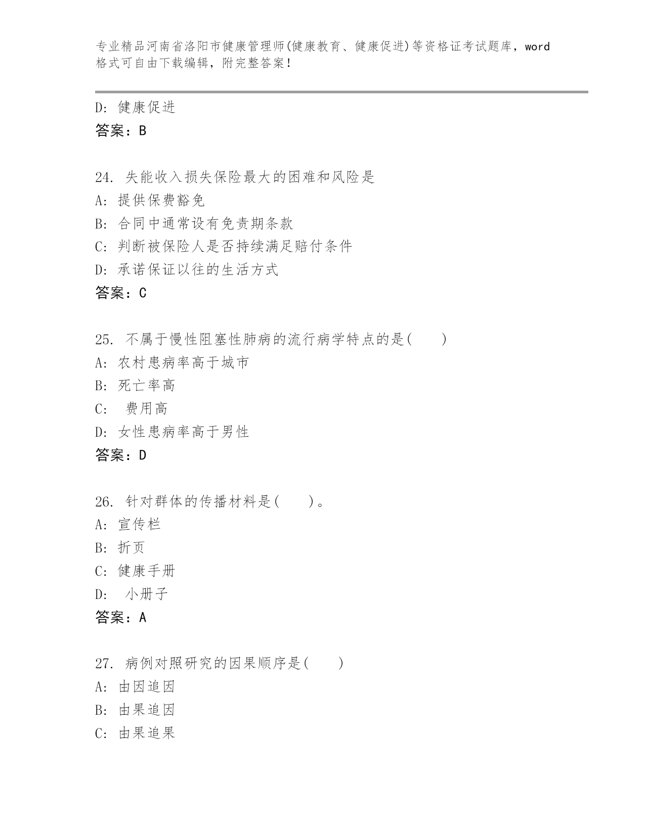 历年河南省洛阳市健康管理师(健康教育、健康促进)等资格证考试精选题库【精练】.docx