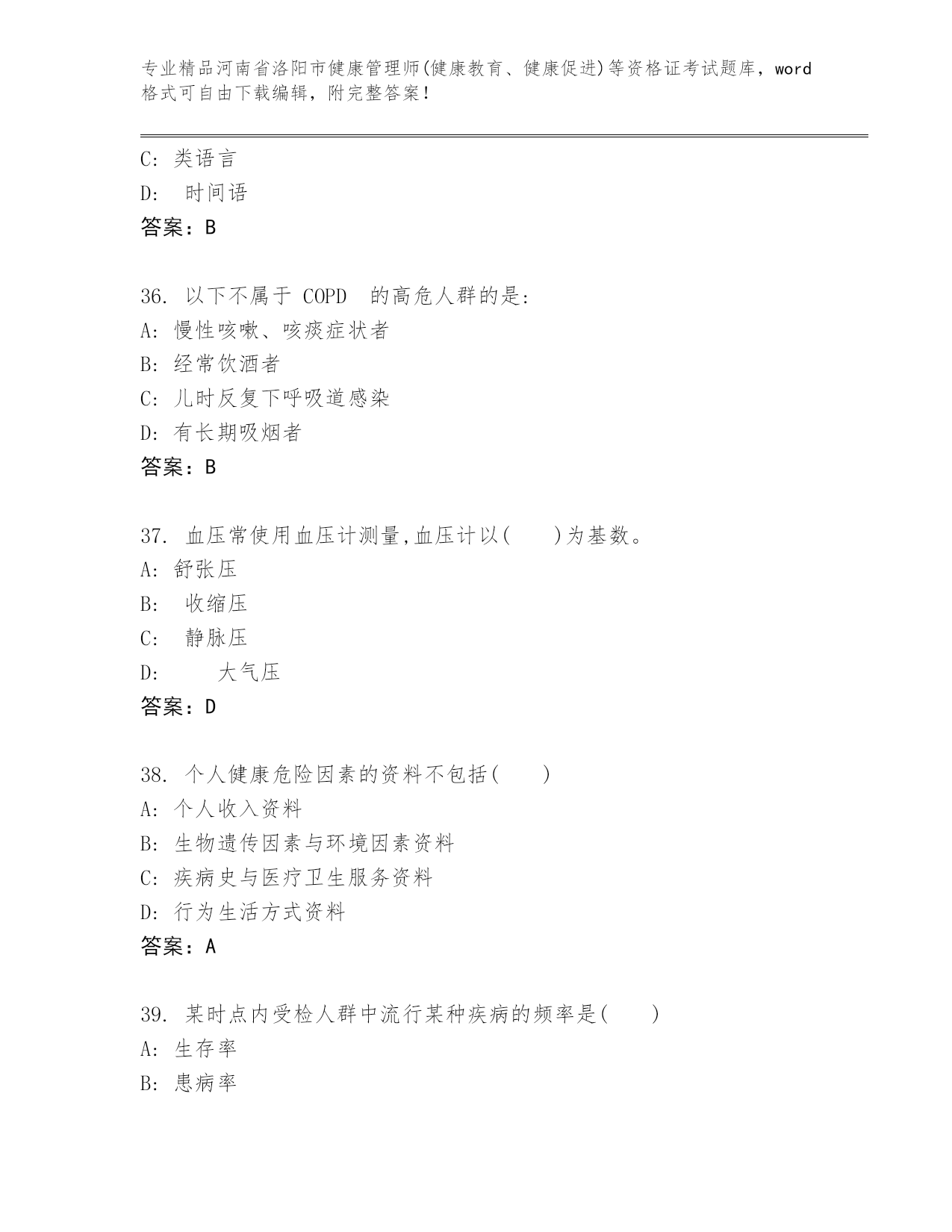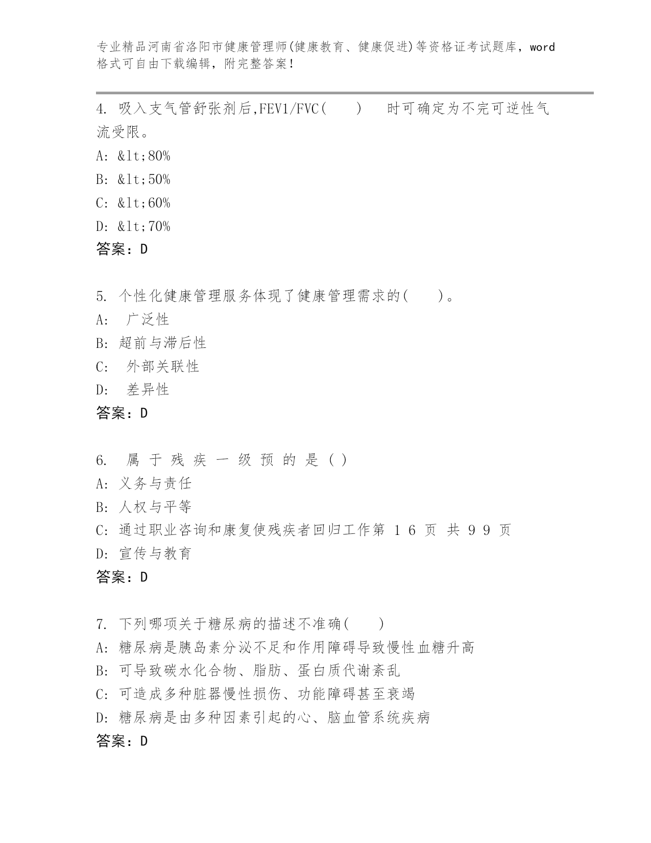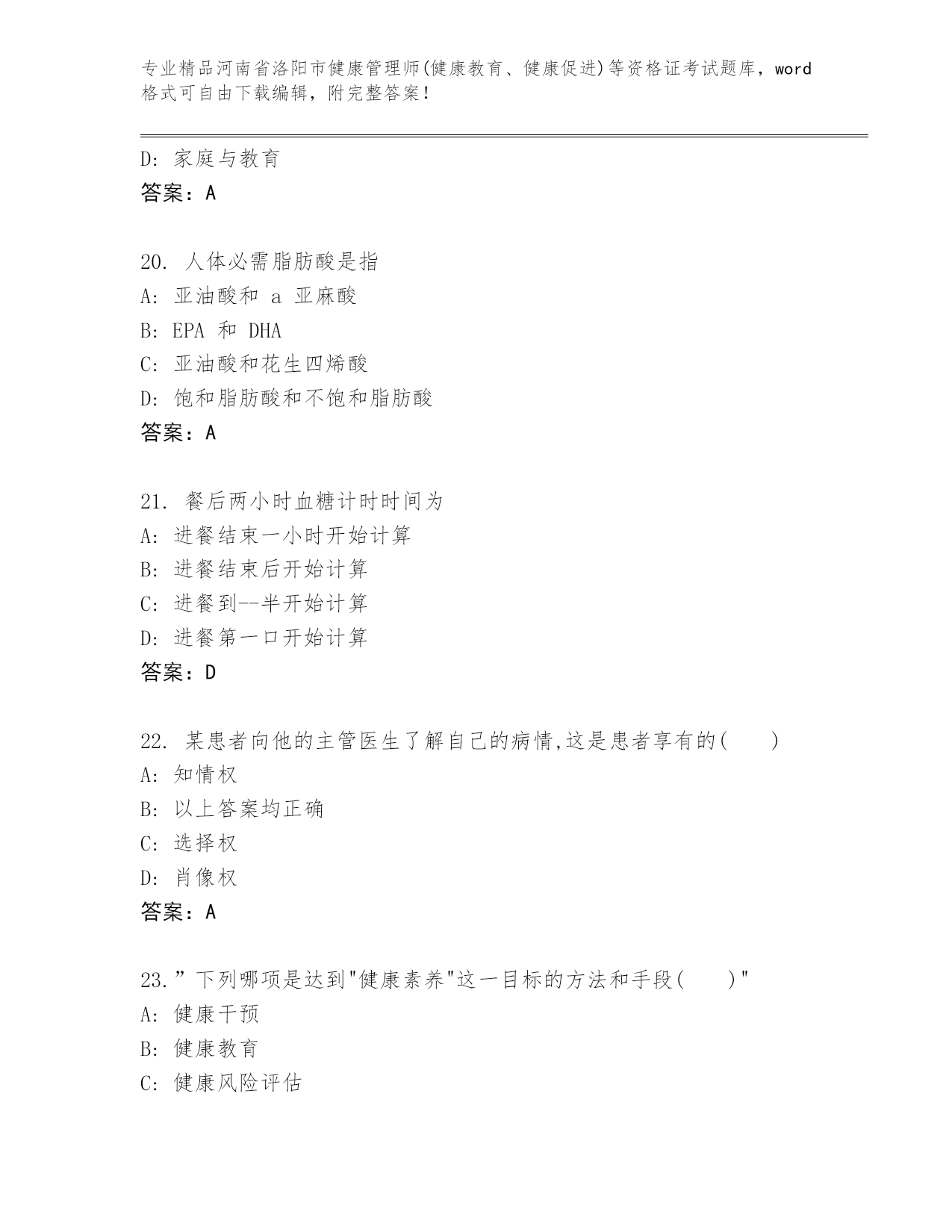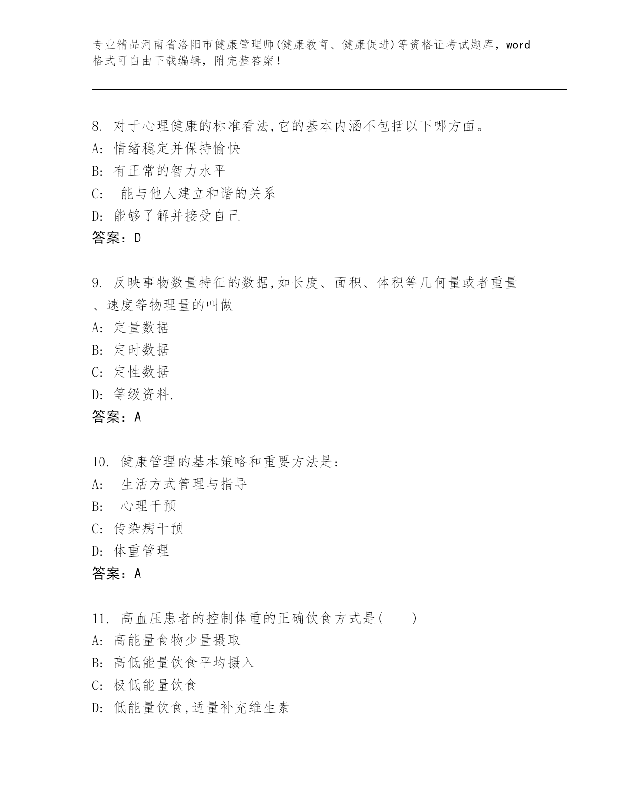 历年河南省洛阳市健康管理师(健康教育、健康促进)等资格证考试精选题库【精练】.docx