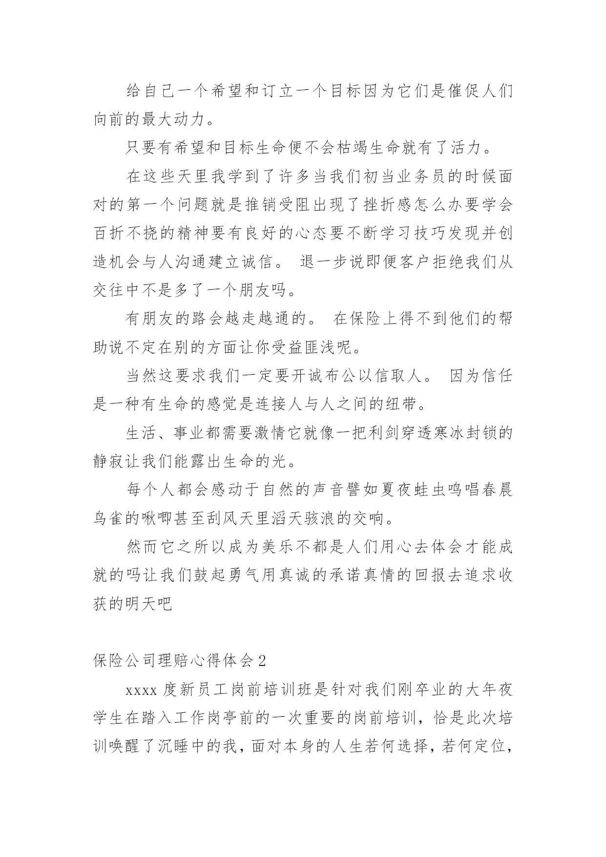保险公司理赔心得体会从某件事情上得到收获以后,可以寻思将其写进心得体会中,从而不断地丰富我们的思想。那么你知道心得体会如何写吗?下面是小编为大家整理的保险公司理赔心得体会,仅供参考,大家一起来看看吧。保险公司理赔心得体会1很早之前就听朋友反复提到人在努力得不够、用心得不够的时候总喜欢创造一些不是理由的理由来开脱自身以便下台。总认为自己没有时间没有能力。总认为成功依赖于某种天才某种魔力但是我们可以看到成功的因素其实掌握在我们自己手中。一个人能飞多高并非由人的其他因素决定而是受他自己的信念所制约。成功与失败的差别是成功者总是以最积极的思考、最乐观的精神支配和控制自己的人生而失败者刚好相反。因此只要一句赞美、一个微笑或拥有一颗真挚分享的心就可以给他人带去和分享美妙的成功感受。怀着感恩的心回报客户。也许这只是小小的善小小的`德但都是成功的颗粒。每一个成功的人都有不平凡的传奇故事这些不平凡的传奇是靠着不断的努力奋斗出来的。给自己一个希望和订立一个目标因为它们是催促人们向前的最大动力。只要有希望和目标生命便不会枯竭生命就有了活力。在这些天里我学到了许多当我们初当业务员的时候面对的第一个问题就是推销受阻出现了挫折感怎么办要学会百折不挠的精神要有良好的心态要不断学习技巧发现并创造机会与人沟通建立诚信。退一步说即便客户拒绝我们从交往中不是多了一个朋友吗。有朋友的路会越走越通的。在保险上得不到他们的帮助说不定在别的方面让你受益匪浅呢。当然这要求我们一定要开诚布公以信取人。因为信任是一种有生命的感觉是连接人与人之间的纽带。生活、事业都需要激情它就像一把利剑穿透寒冰封锁的静寂让我们能露出生命的光。每个人都会感动于自然的声音譬如夏夜蛙虫鸣唱春晨鸟雀的啾唧甚至刮风天里滔天骇浪的交响。然而它之所以成为美乐不都是人们用心去体会才能成就的吗让我们鼓起勇气用真诚的承诺真情的回报去追求收获的明天吧保险公司理赔心得体会2xxxx度新员工岗前培训班是针对我们刚卒业的大年夜学生在踏入工作岗亭前的一次重要的岗前培训,恰是此次培训唤醒了沉睡中的我,面对本身的人生若何选择,若何定位,若何更快的融入国寿这个大年夜家庭等等,我开端感到到有了偏向,心里也有了设法主意,对人生充斥了自负和喜悦。总之,岗前培训给了我一次人生定位的机会,付与了我很深的意义,对于我的将来、我开端信赖本身。人生的一个转折点都是一个新的起跑线,无论处在哪一个起跑线上,我们都要信赖本身,尽力奔驰,一往无前。我走出校园,踏入社会,走进了国寿这个大年夜家庭,是我人生的一个新的起跑线,在这个起跑线上我将如何去做呢,我迟疑、彷徨、赓续的思虑着。最后,我想说,有成就时不要骄傲,碰到艰苦挫折时,要对本身说,信赖本身,当这一切以前,我们将是第一!如不雅说岗前培训是对我思想理念的晋升的话,那么练习的过程则是对我实践经验的积聚。进入个险部练习对于我来说,是一个由陌生变成熟悉,由消极变成乐不雅,由困惑本身变成信赖本身的过程,在这个过程中,公司的企业文化、任务都时刻在影响着我。人生不如意之事常有八九,同样,我轮岗练习的过程中也不例外,有时会碰着不如意的事,也有艰苦袭击的时刻,而每当在这个时刻,我都邑想起“信赖本身”这首歌,如许我都邑让每一次挫折成为我成长的.机会。练习的┞封段时光里,我听到每小我谈论的几乎都是些积极的事,我看到了几乎每小我都把本身的工作算作事业袈溱经营,同时我也悟到了些做人干事的事理!保险公司理赔心得体会3自从xx开始在新华人寿保险公司实习以来,到现在已经学习了20天了。虽然自己仍然一个单子也没有做成,还交了400元的各项费用和押金,但是学到了很多东西。在学校里一直认为工作了什么事情就都简单了,不用那么用功学习了,可是在新华的这段时间我发现,越是工作越需要学习。在新华不仅仅新的员工需要学习(比如:保险法的相关知识,考取代理人资格证书以及相关的业务技能培训),而且各个级别的都需要不断的培训学习。而且这里的工作氛围很好,每天都有晨会,大家高高兴兴的一起学习,分享经验,是快乐的工作。在这里,能学到很多的知识。不仅仅是保险的,而且有关理财的'知识、人际交往的知识等。退一步说,即使我以后不适合作保险,也锻炼了自己,增强了自身的一些素质。另外,我们新华保险公司有很多的激励机制不断的鼓励我们去奋斗,挑战自我。我感觉不仅仅是作保险需要这样,人的生活也是这样的。以前从没有穿过西服、打过领带,来到公司这些都是需要的(当然,现在去应聘都得这样)。学习了一些基本的礼仪。还有针对同行业的竞争,我们是绝不能说一些诋毁的话语。虽然这些都是一些基本的职业道德,但是我却经常听同学说其他保险公司诋毁我们。这一点我感到很欣慰。一个公司不是把精力放在自夸和贬低对手上,而是切切实实的去为了客户的利益去努力的服务。总之,我是被新华十年的发展速度折服了!他那过