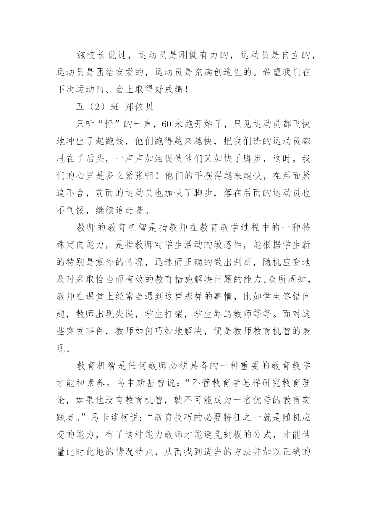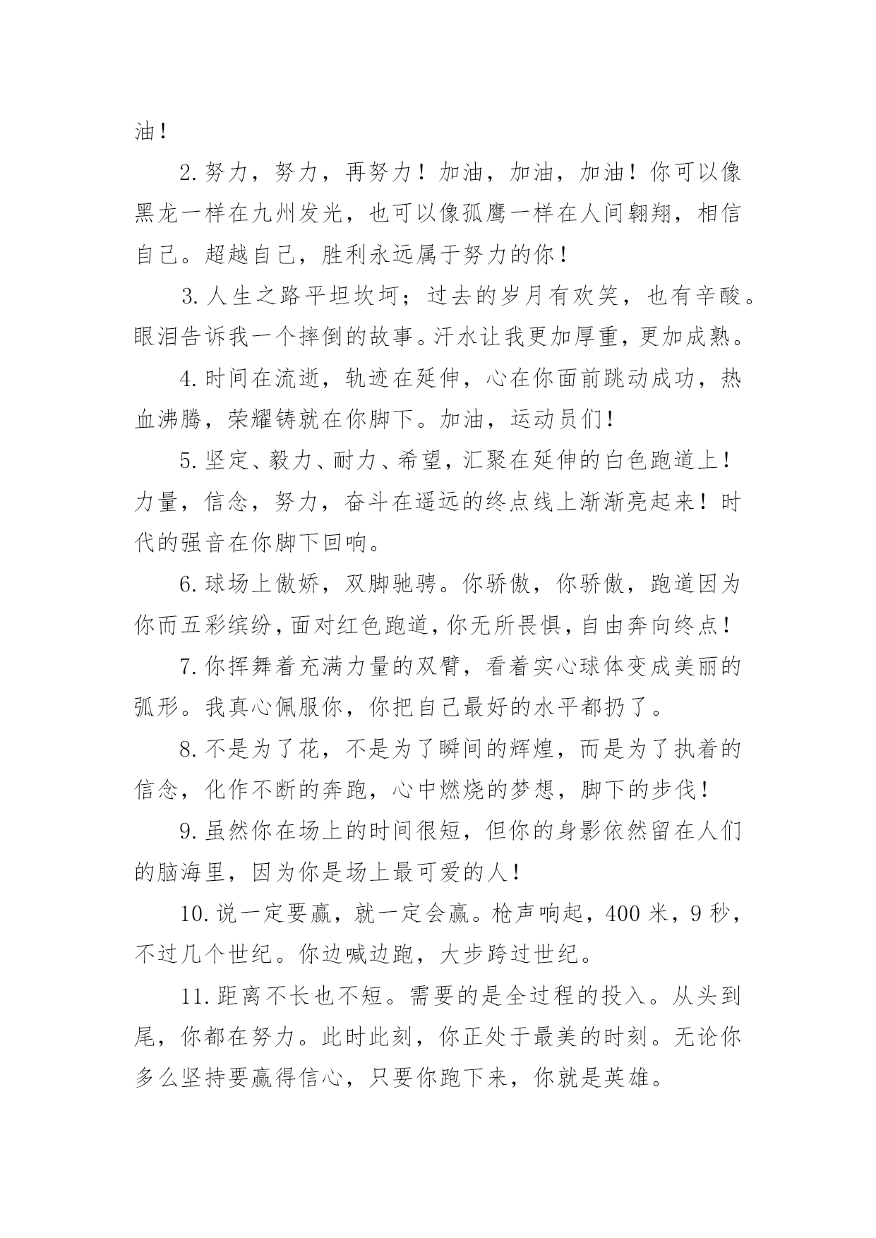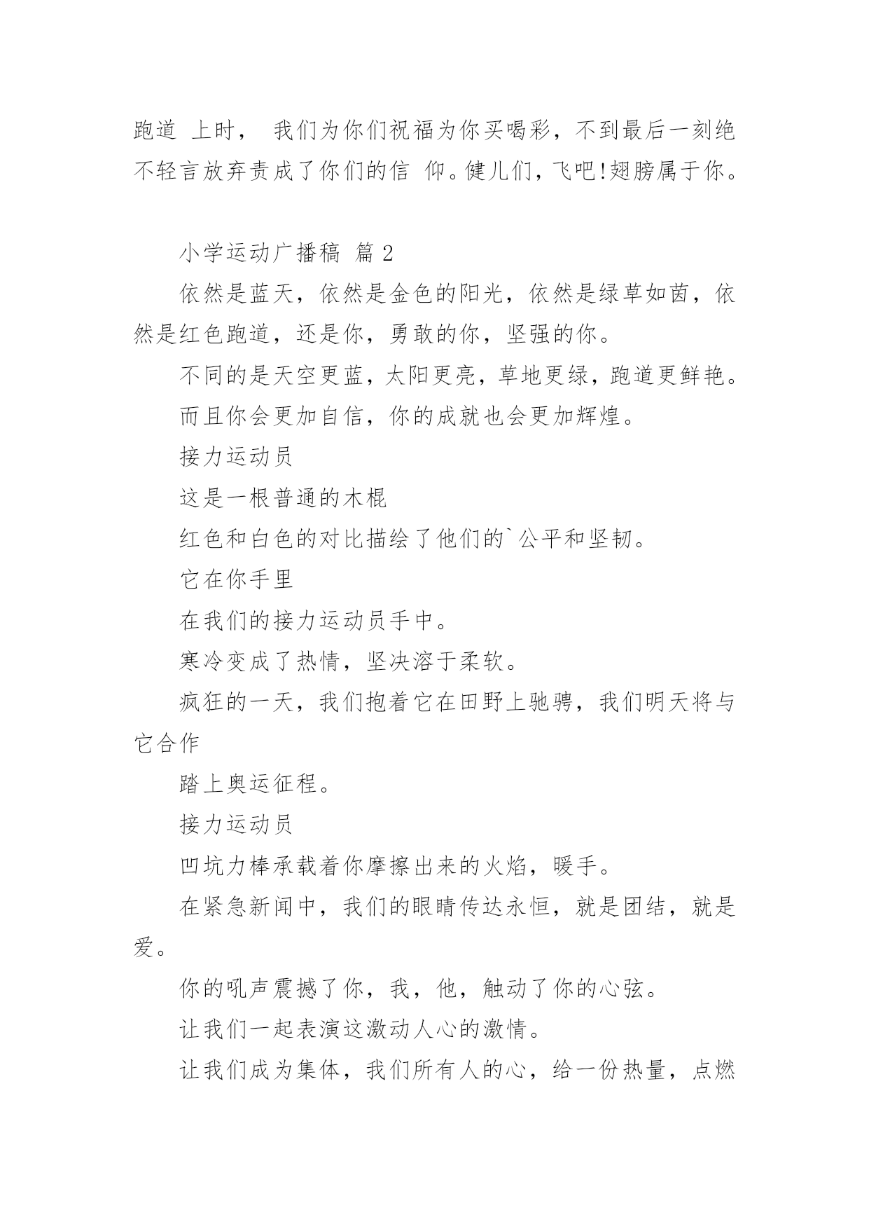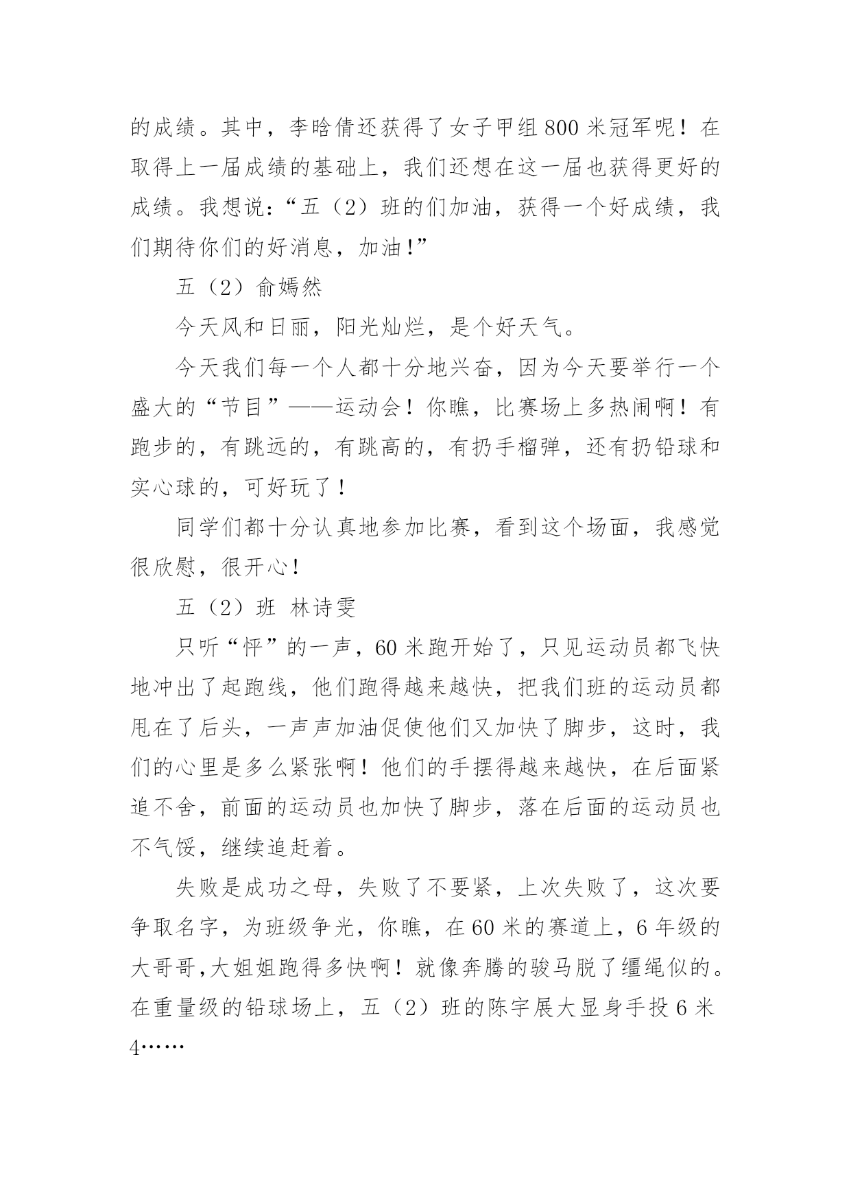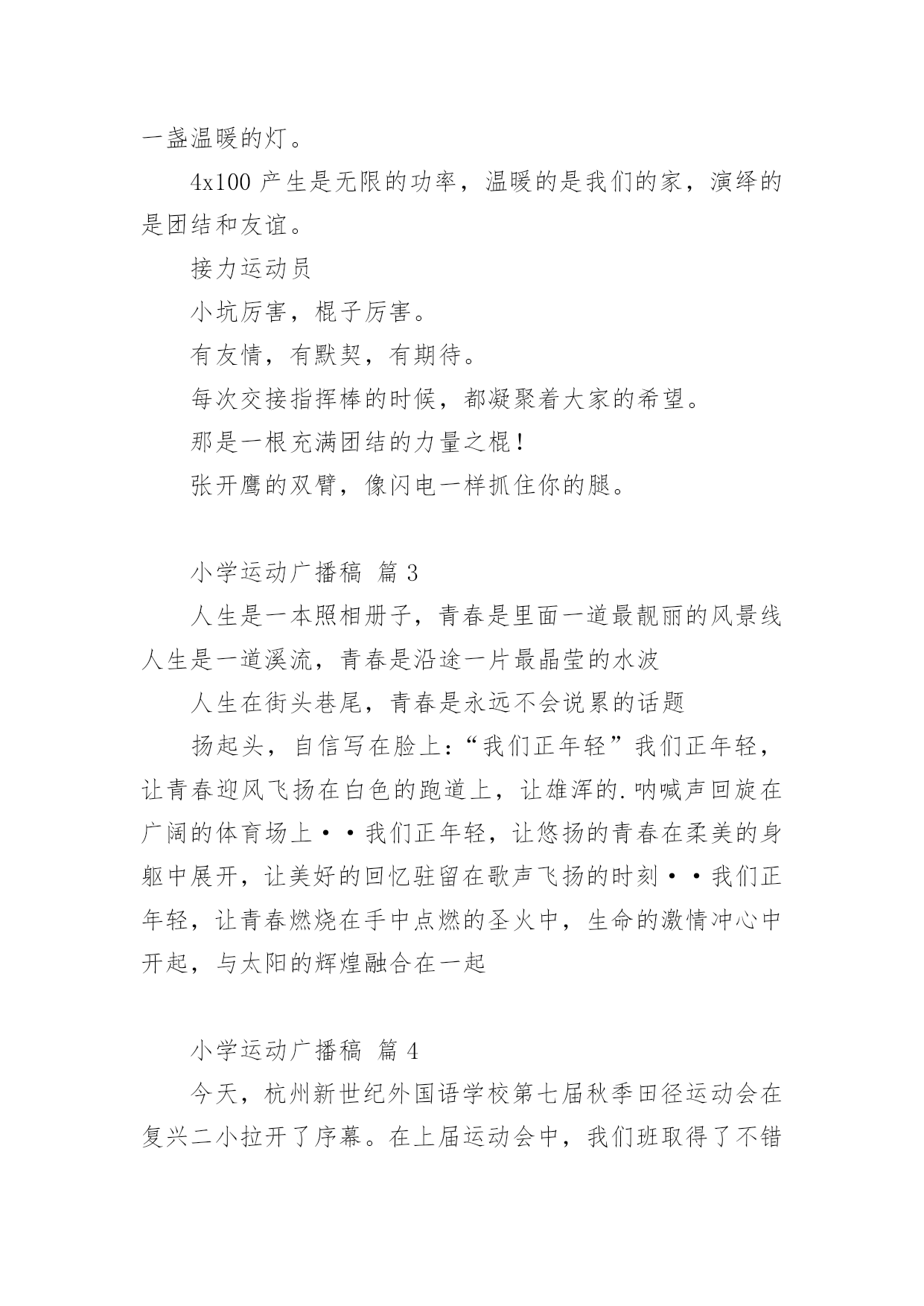 小学运动广播稿在广播站锻炼的学生都知道,我们广播前都会预先做好广播稿,一流的广播稿会带来更好的节目效果,广播稿要怎么写呢?以下是小编整理的小学运动广播稿,希望能够帮助到大家。小学运动广播稿篇1枪声响了,你们冲向前,不为别的,就为无憾一马当先,没有昔日的汗水,怎见今天的胜利?相信自己,鼓励自己,超越自己。为太阳的光辉在添上永恒的一笔!要的就是坚持到底,不是华丽。冲吧!向着那未来,进行到底。所有人最想目睹的是你们的风姿,最想倾听的是你们的呼吸,最想感觉的是你们呼啸而过的骤风,今天,你们是焦点;今天,你们是我们的骄傲;今天,我们看你们创造辉煌。跑道上,无数次站在雪白的起跑线上,无数次抬眼望着前方,无数次品位失败的苦涩,无数次品尝胜利的甘甜。这就是你——百米运动员。辉煌的背后是汗水,成功的背后是艰辛,为了这近在眼前的终点,你曾无数次的起跑与冲刺。这一片天地属于你,我们都相信你是好样的;带着你无比自信的`笑容,让我们目睹你的英姿。无论结局是好是坏,所有的这一切,都将在心灵的空中,如彩虹一般,留下美丽而永恒的瞬间。无怨无悔是我们的选择,每当运动员奔驰在400米跑道上时,我们为你们祝福为你买喝彩,不到最后一刻绝不轻言放弃责成了你们的信仰。健儿们,飞吧!翅膀属于你。小学运动广播稿篇2依然是蓝天,依然是金色的阳光,依然是绿草如茵,依然是红色跑道,还是你,勇敢的你,坚强的你。不同的是天空更蓝,太阳更亮,草地更绿,跑道更鲜艳。而且你会更加自信,你的成就也会更加辉煌。接力运动员这是一根普通的木棍红色和白色的对比描绘了他们的`公平和坚韧。它在你手里在我们的接力运动员手中。寒冷变成了热情,坚决溶于柔软。疯狂的一天,我们抱着它在田野上驰骋,我们明天将与它合作踏上奥运征程。接力运动员凹坑力棒承载着你摩擦出来的火焰,暖手。在紧急新闻中,我们的眼睛传达永恒,就是团结,就是爱。你的吼声震撼了你,我,他,触动了你的心弦。让我们一起表演这激动人心的激情。让我们成为集体,我们所有人的心,给一份热量,点燃一盏温暖的灯。4x100产生是无限的功率,温暖的是我们的家,演绎的是团结和友谊。接力运动员小坑厉害,棍子厉害。有友情,有默契,有期待。每次交接指挥棒的时候,都凝聚着大家的希望。那是一根充满团结的力量之棍!张开鹰的双臂,像闪电一样抓住你的腿。小学运动广播稿篇3人生是一本照相册子,青春是里面一道最靓丽的风景线人生是一道溪流,青春是沿途一片最晶莹的水波人生在街头巷尾,青春是永远不会说累的话题扬起头,自信写在脸上:“我们正年轻”我们正年轻,让青春迎风飞扬在白色的跑道上,让雄浑的.呐喊声回旋在广阔的体育场上··我们正年轻,让悠扬的青春在柔美的身躯中展开,让美好的回忆驻留在歌声飞扬的时刻··我们正年轻,让青春燃烧在手中点燃的圣火中,生命的激情冲心中开起,与太阳的辉煌融合在一起小学运动广播稿篇4今天,杭州新世纪外国语学校第七届秋季田径运动会在复兴二小拉开了序幕。在上届运动会中,我们班取得了不错的成绩。其中,李晗倩还获得了女子甲组800米冠军呢!在取得上一届成绩的基础上,我们还想在这一届也获得更好的成绩。我想说:“五(2)班的们加油,获得一个好成绩,我们期待你们的好消息,加油!”五(2)俞嫣然今天风和日丽,阳光灿烂,是个好天气。今天我们每一个人都十分地兴奋,因为今天要举行一个盛大的“节目”——运动会!你瞧,比赛场上多热闹啊!有跑步的,有跳远的,有跳高的,有扔手榴弹,还有扔铅球和实心球的,可好玩了!同学们都十分认真地参加比赛,看到这个场面,我感觉很欣慰,很开心!五(2)班林诗雯只听“怦”的一声,60米跑开始了,只见运动员都飞快地冲出了起跑线,他们跑得越来越快,把我们班的运动员都甩在了后头,一声声加油促使他们又加快了脚步,这时,我们的心里是多么紧张啊!他们的手摆得越来越快,在后面紧追不舍,前面的运动员也加快了脚步,落在后面的运动员也不气馁,继续追赶着。失败是成功之母,失败了不要紧,上次失败了,这次要争取名字,为班级争光,你瞧,在60米的赛道上,6年级的大哥哥,大姐姐跑得多快啊!就像奔腾的骏马脱了缰绳似的。在重量级的铅球场上,五(2)班的陈宇展大显身手投6米4……这些同学的例子就像军号的“嗒嗒”声在激励着我们!你们一定要加油啊!发挥出你最好的水平。五(2)章粟粲今天,一个金风送爽的季节,我们迎来了第七届秋季田径运动会。瞧,运动场上的`小运动员多买力啊!有投实心球、铅球、手榴弹的,有跑步的,有跳高、跳远的,还有跳绳的,运动项目真是多得数不胜数。我本来就没有什么项目,再加上我星期三又发烧了,我就是通讯员了。我这通讯员也没派上什么用场,看了一个上午就只写了一篇通讯稿,真是惭愧啊!这次我们的运动员成绩不太理想,女同学呢只获得了三张奖状,高钰之在女子甲组跳高比赛中获得了第5名,顾砚池在女子甲组60米
