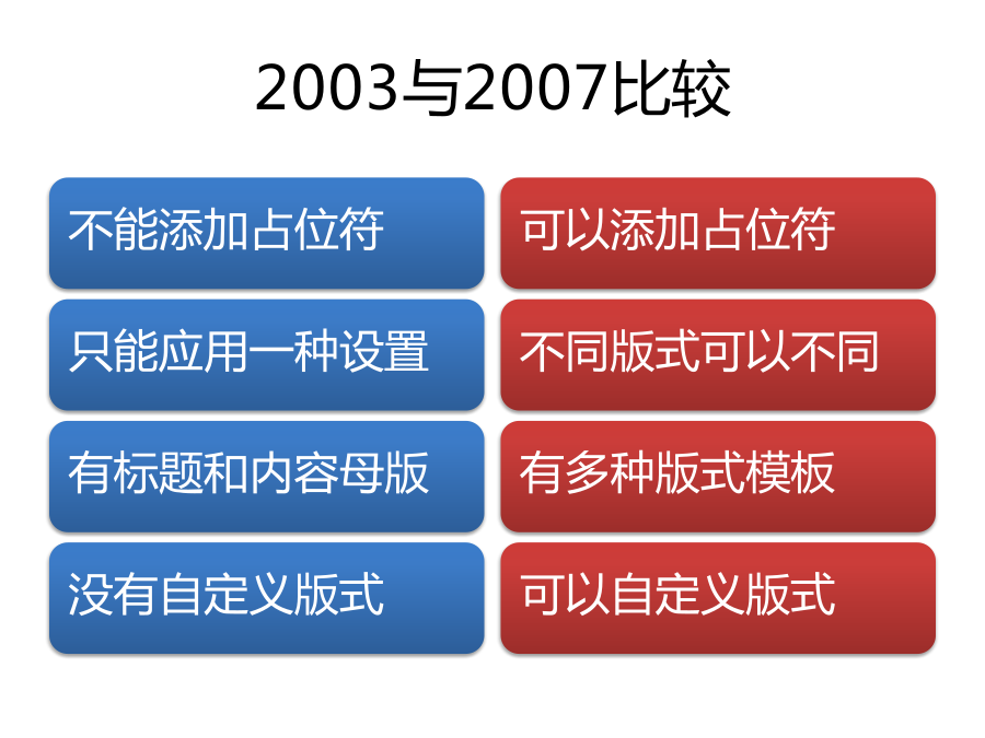 基础知识2母版和版式的作用母版视图52003与2007比较2003的版式2007的版式910显示网格与参考线增加一条参考线参考线的作用配色方案快速对齐格式刷练习一下:排版技巧基础知识哪些场合适合用PPT?哪些场合适合用PPT?哪些场合适合用PPT?哪些场合适合用PPT?PPT中的文字设计PPT中的文字设计如何通过文字排版突出重点2627282930PPT布局设计要求PPT布局设计内容练习一下:文字排版基础知识让PPT动起来一动不如一静适合动画的场合适合动画的场合本科教学工作水平评估适合动画的场合41换页切换动画43练习一下:动画制作基础知识哪些场合适合用PPT?4849不要超过三种色系光线与配色的关系5253前景和背景应用相似色555657常用文字颜色组合基础知识宽屏冲击力6162照片加框,统一风格图片配字,简单明了虚化部分图片和底色背景完美融合虚化部分图片和底色背景完美融合6768文字背景加色块70图片中本身有文字利用图片的部分做文字背景画中画的感觉747576777879在照片上要突出的位置加框和文字好创意+PS练习一下:图文混排照片在插入前先转换为小存储量的图片如存在多张图片,请尽量保持大小和外形的平衡如图片色彩差距太大,可以给图片加上一个外框图片拉伸时请按住SHIFT防止比例变形务必使用清晰的高质量图片84QQ快捷键:crtl+alt+A8687练习一下:图片处理89909192案例:剪贴画妙用立项建设规划以学校“十一五”事业发展规划为基础,根据现实学科发展情况进行了充实与调整,经过反复论证,并送省内外专家审议修改。95插图的选择插图作为装饰插图作为视觉比喻图片自制插图矢量图和位图