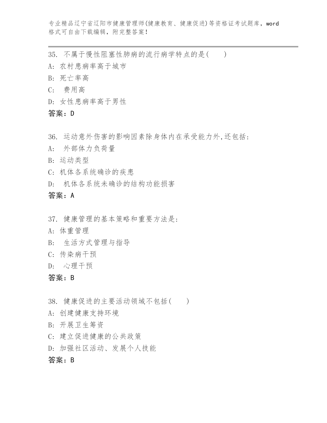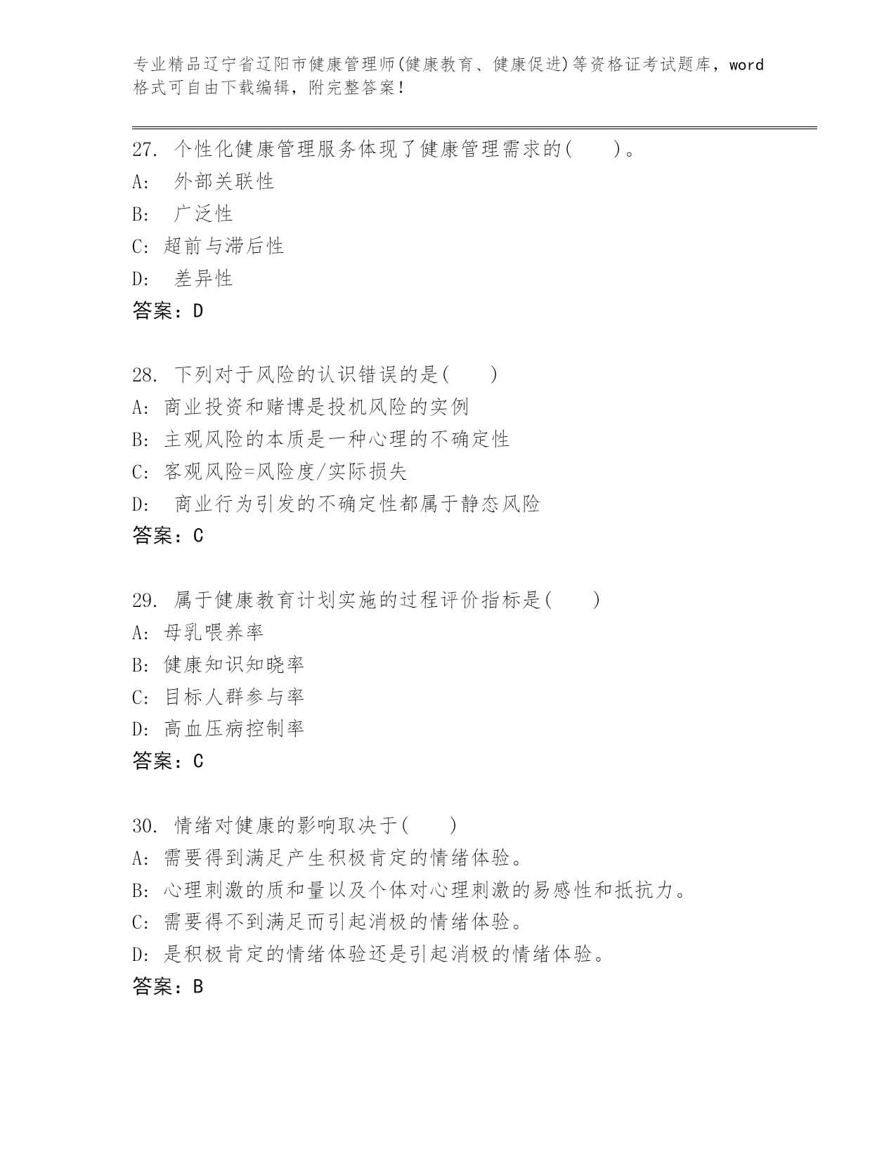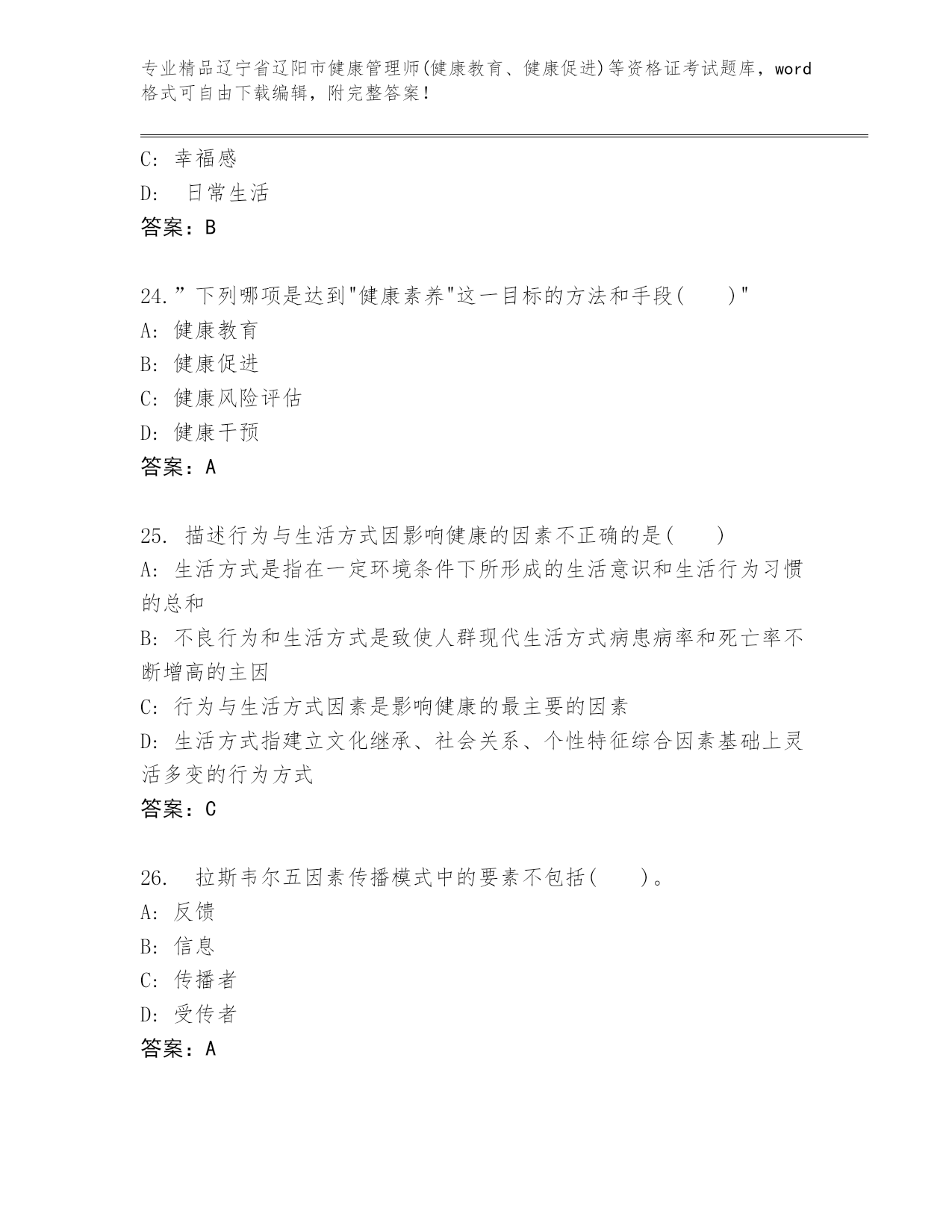2024年辽宁省辽阳市健康管理师(健康教育、健康促进)等资格证考试通用题库【轻巧夺冠】
