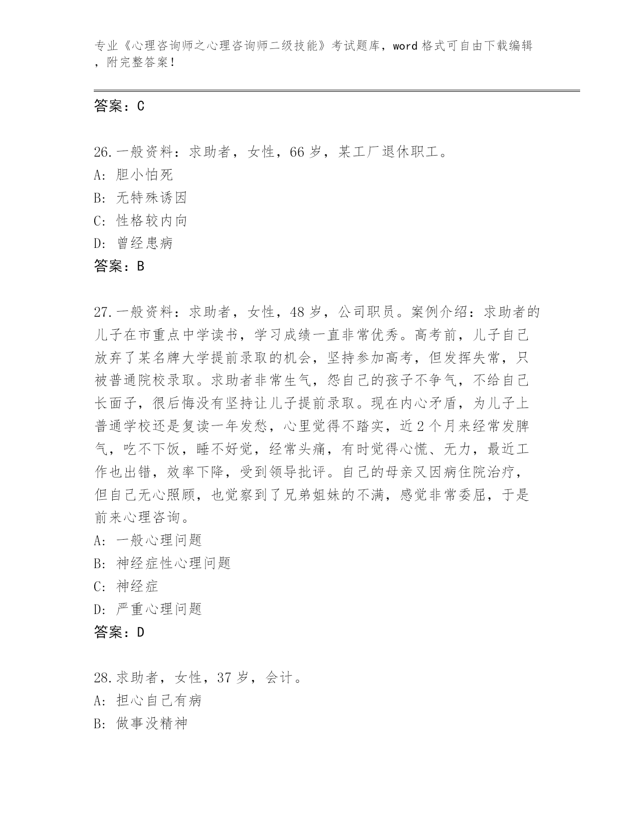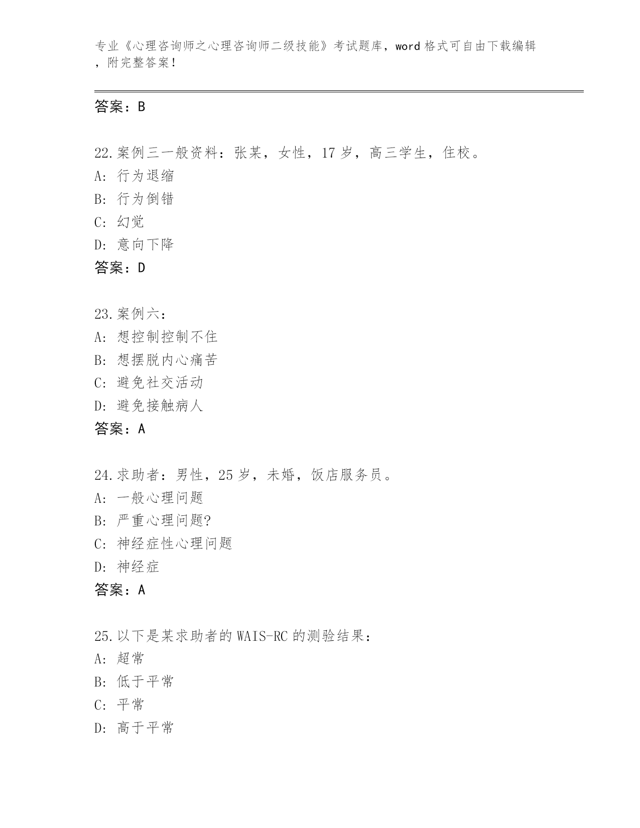 2023-24年福建省《心理咨询师之心理咨询师二级技能》考试含答案(黄金题型)