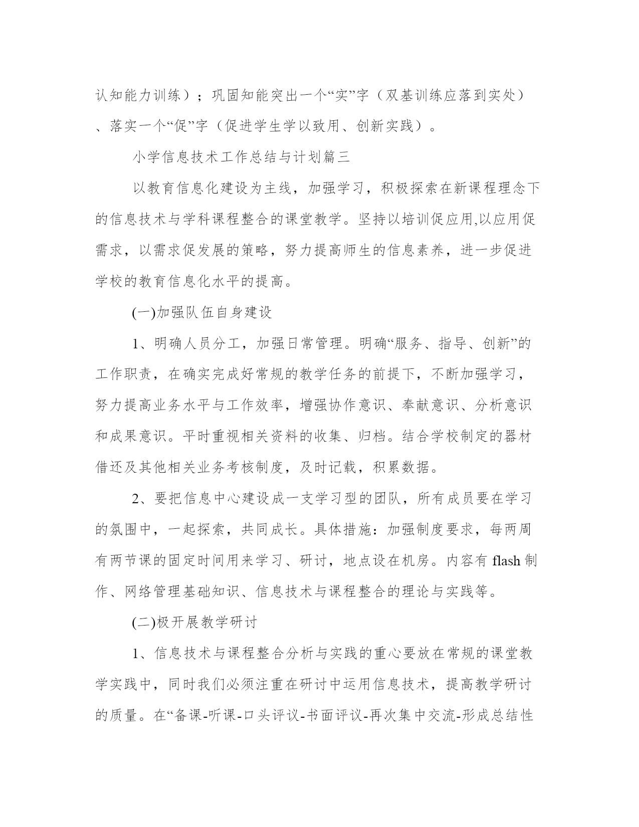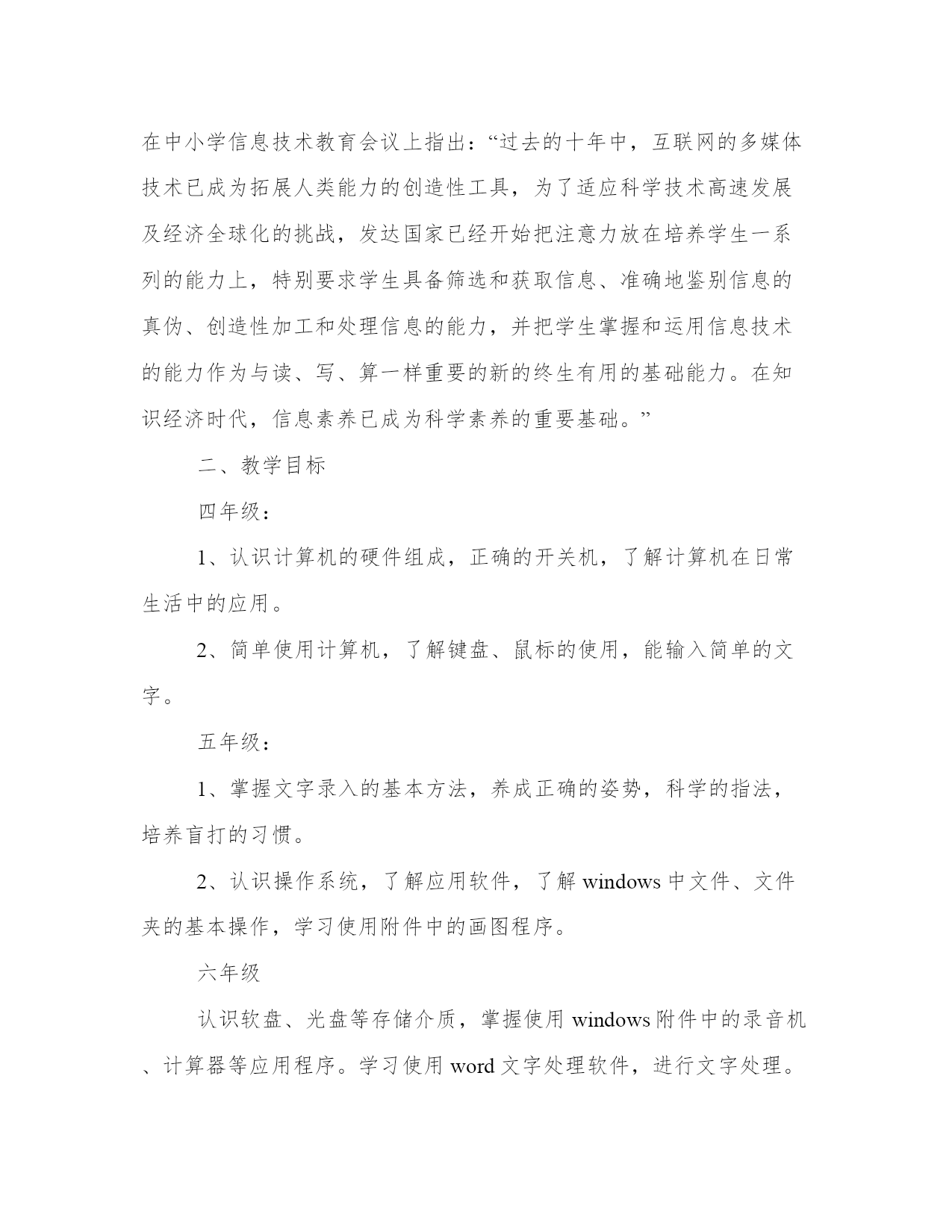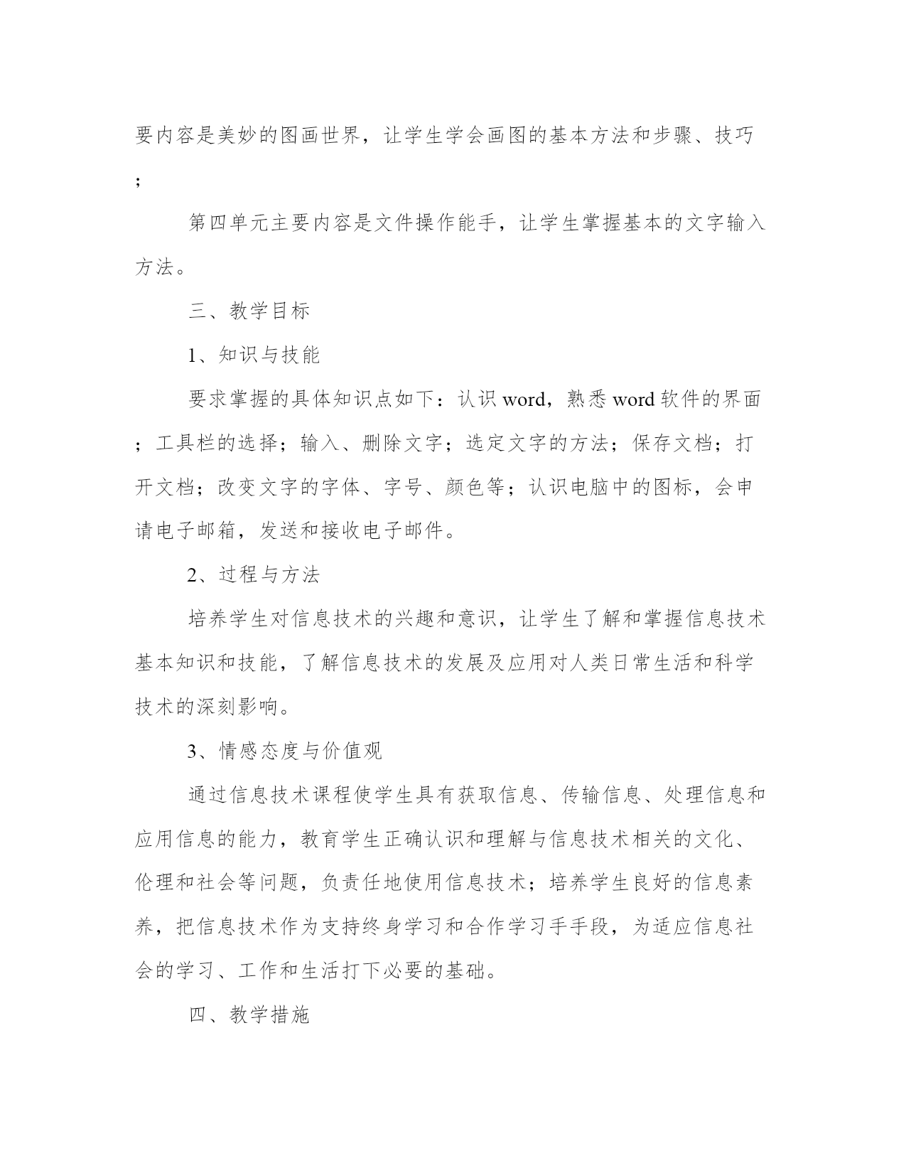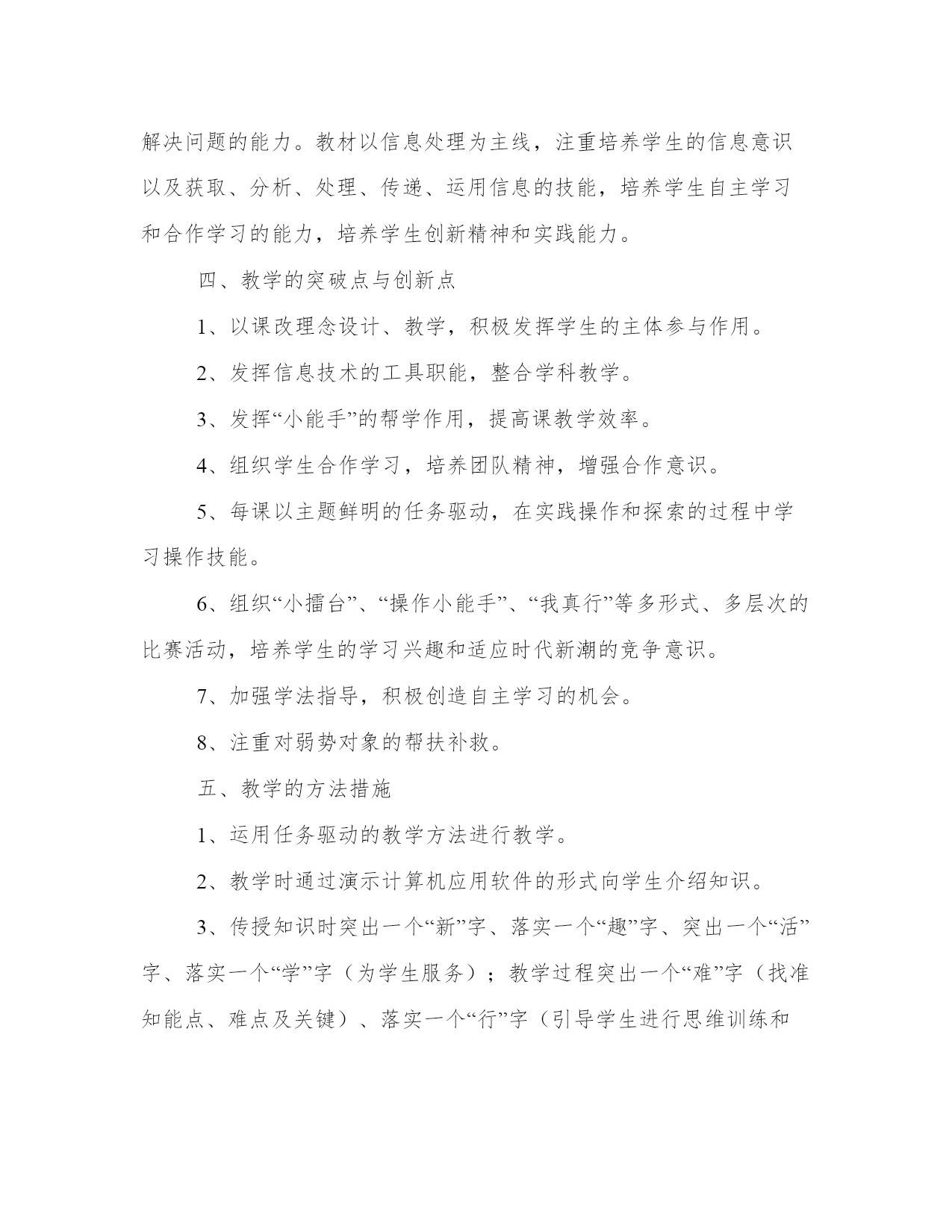 小学信息技术工作总结与计划(5篇)时间流逝得如此之快,前方等待着我们的是新的机遇和挑战,是时候开始写计划了。计划书写有哪些要求呢?我们怎样才能写好一篇计划呢?下面是小编带来的优秀计划范文,希望大家能够喜欢!小学信息技术工作总结与计划篇一本学期五年级共三个班级,学生对学习计算机有了一定的基础,但是也有一部分学生基本知识与技能的也没有掌握,大部分学生都喜好计算机,少部分学生正确使用计算机的习惯还没形成,考虑到五年级学生本学期的上课特点,所以,本学期将继续激发学生学习计算机的兴趣外,着重继续巩固和加深对word的学习,让学生能尽量熟悉和使用word,提高学生对计算机的应用能力,努力让每个学生都能学到知识,提高计算机的应用能力,为下阶段的计算机学习打下较扎实的基础。二、教材分析本学期采用的是福建教育出版社出版的新版教材五年级上册,它包括以下几方面内容:总共四个单元,第一单元主要内容是交个新朋友,共4课,通过了解电脑及windows20xx,完成一些与学生学习生活相关联的任务,进而掌握完成这些任务所需要的操作技能;第二单元主要内容是学用键盘,共4课,在这一单元中,要让学生学习对键盘的灵活运用,学会输入文字;第三单元主要内容是美妙的图画世界,让学生学会画图的基本方法和步骤、技巧;第四单元主要内容是文件操作能手,让学生掌握基本的文字输入方法。三、教学目标1、知识与技能要求掌握的具体知识点如下:认识word,熟悉word软件的界面;工具栏的选择;输入、删除文字;选定文字的方法;保存文档;打开文档;改变文字的字体、字号、颜色等;认识电脑中的图标,会申请电子邮箱,发送和接收电子邮件。2、过程与方法培养学生对信息技术的兴趣和意识,让学生了解和掌握信息技术基本知识和技能,了解信息技术的发展及应用对人类日常生活和科学技术的深刻影响。3、情感态度与价值观通过信息技术课程使学生具有获取信息、传输信息、处理信息和应用信息的能力,教育学生正确认识和理解与信息技术相关的文化、伦理和社会等问题,负责任地使用信息技术;培养学生良好的信息素养,把信息技术作为支持终身学习和合作学习手手段,为适应信息社会的学习、工作和生活打下必要的基础。四、教学措施教学中以教学大纲为纲,从教材和学生实际出发,在开学初制订出切实可行的教学计划。认真落实“五认真”具体措施:(1)认真备课:力争集体备课,明确教学重点、难点关键,探索、分析疑难问题及有关微机实践。分析学生情况,统一教学要求,尽力做到超前1—2周,做到每课必备,写好教案。领会大纲精神,钻研教材内容,从学生实际出发。(2)认真上课:以启发式教学为原则,以操作训练来强化概念,形成技能、技巧,体现以学生为主体,教师为主导的教学思想,精讲多练,前后连接,板书规范清楚,教态亲切、自然,采用多种切合学生实际的教学方法和手段,调动学生的学习积极性,注重学生能力培养,及时总结,做好教学后记。(3)认真布置作业:要求学生每节新课前做好预复习工作,以利于巩固教学重点和克服薄弱环节,有利于强化信息技术术语、信息技术基础知识、基本技能的训练。小学信息技术工作总结与计划篇二一、指导思想:人类社会已经进入21世纪,以计算机和网络为基础的信息技术已广泛应用于人类社会的各个领域,信息技术的掌握与应用程度已成为一个国家综合国力的象征之一。学会信息的收集、存储、分析、处理、发布和应用是新世纪对第个公民的基本要求。原教育部长陈至立在中小学信息技术教育会议上指出:“过去的十年中,互联网的多媒体技术已成为拓展人类能力的创造性工具,为了适应科学技术高速发展及经济全球化的挑战,发达国家已经开始把注意力放在培养学生一系列的能力上,特别要求学生具备筛选和获取信息、准确地鉴别信息的真伪、创造性加工和处理信息的能力,并把学生掌握和运用信息技术的能力作为与读、写、算一样重要的新的终生有用的基础能力。在知识经济时代,信息素养已成为科学素养的重要基础。”二、教学目标四年级:1、认识计算机的硬件组成,正确的开关机,了解计算机在日常生活中的应用。2、简单使用计算机,了解键盘、鼠标的使用,能输入简单的文字。五年级:1、掌握文字录入的基本方法,养成正确的姿势,科学的指法,培养盲打的习惯。2、认识操作系统,了解应用软件,了解windows中文件、文件夹的基本操作,学习使用附件中的画图程序。六年级认识软盘、光盘等存储介质,掌握使用windows附件中的录音机、计算器等应用程序。学习使用word文字处理软件,进行文字处理。1、四、五年级学情:五、六年级学生已经上过一个学年的信息技术课,具有计算机的基本操作技能。这个年龄段的学生大都非常喜欢计算机,他们的强烈探索热情会使没有组织的课堂完全乱套。上个学期我采取的是课前在教室里上理论课的,交