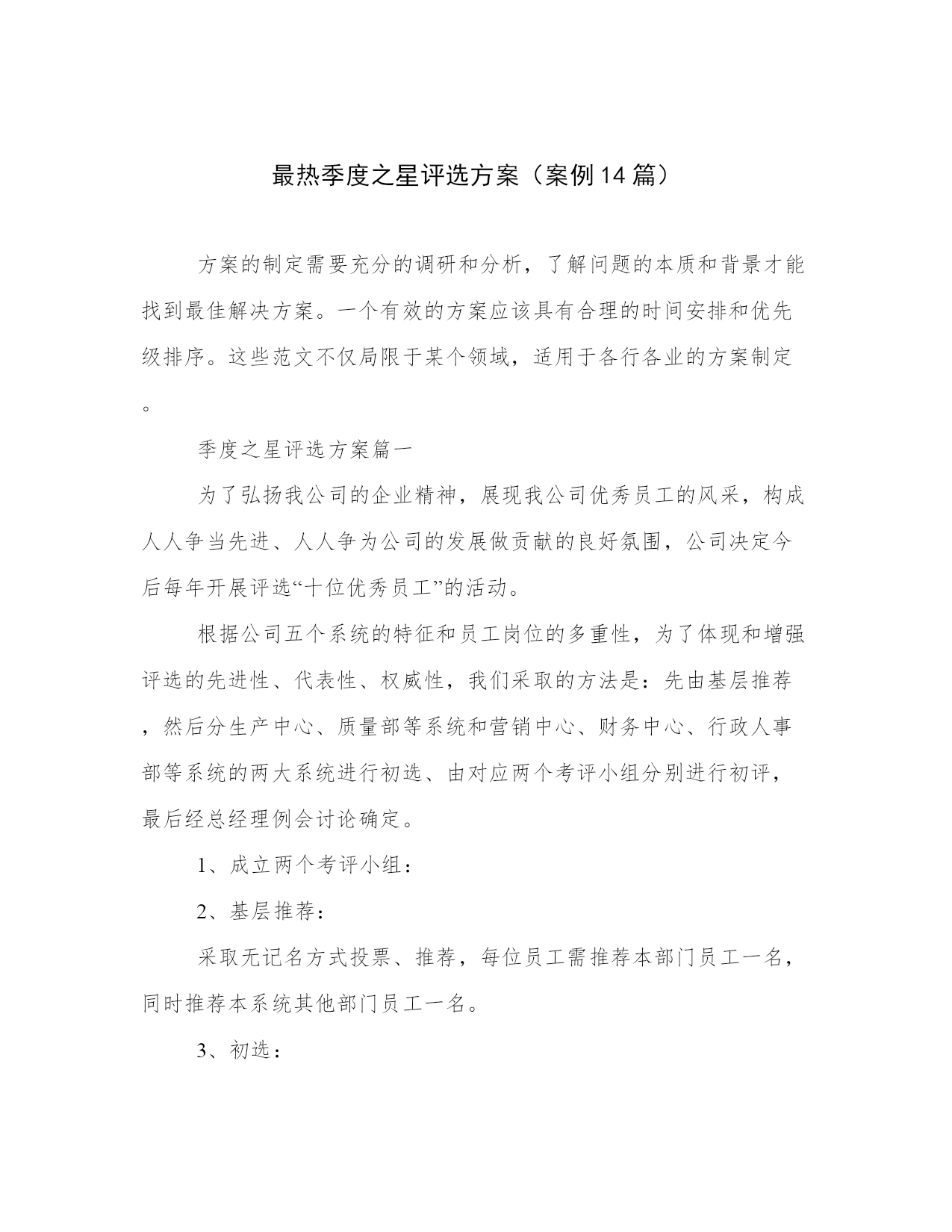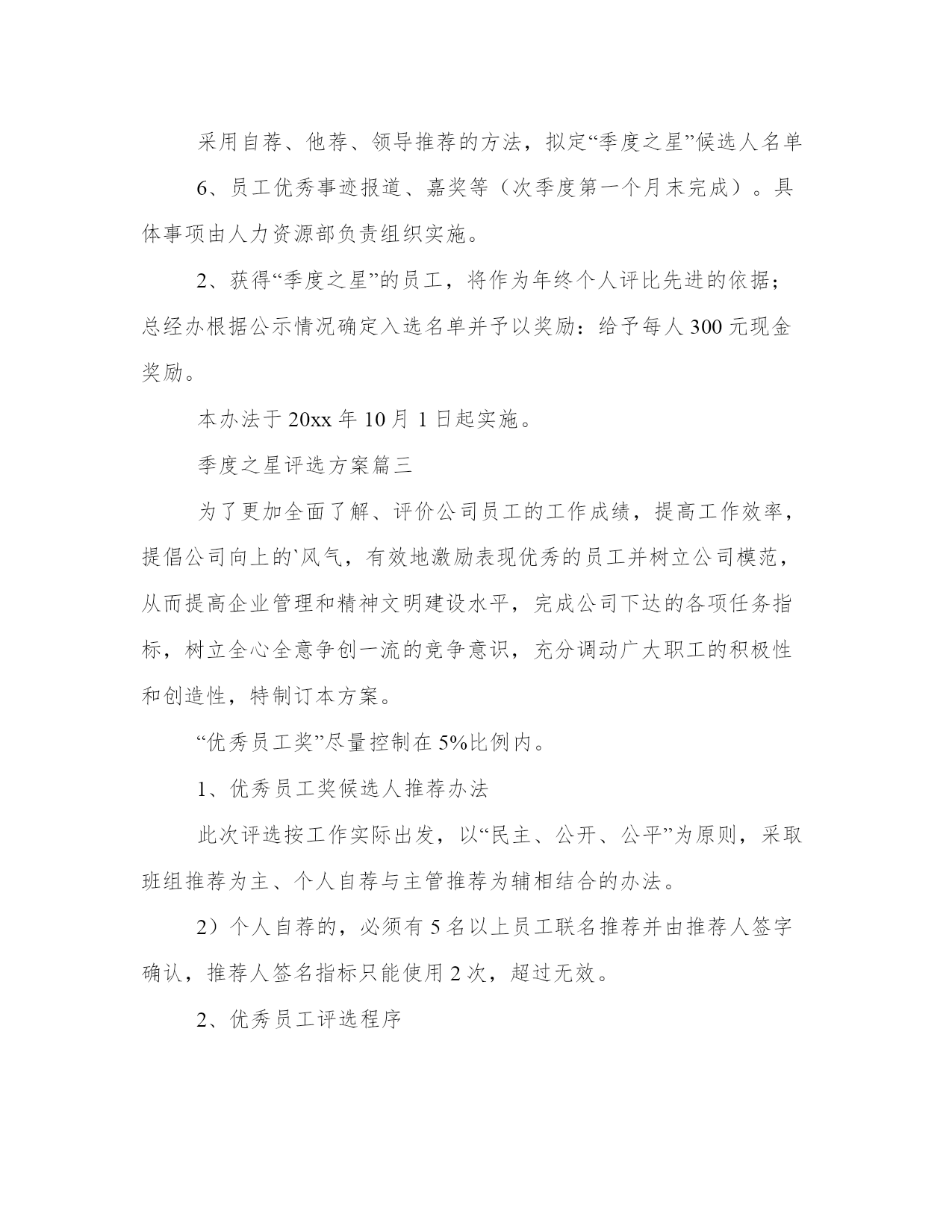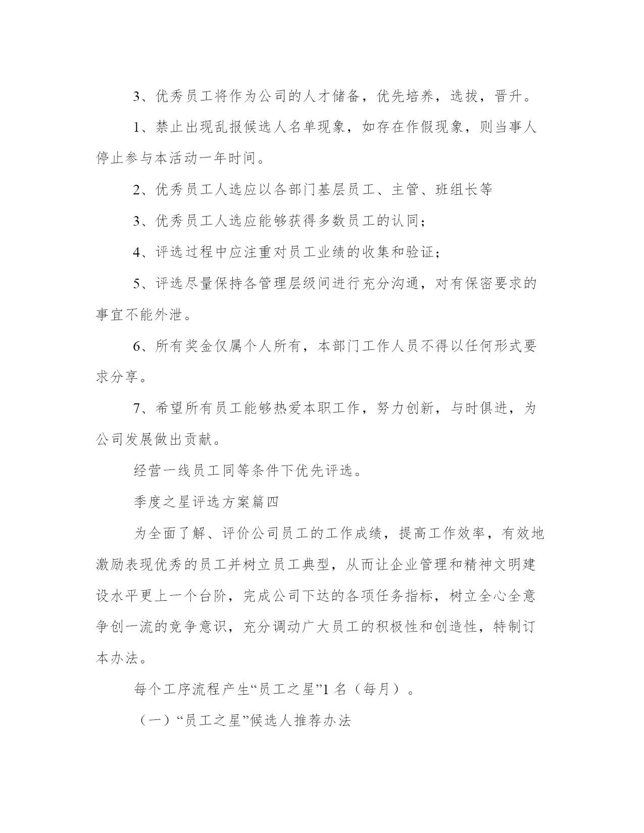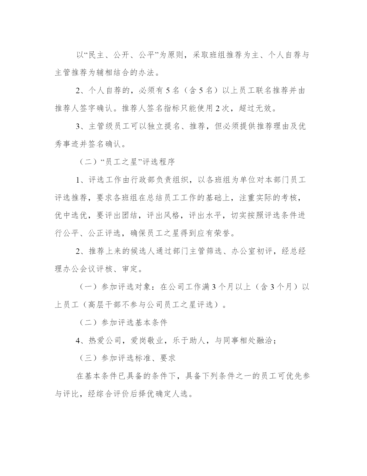 最热季度之星评选方案(案例14篇)方案的制定需要充分的调研和分析,了解问题的本质和背景才能找到最佳解决方案。一个有效的方案应该具有合理的时间安排和优先级排序。这些范文不仅局限于某个领域,适用于各行各业的方案制定。季度之星评选方案篇一为了弘扬我公司的企业精神,展现我公司优秀员工的风采,构成人人争当先进、人人争为公司的发展做贡献的良好氛围,公司决定今后每年开展评选“十位优秀员工”的活动。根据公司五个系统的特征和员工岗位的多重性,为了体现和增强评选的先进性、代表性、权威性,我们采取的方法是:先由基层推荐,然后分生产中心、质量部等系统和营销中心、财务中心、行政人事部等系统的两大系统进行初选、由对应两个考评小组分别进行初评,最后经总经理例会讨论确定。1、成立两个考评小组:2、基层推荐:采取无记名方式投票、推荐,每位员工需推荐本部门员工一名,同时推荐本系统其他部门员工一名。3、初选:各小组根据各系统的投票状况,依据得票数量多少的顺序,分别初选生产中心、质量部系统等的7人,营销中心、财务中心、行政人事部系统的3人。4、综合考评;根据考评的因素或指标,由两个考评小组对初选的员工进行综合考评,依据考评分数的高低,在生产中心、质量部系统中评比出4人,在营销中心、财务中心、行政人事部系统评出2人。5、总评:依据两个小组考评的结果,在总经理例会上讨论,最后确定20xx年度8——12月份的五位优秀员工。1、思想品德、敬业精神、对企业的忠诚度、对岗位的热爱程度;3、受员工尊敬或信赖的程度;与员工的沟通潜力、团结同志的效果;4、关心员工、互帮互助的热情和效果。对于被评选为年度优秀员工的同志将给以通报表彰,同时颁发证书和800元的奖金。20xx年优秀员工的推荐、考评、表彰的时光为:xxxx年x月x日——xxxx年x月x日。季度之星评选方案篇二为加强公司企业文化建设,不断增强企业向心力和凝聚力,提高工作效率,有效地激励工作业绩突出、综合表现优秀的员工,公司将开展“季度之星”评选活动,具体方案如下:1、坚持全员参与,层层推动的原则;2、宁缺毋滥,树立典范的榜样作用,激励优秀员工;3、坚持公开、公平、公正的原则。季度之星每季度评选一次。每年1-3月为第一个季度,4-6月为第二个季度,7-9月为第三个季度,10-12为第四个季度。次季度的第一个月月末公布评选结果。注:年度评优原则上为每年的2、3月份,与季度之星不相冲突。凡入职满三个月的员工,均可参与评选。对符合评比要求者,均可列为优秀员工。。(一)工作态度遵守公司各项规章制度,起先锋模范作用;工作执行力强,效率高,有较强责任心;热爱本职工作,积极、主动,能及时发现问题、提出建议;服务意识强,主动为客户排忧解难,受到客户口头或书面表扬。(二)工作能力(三)团队协作精神(四)企业认可度努力维护企业形象、维护公司利益;遵守公司各类制度;采用自荐、他荐、领导推荐的方法,拟定“季度之星”候选人名单6、员工优秀事迹报道、嘉奖等(次季度第一个月末完成)。具体事项由人力资源部负责组织实施。2、获得“季度之星”的员工,将作为年终个人评比先进的依据;总经办根据公示情况确定入选名单并予以奖励:给予每人300元现金奖励。本办法于20xx年10月1日起实施。季度之星评选方案篇三为了更加全面了解、评价公司员工的工作成绩,提高工作效率,提倡公司向上的`风气,有效地激励表现优秀的员工并树立公司模范,从而提高企业管理和精神文明建设水平,完成公司下达的各项任务指标,树立全心全意争创一流的竞争意识,充分调动广大职工的积极性和创造性,特制订本方案。“优秀员工奖”尽量控制在5%比例内。1、优秀员工奖候选人推荐办法此次评选按工作实际出发,以“民主、公开、公平”为原则,采取班组推荐为主、个人自荐与主管推荐为辅相结合的办法。2)个人自荐的,必须有5名以上员工联名推荐并由推荐人签字确认,推荐人签名指标只能使用2次,超过无效。2、优秀员工评选程序评选工作由办公室负责牵头组织,以各部门为单位对本部门员工评选推荐,要求各部门在总结员工工作的基础上,注重实际的考核,优中选优,切实按照评选条件进行公平、公正评选,确保优秀员工得到应有荣誉。推荐上来的`候选人通过部门负责人筛选填写优秀员工推荐表上报总经理办公室进行汇总;经公司司务会议讨论确定获奖名单。参加评选对象:需在公司任职时间一年以上的员工(高层干部及部门负责人不参与公司优秀员工评选)参加评选基本条件,具备以下全部条件者可参与公司优秀员工评选:1、遵纪守法,遵守公司各项规章制度,无旷工、迟到、早退现象,无违法乱纪行为,评选期内,无因违反纪律而受到公司处罚或通报批评。2、遵守考勤纪律,连续2个月满勤,请假总天数少于15天,其中病