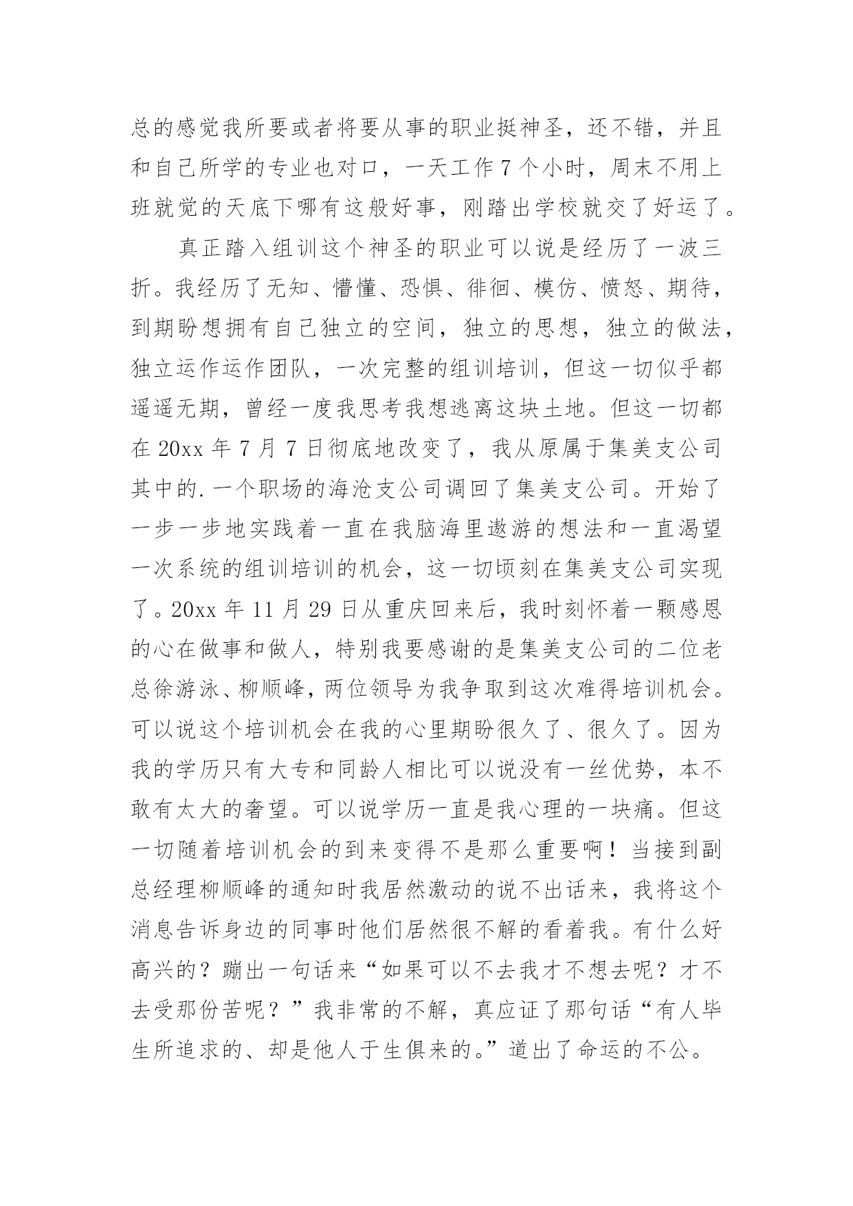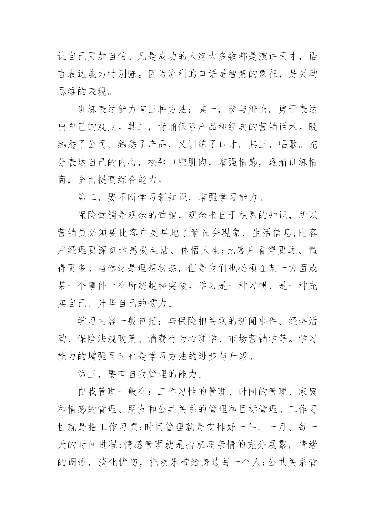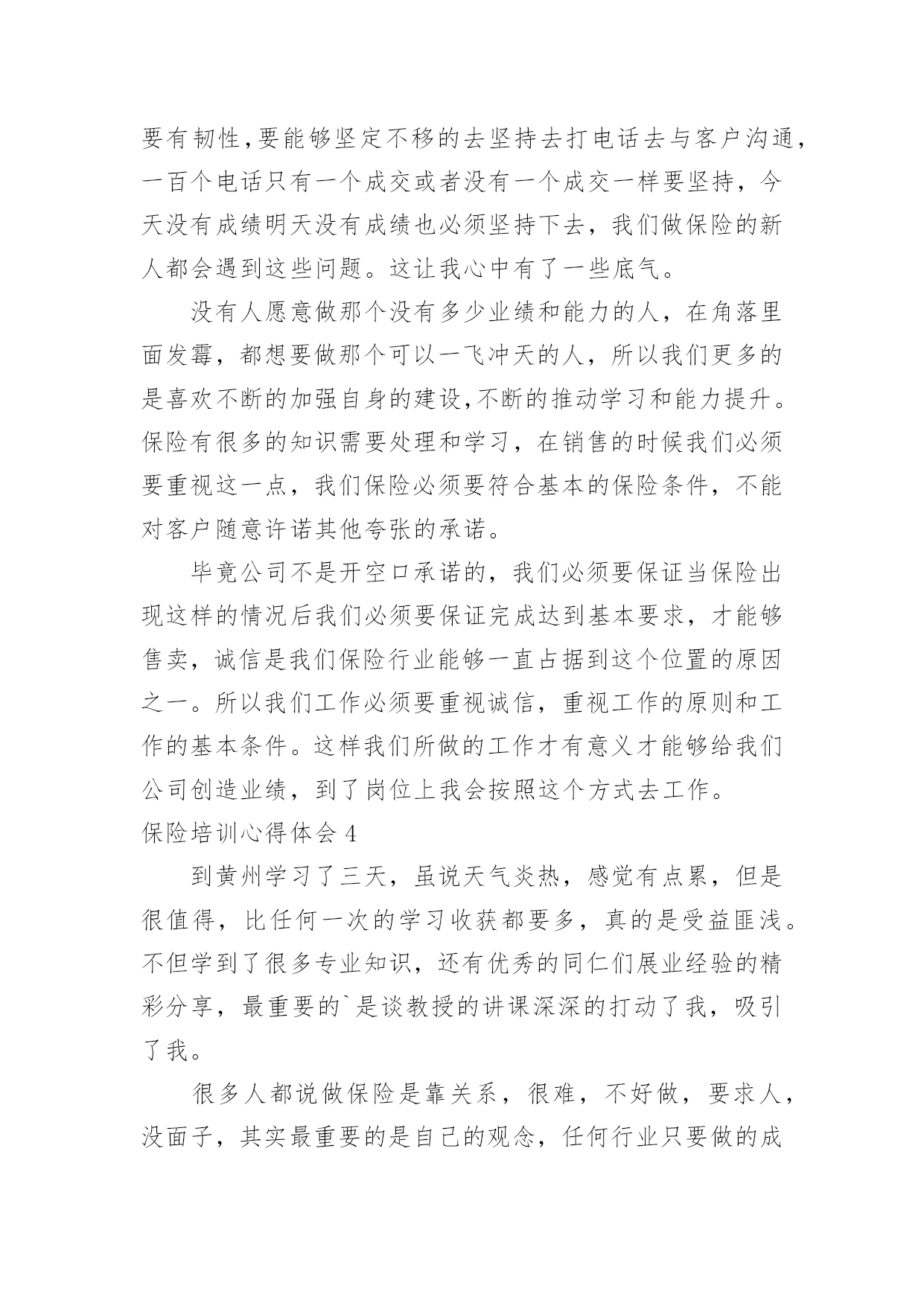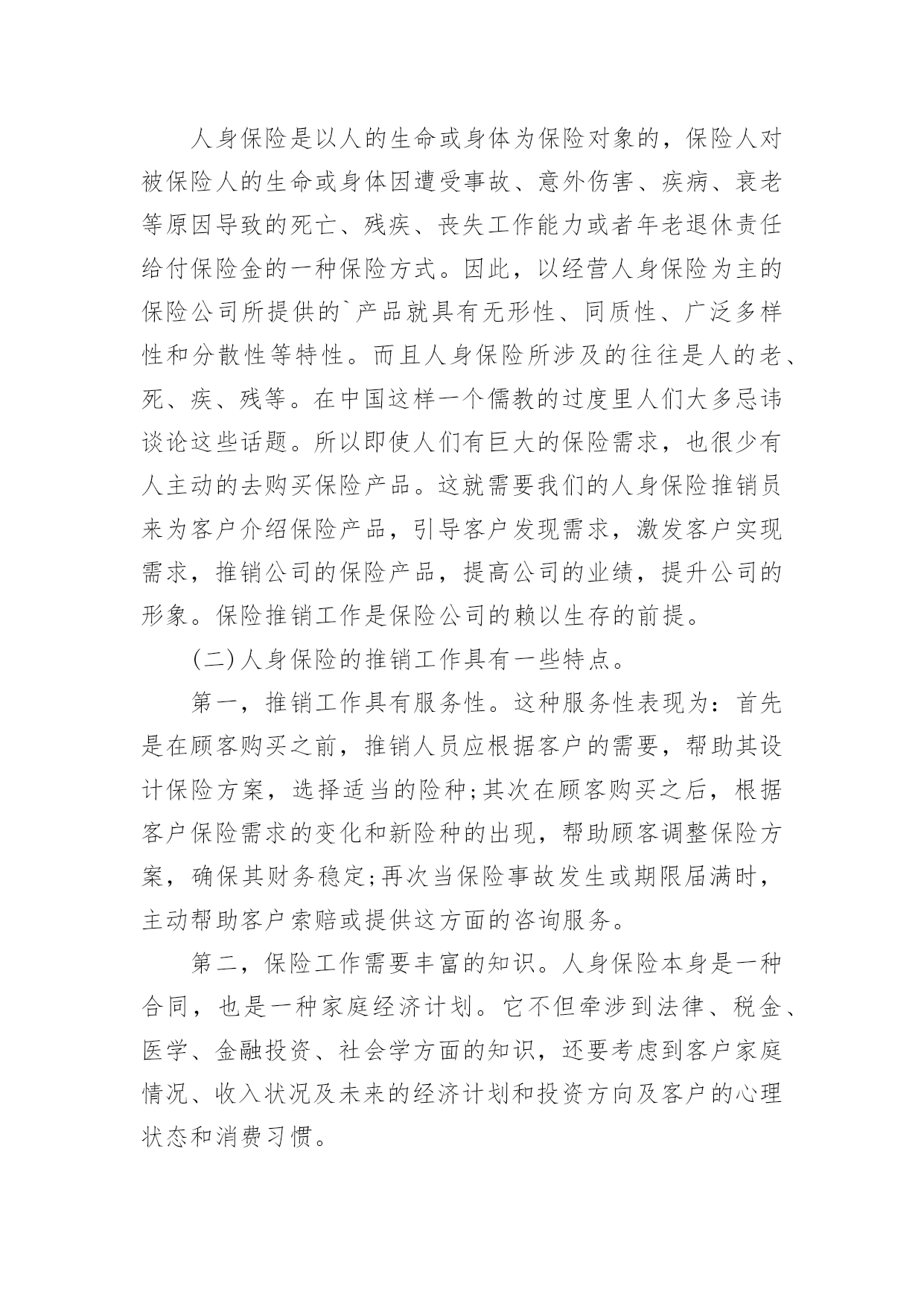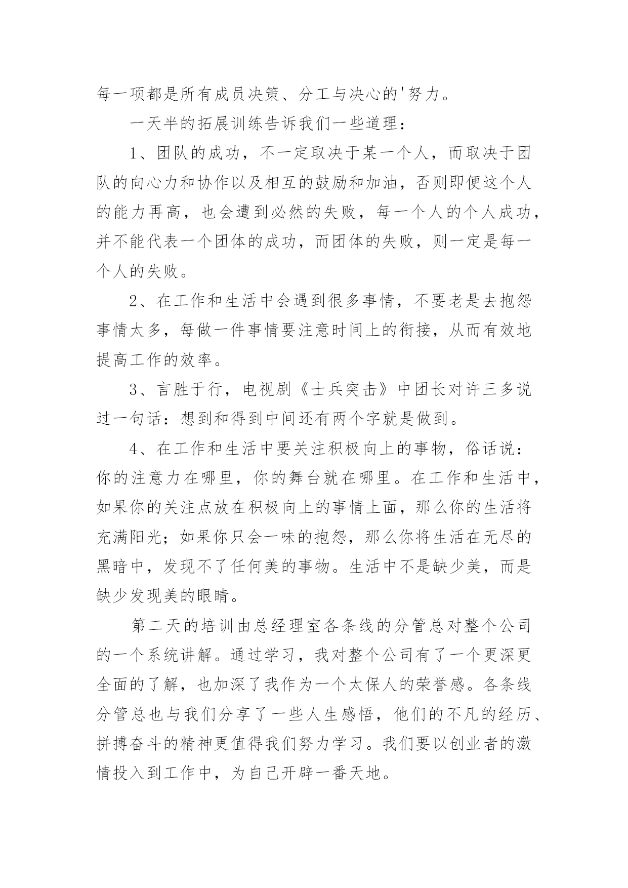 保险培训心得体会保险培训心得体会(经典15篇)我们从一些事情上得到感悟后,写心得体会是一个不错的选择,从而不断地丰富我们的思想。那么心得体会到底应该怎么写呢?下面是小编为大家收集的保险培训心得体会,欢迎阅读与收藏。保险培训心得体会1xxxx年x月—xxxx年x月,我在中国人寿保险公司青岛分公司进行了为期两个月的培训。中国人寿保险股份有限公司是中国大陆最大的专业化商业人寿保险公司,是中国内地第一家在美、港两地同时上市的金融企业,xx03年被《欧洲货币》评为“亚洲最好的保险公司”,xx03年度世界500强企业评选中,中国人寿保险股份有限公司再次入选世界500强,排名也大幅度上升。中国人寿连续8年在保费收入、资产总额、客户规模和市场占有率上排名业界第一。中国人寿拥有长期忠实客户1.6亿人,短期保单客户1.5亿人,为6亿多人提供了人身保险。我培训的部门是该公司的培训部,培训部的职责是对本公司的保险推销人员(即外勤人员或业务员)进行系统的、专业的培训,帮助他们掌握推销的方法,提高他们的推销技巧,从而提升公司的业绩。(一)推销工作的重要性及其特点人身保险是以人的生命或身体为保险对象的,保险人对被保险人的生命或身体因遭受事故、意外伤害、疾病、衰老等原因导致的死亡、残疾、丧失工作能力或者年老退休责任给付保险金的一种保险方式。因此,以经营人身保险为主的保险公司所提供的`产品就具有无形性、同质性、广泛多样性和分散性等特性。而且人身保险所涉及的往往是人的老、死、疾、残等。在中国这样一个儒教的过度里人们大多忌讳谈论这些话题。所以即使人们有巨大的保险需求,也很少有人主动的去购买保险产品。这就需要我们的人身保险推销员来为客户介绍保险产品,引导客户发现需求,激发客户实现需求,推销公司的保险产品,提高公司的业绩,提升公司的形象。保险推销工作是保险公司的赖以生存的前提。(二)人身保险的推销工作具有一些特点。第一,推销工作具有服务性。这种服务性表现为:首先是在顾客购买之前,推销人员应根据客户的需要,帮助其设计保险方案,选择适当的险种;其次在顾客购买之后,根据客户保险需求的变化和新险种的出现,帮助顾客调整保险方案,确保其财务稳定;再次当保险事故发生或期限届满时,主动帮助客户索赔或提供这方面的咨询服务。第二,保险工作需要丰富的知识。人身保险本身是一种合同,也是一种家庭经济计划。它不但牵涉到法律、税金、医学、金融投资、社会学方面的知识,还要考虑到客户家庭情况、收入状况及未来的经济计划和投资方向及客户的心理状态和消费习惯。第三,推销工作意义重大。人身保险是帮助他人追求幸福人生的保证。推销员在推销工作中处处为客户着想,提供给客户优质的保单,使客户在遭遇不幸时及时得到经济帮助,渡过难关,自然会受到人们的尊敬。第四,推销工作灵活自由。人身保险推销工作可以由保险员根据自己的情况选择工作时间、对象及地点,按照个人的计划自由调整安排。第五,推销工作还有独特的工作程序和工作要领。所以,任何一家人寿保险公司都相当重视保险推销人员的培训与开发。保险培训心得体会2时间急转流逝,从我成为中国太平洋人寿保险公司大家族的一员到现在已经6个月了,作为一名四级机构的综合内勤,自己对一些专业性的知识和技能了解还不是很透彻,所以工作中遇到了不少问题。20xx年xx月xx日我有幸参加了太平洋人寿保险股份有限公司山西分公司“启航五期“后援条线内勤培训班的学习。通过四天的培训,我对太平洋人寿有了更进一步的了解,对自己的岗位职责也有了更清晰的认识。培训的第一天我们很有幸参加到人众人的素质拓展训练,虽然身体力行都感到疲惫,但却充满收获的喜悦,“团队、协作、沟通、勇气”,这些往常挂到嘴边的,今天都得到了实实在在体现。参加的每一个游戏,都是小组成员智慧的结晶,从极速60秒到鼓动人心,从七巧板到惊险倒计时,每一项都是所有成员决策、分工与决心的'努力。一天半的拓展训练告诉我们一些道理:1、团队的成功,不一定取决于某一个人,而取决于团队的向心力和协作以及相互的鼓励和加油,否则即便这个人的能力再高,也会遭到必然的失败,每一个人的个人成功,并不能代表一个团体的成功,而团体的失败,则一定是每一个人的失败。2、在工作和生活中会遇到很多事情,不要老是去抱怨事情太多,每做一件事情要注意时间上的衔接,从而有效地提高工作的效率。3、言胜于行,电视剧《士兵突击》中团长对许三多说过一句话:想到和得到中间还有两个字就是做到。4、在工作和生活中要关注积极向上的事物,俗话说:你的注意力在哪里,你的舞台就在哪里。在工作和生活中,如果你的关注点放在积极向上的事情上面,那么你的生活将充满阳光;如果你只会一味的抱怨,那么你将生活在无尽的黑暗中,发现不了任何美的事物。生活中不是缺少美,而是缺少发现美的眼睛。第二天的培训由总经理室各条线的分管总对整个公司的