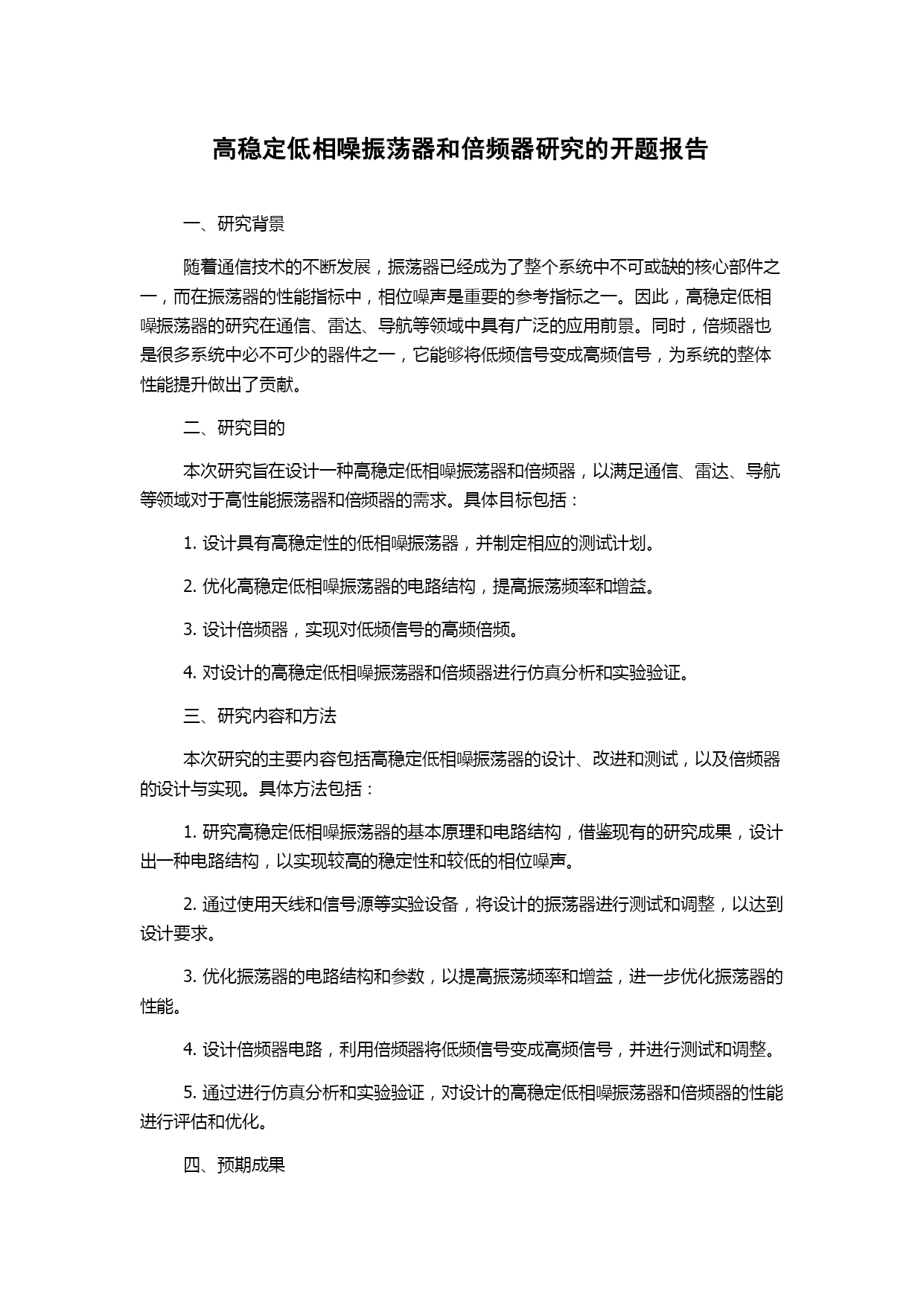 高稳定低相噪振荡器和倍频器研究的开题报告.docx