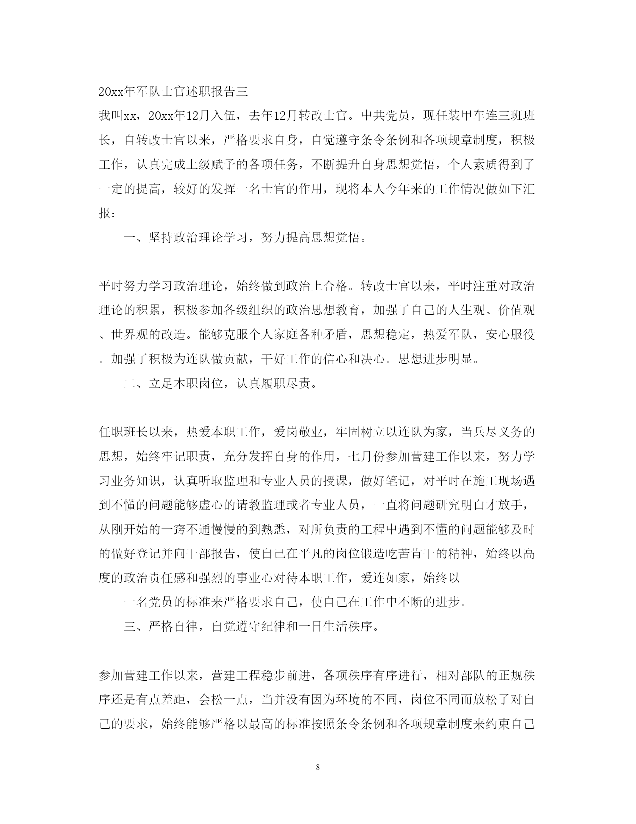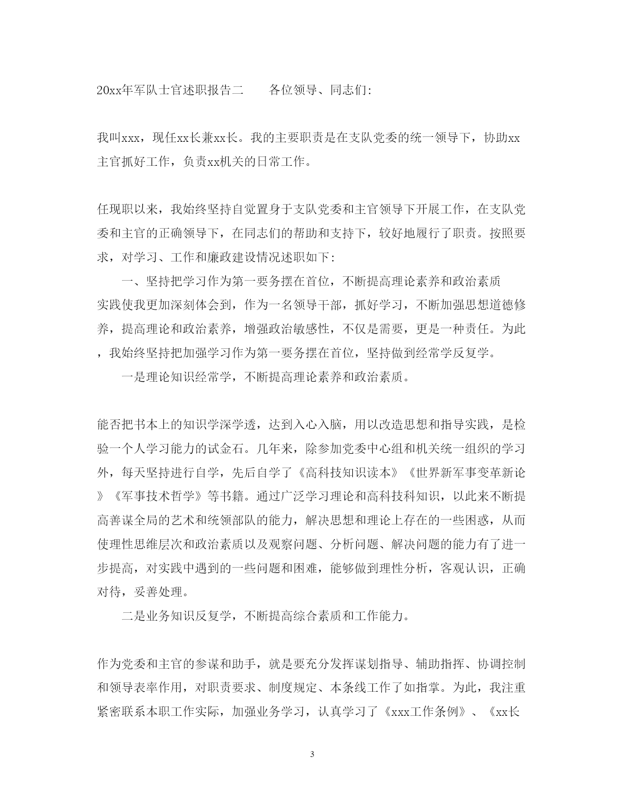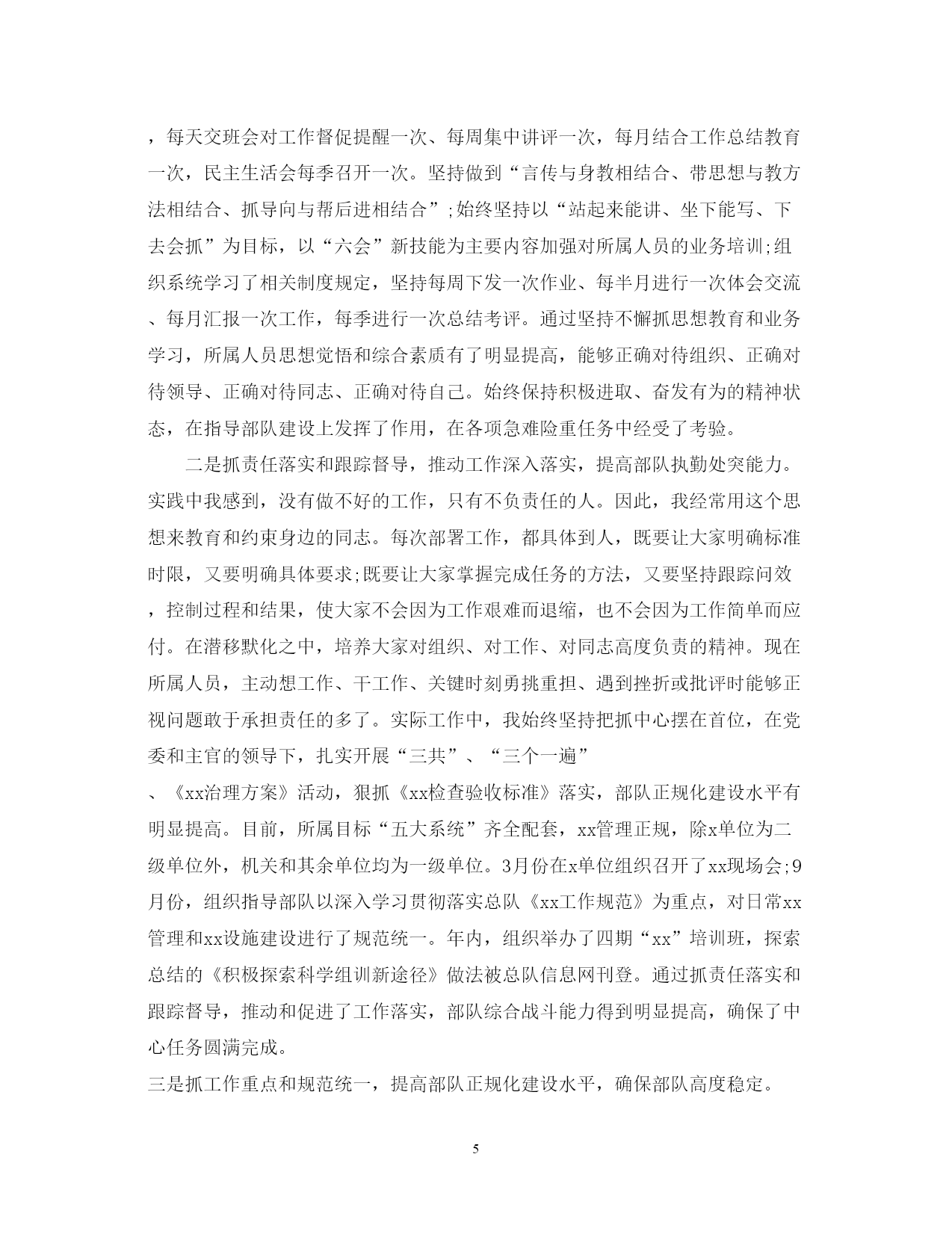 此资料由网络收集而来,如有侵权请告知上传者立即删除。资料共分享,我们负责传递知识。PAGEPAGE92020年军队士官述职报告述职报告,是领导干部回顾总结任职期间工作的自我评鉴,是近年来考核评议领导干部的一项重要程序,是对领导干部实行自我教育、民主监督的有效形式。作为部队士官,为本年度的工作做一个述职报告,本文是部队士官的述职报告范文,仅供参考。20xx年军队士官述职报告一本人ccc,20xx年12月入伍,20xx年12月改选士官,中共党员,现任xx中队后勤班班长。工作一年多以来,在组织和领导的关怀与支持下,紧紧围绕着党的“三个代表”重要思想,本着“为人民服务”的宗旨,立足“建一流中队”的标准,扎扎实实地完成了本职工作和上级赋予的其它各项任务。一.主要工作1、加强政治理论和业务知识学习,提高工作质量与效率。理论指导实践不但是我党的优良学风,还是我党的工作作风.要想工作好必须先学习好。党始终代表先进文化的发展方向,作为新时期党和人民的军队,应该是高科技、先进知识武装的部队。努力学习必然成为每个军人的责任。因此,本人努力学习科技文化、业务知识,立足本职工作岗位,提高业务工作能力。力求在工作中精益求精,力求做到有高瞻远瞩的远大理想,又有务求实际的能力。2、严格要求,积极学习本职技术。在平时的工作中,严格要求、以身作则,为把中队的后勤工作做好,我利用课余时间,到中队图书室学习伙食技术,今年中队的兵大多都是北方的,为了适应他们的口味,我积极学习北方的菜式和味道,为中队建设做出自己的力量并发扬我军艰苦奋斗、吃苦耐劳的优良传统,弘扬“流血流汗不流泪,掉皮掉肉不掉队”的精神。3、严格遵守部队的条令条例、规章制度。作为一名后勤班班长,我时刻保持良好的精神状态和严整的军容,模范遵守国家的法律法规,正确对待本职工作,努力学习条令条例中对后勤工作的要求,严格要求自己。4、塌实肯干,锐意进取,积极开展并完成本职工作。后勤班班长是中队后勤工作的直接实施者并积极配合中队司务长的工作,后勤工作关系到官兵的吃、穿、住、用等切身利益,既有标准、又有规定。因此,后勤工作来不得半点马虎。自工作以来,我热爱本职,服务官兵,廉洁奉公,乐于奉献;日常工作中吃苦耐劳,任劳任怨。工作中注意方法,坚持原则,按规章制度管理本班。工作一年多以来,细致落实各项工作,促进中队后勤建设的全面发展,完善自己以下方面的业务素质:(1)达到“两熟悉”。即熟悉中队后勤的有关标准制度;熟悉财经纪律。(2)达到“三会”。即会管理本班;会烹煮伙食;会组织全班学习本质技术。(3)达到“两抓好”。即抓好炊事班的建设,抓好人员思想、作风、纪律建设;抓好全班人员的专业技术训练,组织全班人员学习和应用科技知识,提高保障技能。二、主要存在不足1、请示报告制度没有很好的落实,不能及时主动的向中队汇报个人思想情况。2、进取心不强,取得一点成绩就沾沾自喜,没有持之以恒的耐心。三、今后工作努力方向以党的“”精神和“三个代表”重要思想为指导,巩固以往的成绩,加强科学文化知识的学习,努力提高自身素质,刻苦钻研专业技术知识,在今后的工作中力求有新的突破;端正思想,正确对待得失,实事求是,与时俱进地做好各项工作,争做有理想、有道德、有文化、有纪律的新世纪军人。20xx年军队士官述职报告二各位领导、同志们:我叫xxx,现任xx长兼xx长。我的主要职责是在支队党委的统一领导下,协助xx主官抓好工作,负责xx机关的日常工作。任现职以来,我始终坚持自觉置身于支队党委和主官领导下开展工作,在支队党委和主官的正确领导下,在同志们的帮助和支持下,较好地履行了职责。按照要求,对学习、工作和廉政建设情况述职如下:一、坚持把学习作为第一要务摆在首位,不断提高理论素养和政治素质实践使我更加深刻体会到,作为一名领导干部,抓好学习,不断加强思想道德修养,提高理论和政治素养,增强政治敏感性,不仅是需要,更是一种责任。为此,我始终坚持把加强学习作为第一要务摆在首位,坚持做到经常学反复学。一是理论知识经常学,不断提高理论素养和政治素质。能否把书本上的知识学深学透,达到入心入脑,用以改造思想和指导实践,是检验一个人学习能力的试金石。几年来,除参加党委中心组和机关统一组织的学习外,每天坚持进行自学,先后自学了《高科技知识读本》《世界新军事变革新论》《军事技术哲学》等书籍。通过广泛学习理论和高科技科知识,以此来不断提高善谋全局的艺术和统领部队的能力,解决思想和理论上存在的一些困惑,从而使理性思维层次和政治素质以及观察问题、分析问题、解决问题的能力有了进一步提高,对实践中遇到的一些问题和困难,能够做到理性分析,客观认识,正确对待,妥善处理。二是业务知识反复学,不断提高综合素质和工作能力。作为党委和主
