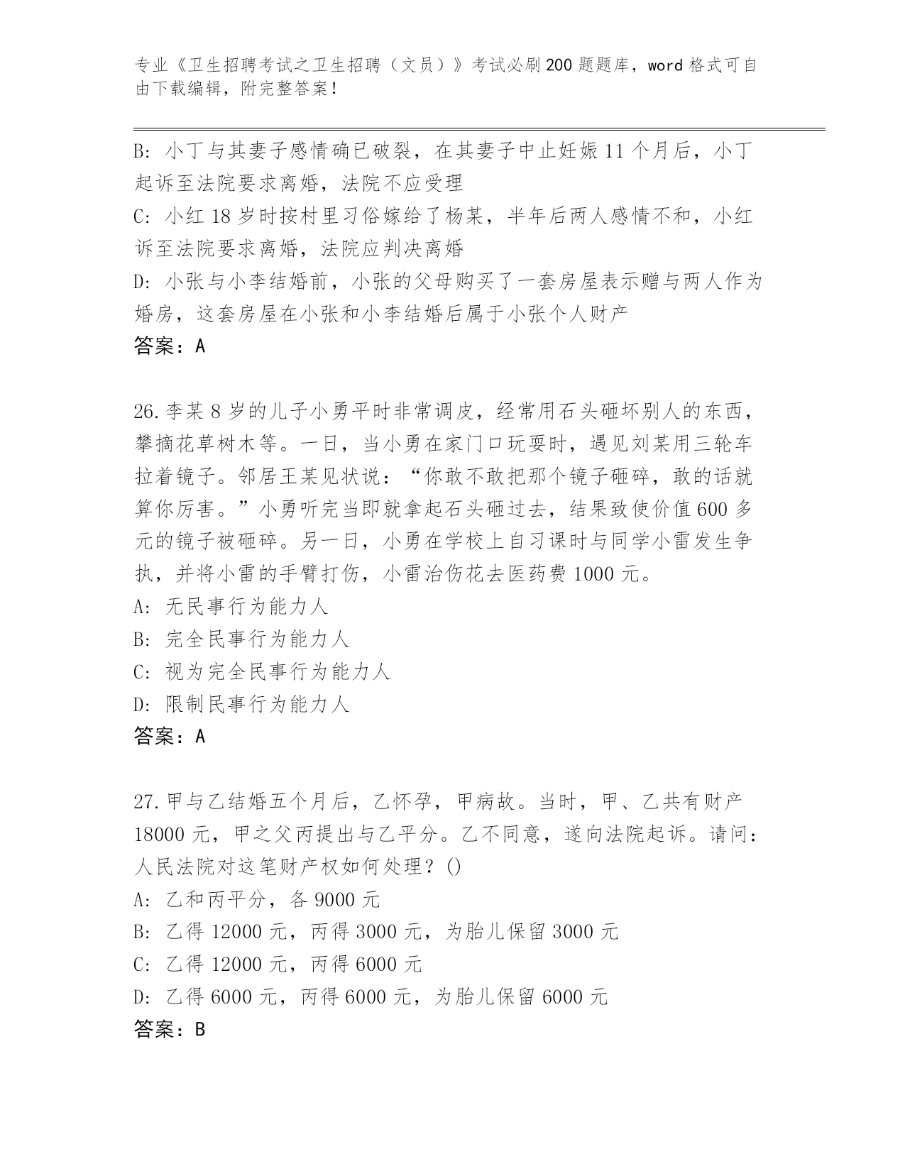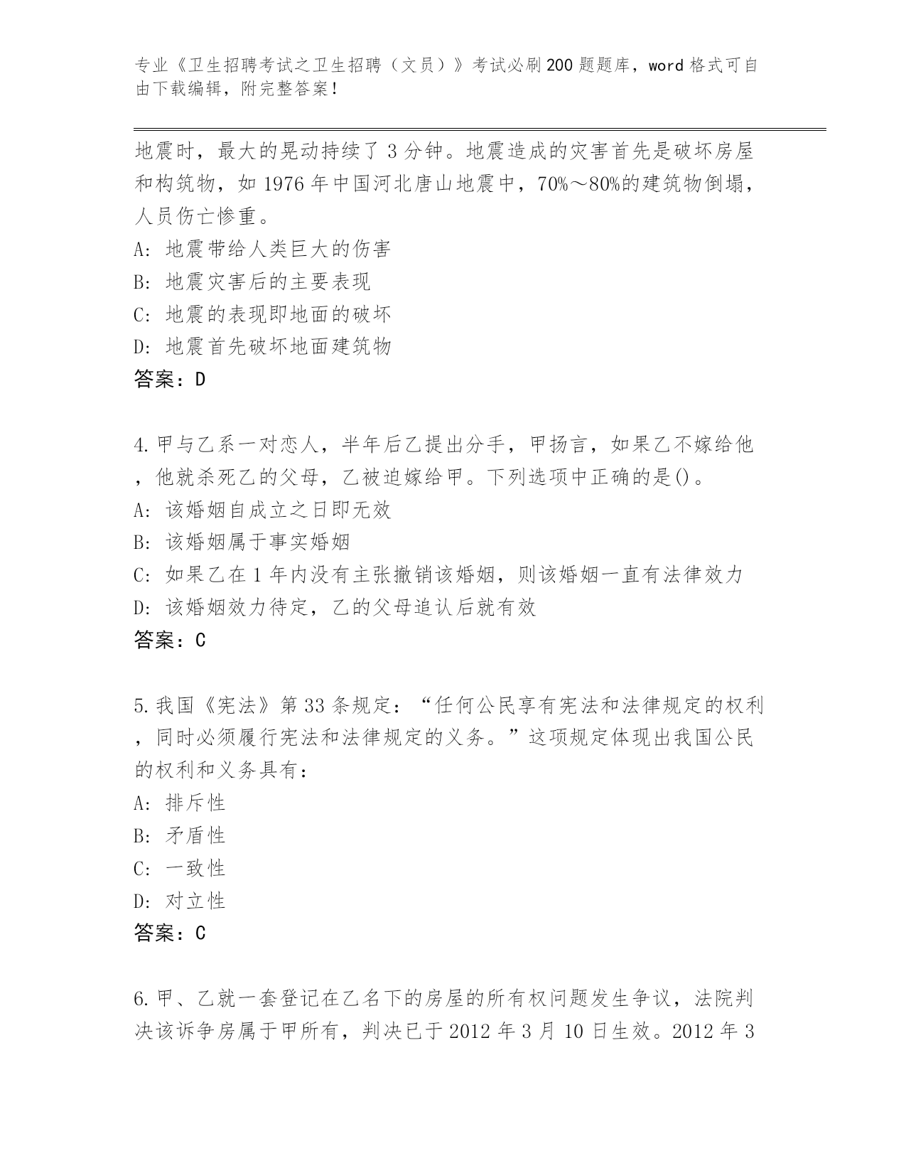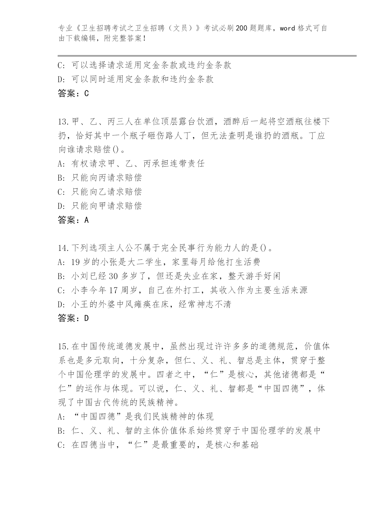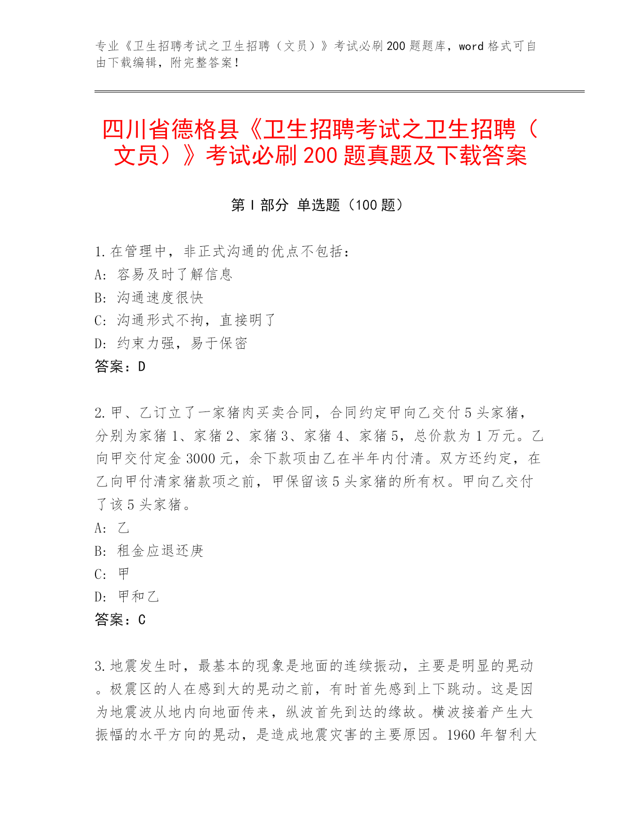 2024年四川省德格县《卫生招聘考试之卫生招聘(文员)》考试必刷200题内部题库带下载答案