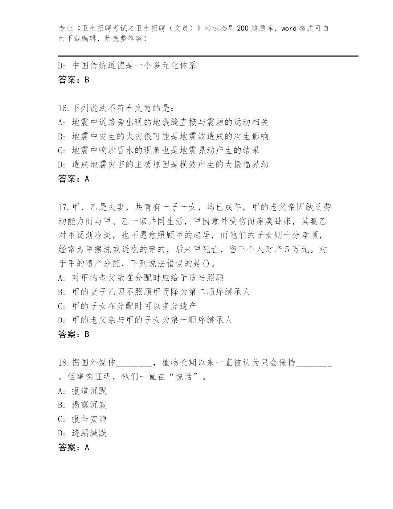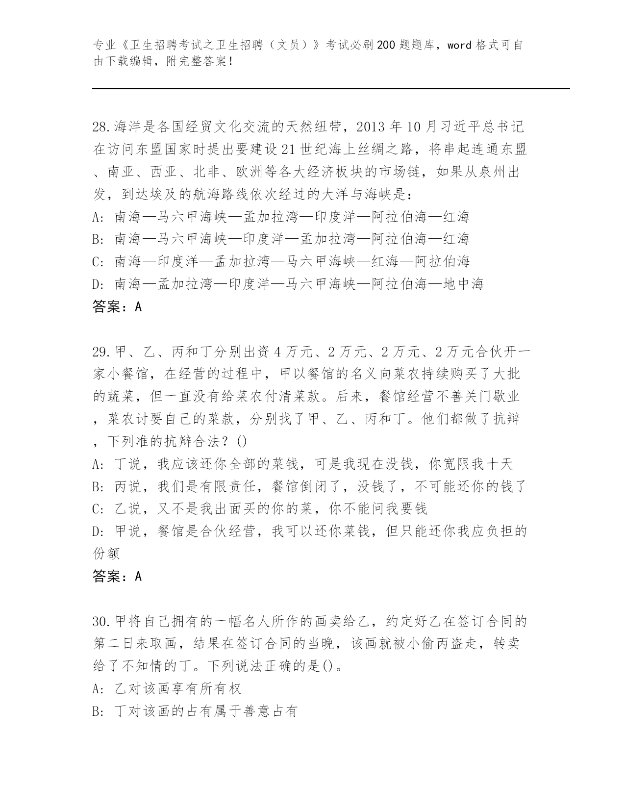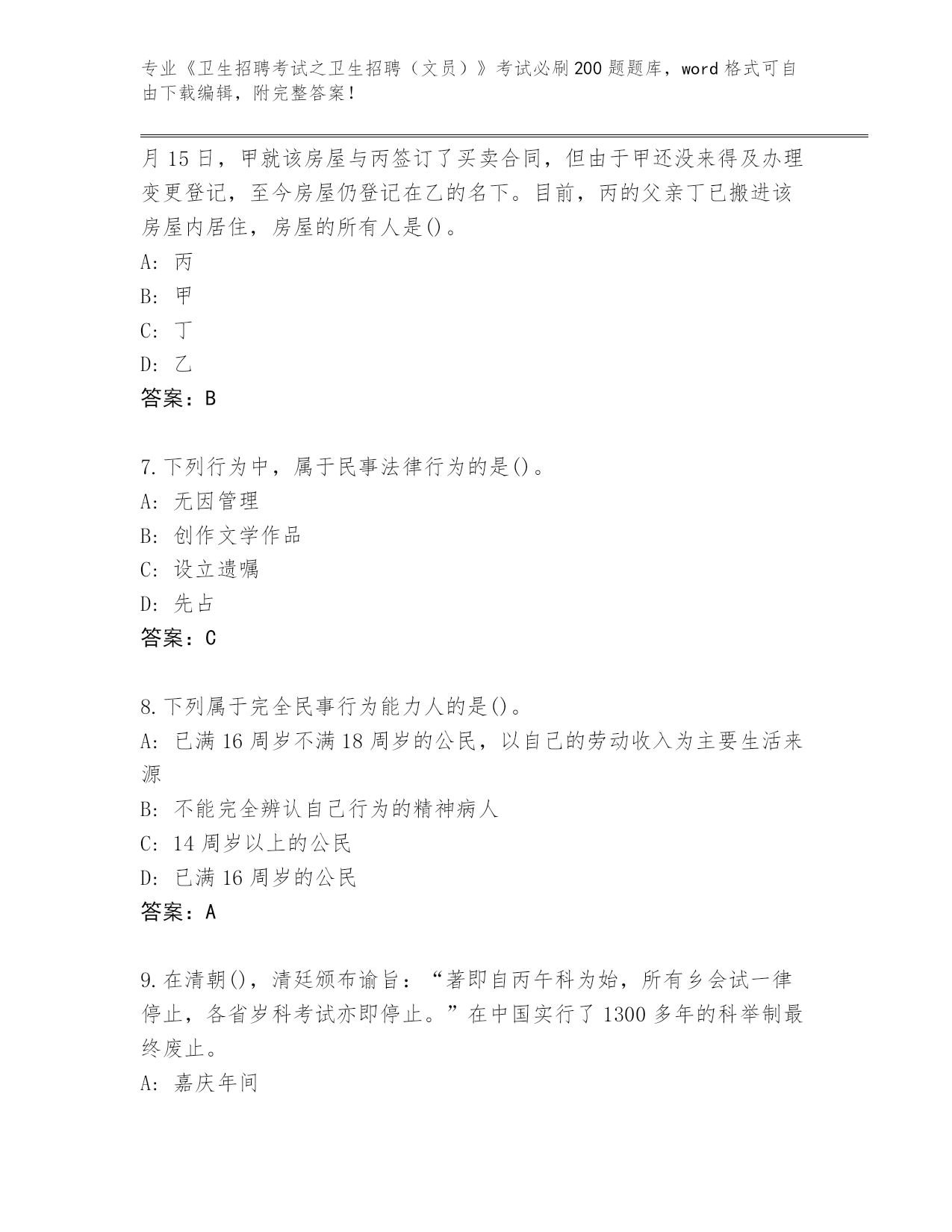 湖南省2024年《卫生招聘考试之卫生招聘(文员)》考试必刷200题真题及答案下载