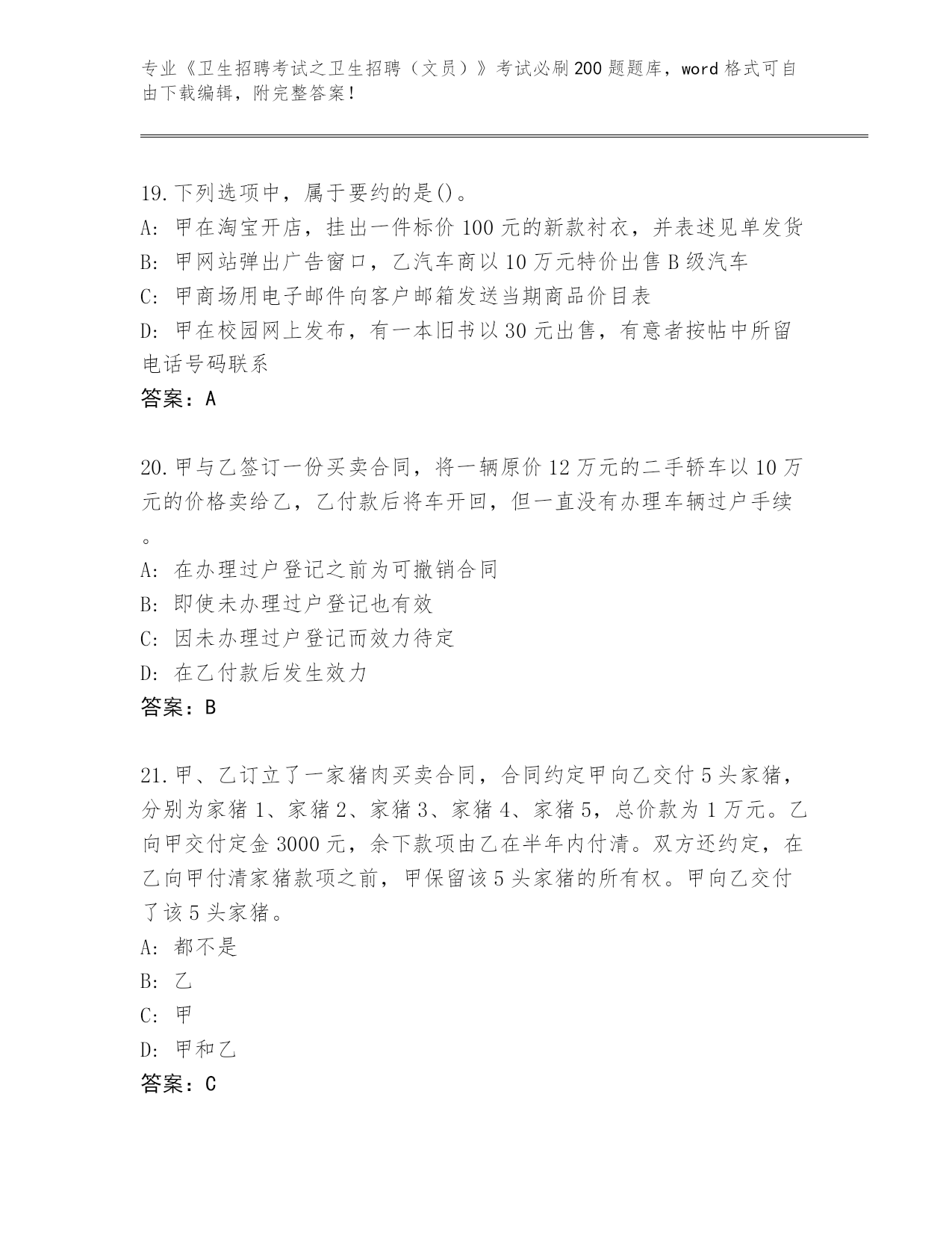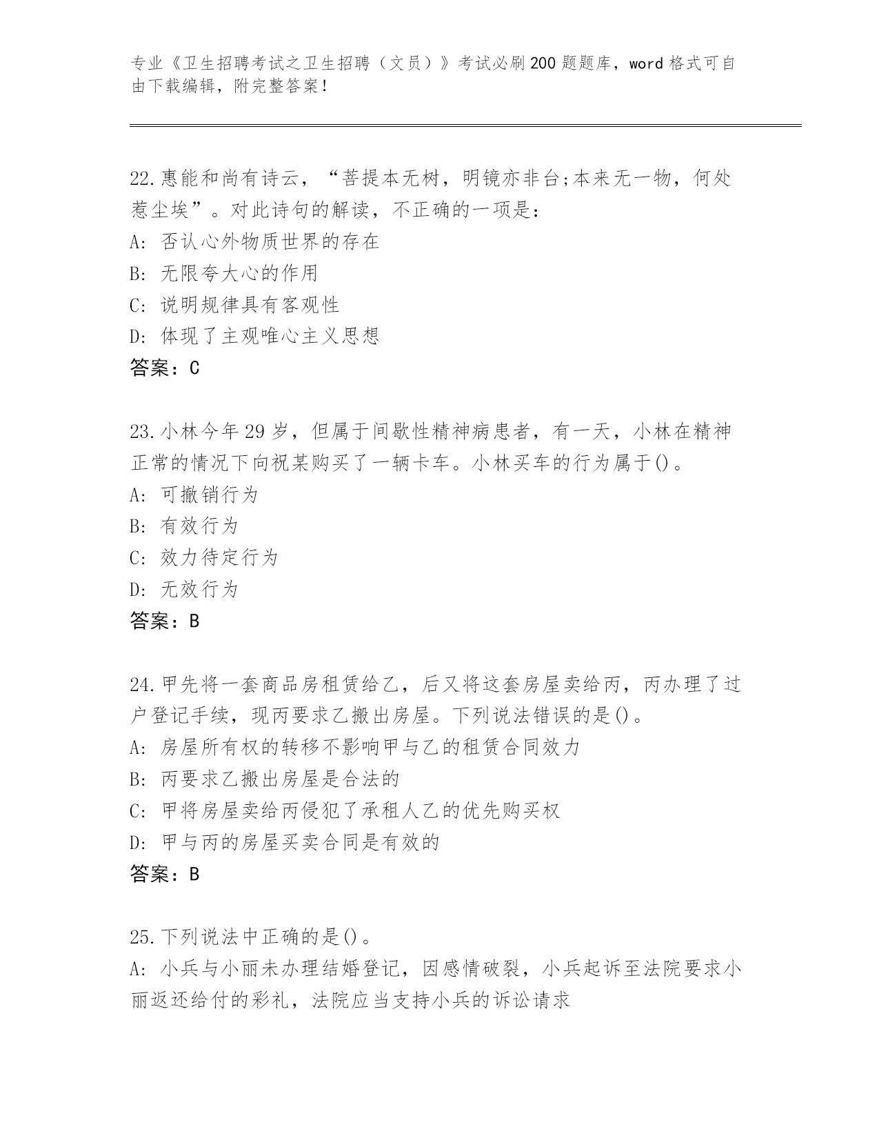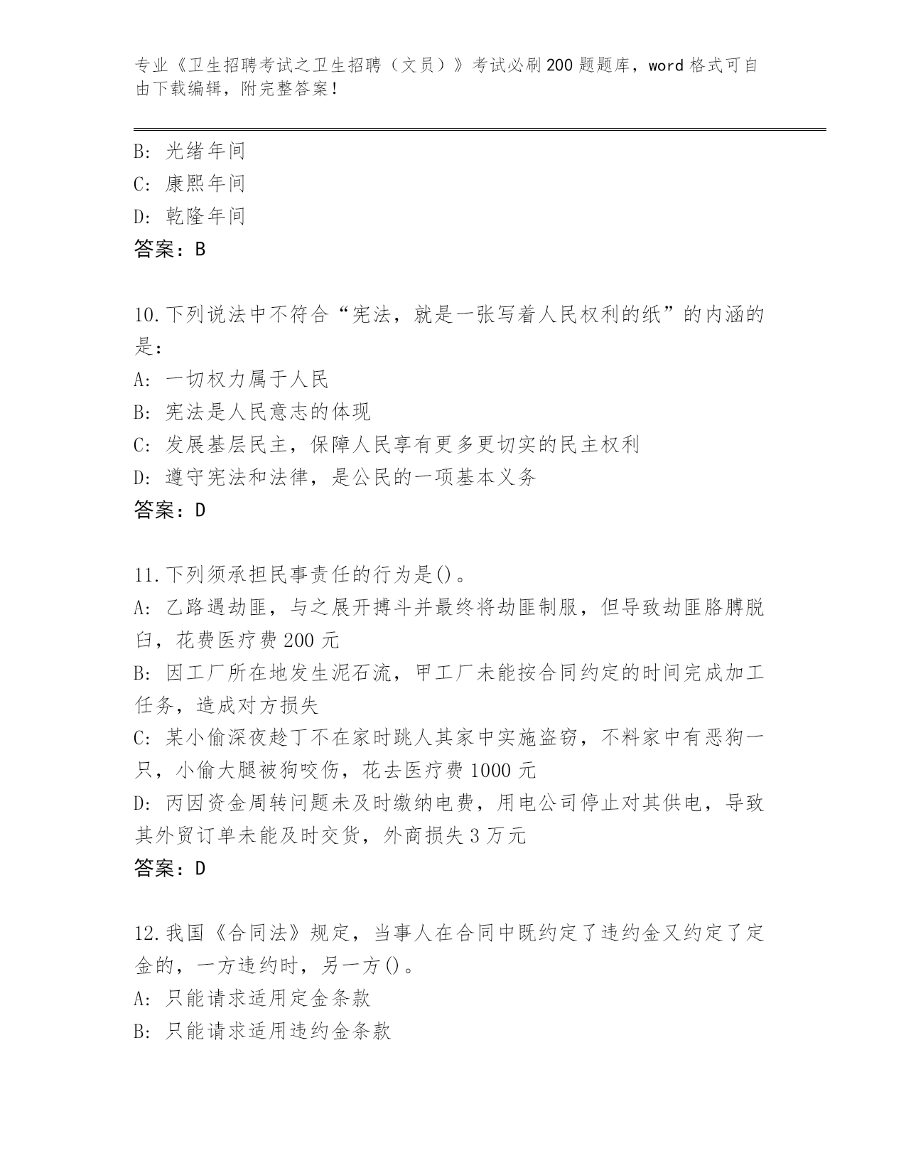 内部使用山西省《卫生招聘考试之卫生招聘(文员)》考试必刷200题真题含答案下载