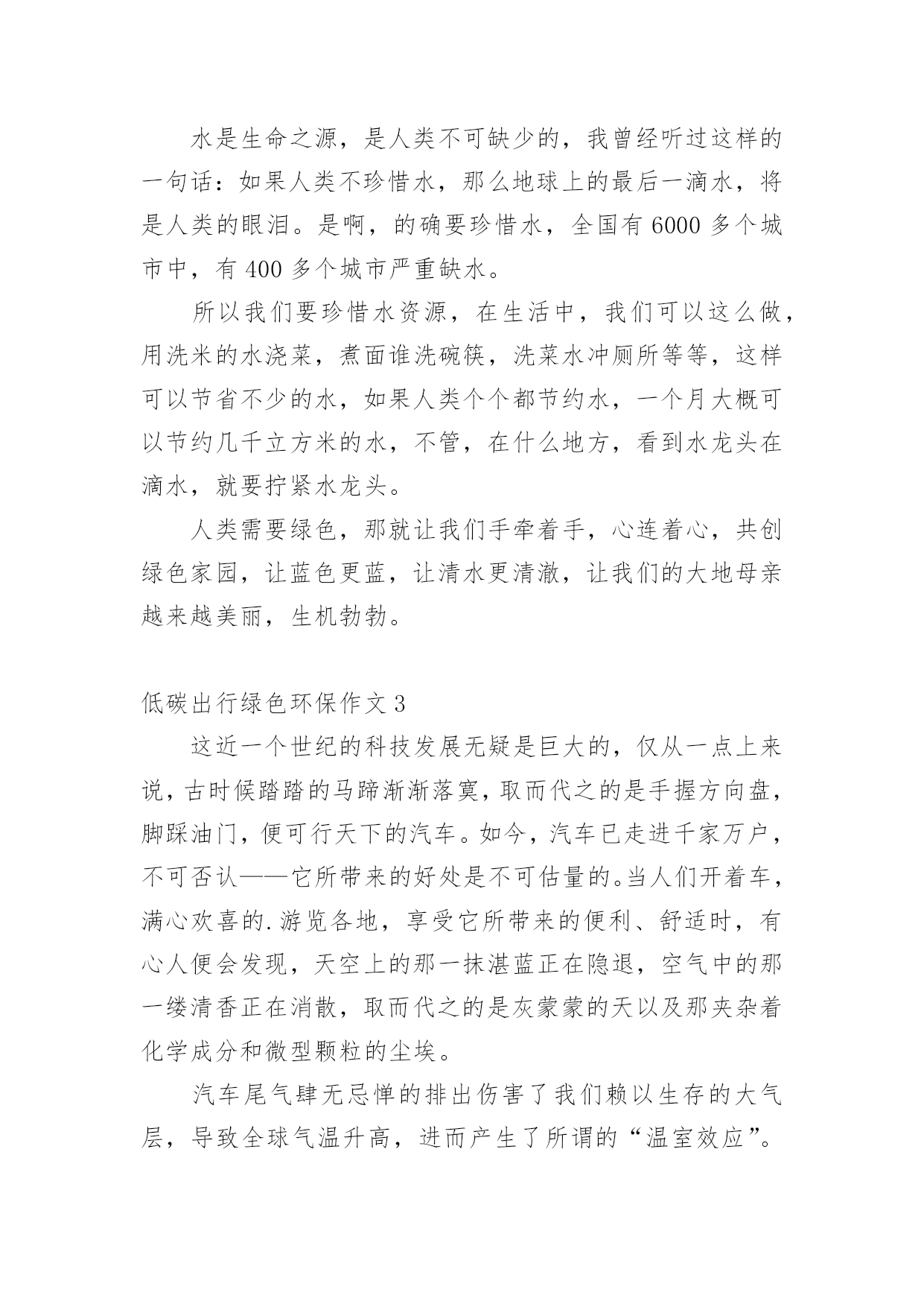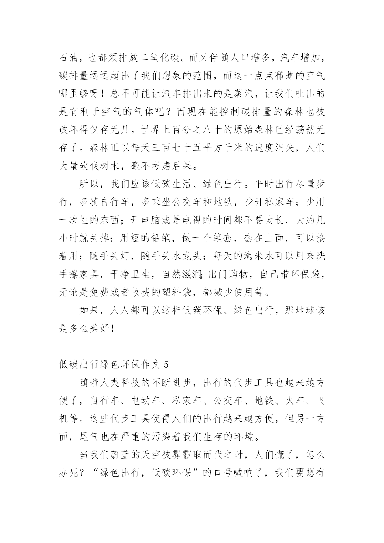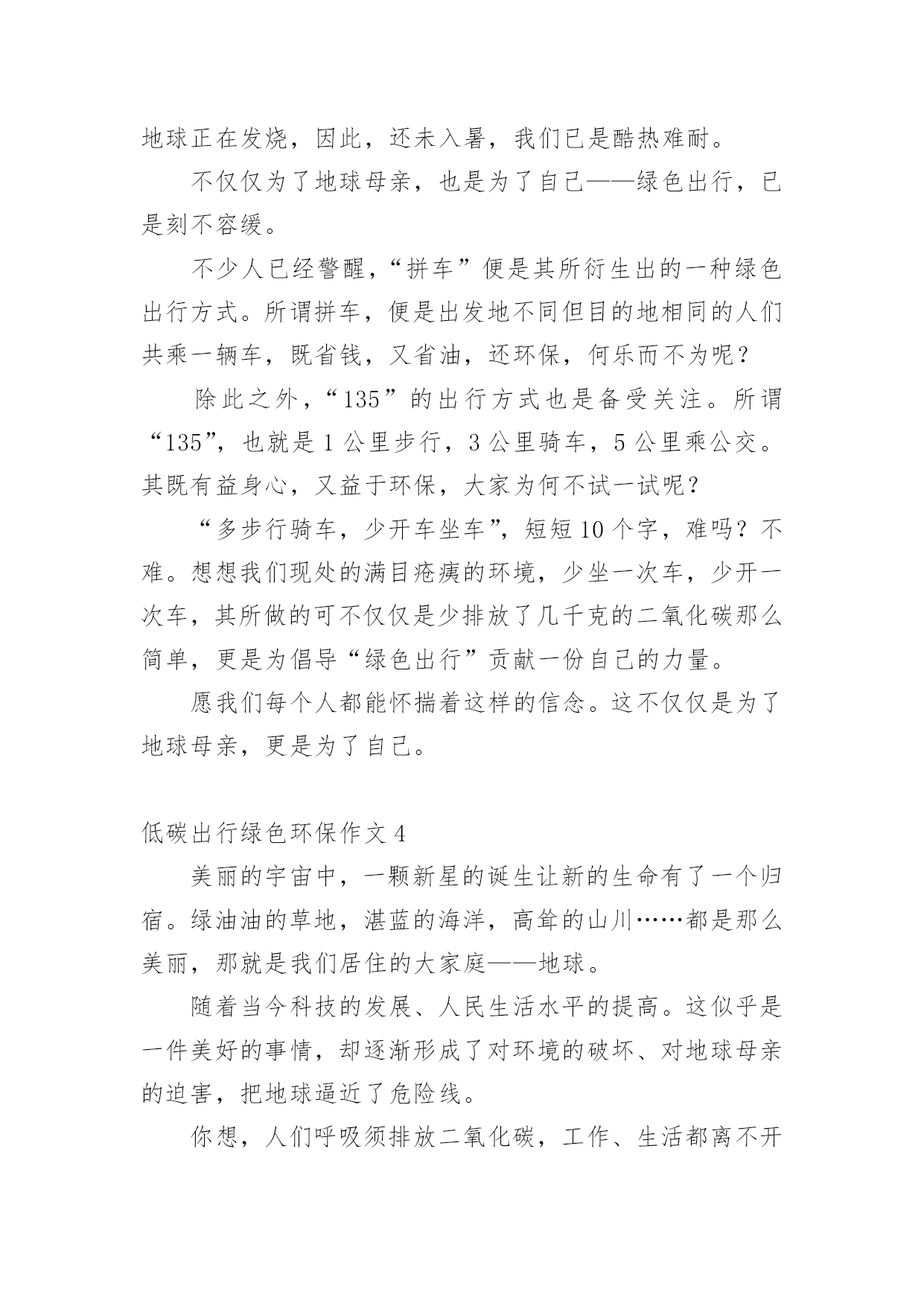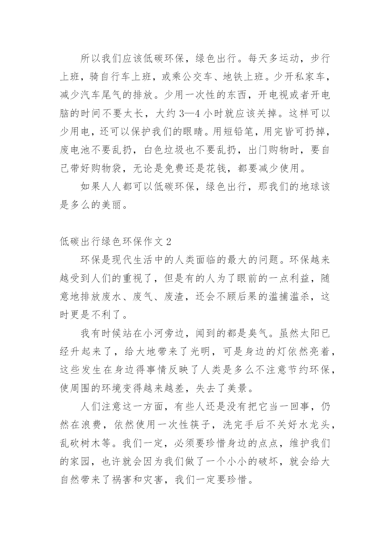 低碳出行绿色环保作文在日常生活或是工作学习中,大家对作文都再熟悉不过了吧,写作文可以锻炼我们的独处习惯,让自己的心静下来,思考自己未来的方向。那要怎么写好作文呢?下面是小编精心整理的低碳出行绿色环保作文,希望对大家有所帮助。低碳出行绿色环保作文1地球是我们的母亲,是万物的母亲。让我们有了生命,让我们有了一个归宿。绿油油的草地,蔚蓝的大海,高耸的青山,艳丽的花朵……都是那么的美丽。唯一能让我们生活的星球——地球。随着时代的变化,我们国家的变化是越来越大,科技也变得越来越发达。这看起来似乎是一件天大的好事,提高了我们的生活水平,但是空气质量却越来越差,对地球母亲的威胁也越来越大,已经把她逼到了警戒线。我们人类也受到了赢得的惩罚。如果人类想呼吸,就必须发放二氧化碳等各种有毒物体。现在的汽车数量,已在在我们的预想之外。每天十亿之多的汽车排放着上百吨,甚至上千吨的汽车尾气让我们的呼吸产生了困难,还有前段时间的严重雾霾,也给我们带来了威胁。现在世界上百分之八十的森林已经荡然无存,现在森林正以每天三百七十五平方米的速度迅速消失,如果我们再不保护森林,剩下的百分之二十的森林也会逐渐消失。所以我们应该低碳环保,绿色出行。每天多运动,步行上班,骑自行车上班,或乘公交车、地铁上班。少开私家车,减少汽车尾气的排放。少用一次性的东西,开电视或者开电脑的时间不要太长,大约3—4小时就应该关掉。这样可以少用电,还可以保护我们的眼睛。用短铅笔,用完皆可扔掉,废电池不要乱扔,白色垃圾也不要乱扔,出门购物时,要自己带好购物袋,无论是免费还是花钱,都要减少使用。如果人人都可以低碳环保,绿色出行,那我们的地球该是多么的美丽。低碳出行绿色环保作文2环保是现代生活中的人类面临的最大的问题。环保越来越受到人们的重视了,但是有的人为了眼前的一点利益,随意地排放废水、废气、废渣,还会不顾后果的滥捕滥杀,这时更是不利了。我有时候站在小河旁边,闻到的都是臭气。虽然太阳已经升起来了,给大地带来了光明,可是身边的灯依然亮着,这些发生在身边得事情反映了人类是多么不注意节约环保,使周围的环境变得越来越差,失去了美景。人们注意这一方面,有些人还是没有把它当一回事,仍然在浪费,依然使用一次性筷子,洗完手后不关好水龙头,乱砍树木等。我们一定,必须要珍惜身边的点点,维护我们的家园,也许就会因为我们做了一个小小的破坏,就会给大自然带来了祸害和灾害,我们一定要珍惜。水是生命之源,是人类不可缺少的,我曾经听过这样的一句话:如果人类不珍惜水,那么地球上的最后一滴水,将是人类的眼泪。是啊,的确要珍惜水,全国有6000多个城市中,有400多个城市严重缺水。所以我们要珍惜水资源,在生活中,我们可以这么做,用洗米的水浇菜,煮面谁洗碗筷,洗菜水冲厕所等等,这样可以节省不少的水,如果人类个个都节约水,一个月大概可以节约几千立方米的水,不管,在什么地方,看到水龙头在滴水,就要拧紧水龙头。人类需要绿色,那就让我们手牵着手,心连着心,共创绿色家园,让蓝色更蓝,让清水更清澈,让我们的大地母亲越来越美丽,生机勃勃。低碳出行绿色环保作文3这近一个世纪的科技发展无疑是巨大的,仅从一点上来说,古时候踏踏的马蹄渐渐落寞,取而代之的是手握方向盘,脚踩油门,便可行天下的汽车。如今,汽车已走进千家万户,不可否认——它所带来的好处是不可估量的。当人们开着车,满心欢喜的.游览各地,享受它所带来的便利、舒适时,有心人便会发现,天空上的那一抹湛蓝正在隐退,空气中的那一缕清香正在消散,取而代之的是灰蒙蒙的天以及那夹杂着化学成分和微型颗粒的尘埃。汽车尾气肆无忌惮的排出伤害了我们赖以生存的大气层,导致全球气温升高,进而产生了所谓的“温室效应”。地球正在发烧,因此,还未入暑,我们已是酷热难耐。不仅仅为了地球母亲,也是为了自己——绿色出行,已是刻不容缓。不少人已经警醒,“拼车”便是其所衍生出的一种绿色出行方式。所谓拼车,便是出发地不同但目的地相同的人们共乘一辆车,既省钱,又省油,还环保,何乐而不为呢?除此之外,“135”的出行方式也是备受关注。所谓“135”,也就是1公里步行,3公里骑车,5公里乘公交。其既有益身心,又益于环保,大家为何不试一试呢?“多步行骑车,少开车坐车”,短短10个字,难吗?不难。想想我们现处的满目疮痍的环境,少坐一次车,少开一次车,其所做的可不仅仅是少排放了几千克的二氧化碳那么简单,更是为倡导“绿色出行”贡献一份自己的力量。愿我们每个人都能怀揣着这样的信念。这不仅仅是为了地球母亲,更是为了自己。低碳出行绿色环保作文4美丽的宇宙中,一颗新星的诞生让新的生命有了一个归宿。绿油油的草地,湛蓝的海洋,高耸的山川……都是那么美丽,那就是我们居住的大家庭——地球。随着当今科技的发展、人民生活水平的提高。这似乎是一件美好的事情,却逐渐形成了对环