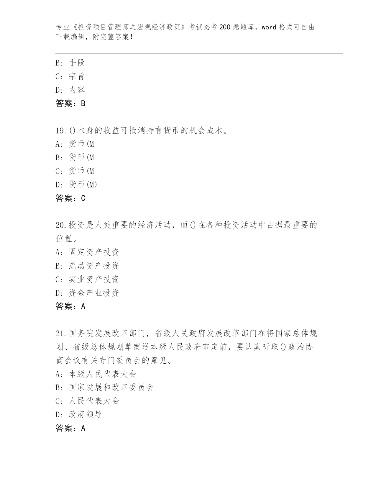 河南省睢阳区历年《投资项目管理师之宏观经济政策》考试必考200题通关秘籍题库(基础题)