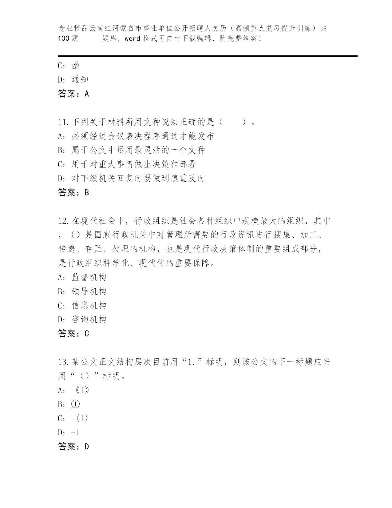 内部培训云南红河蒙自市事业单位公开招聘人员历(高频重点复习提升训练)共100题 大全各版本