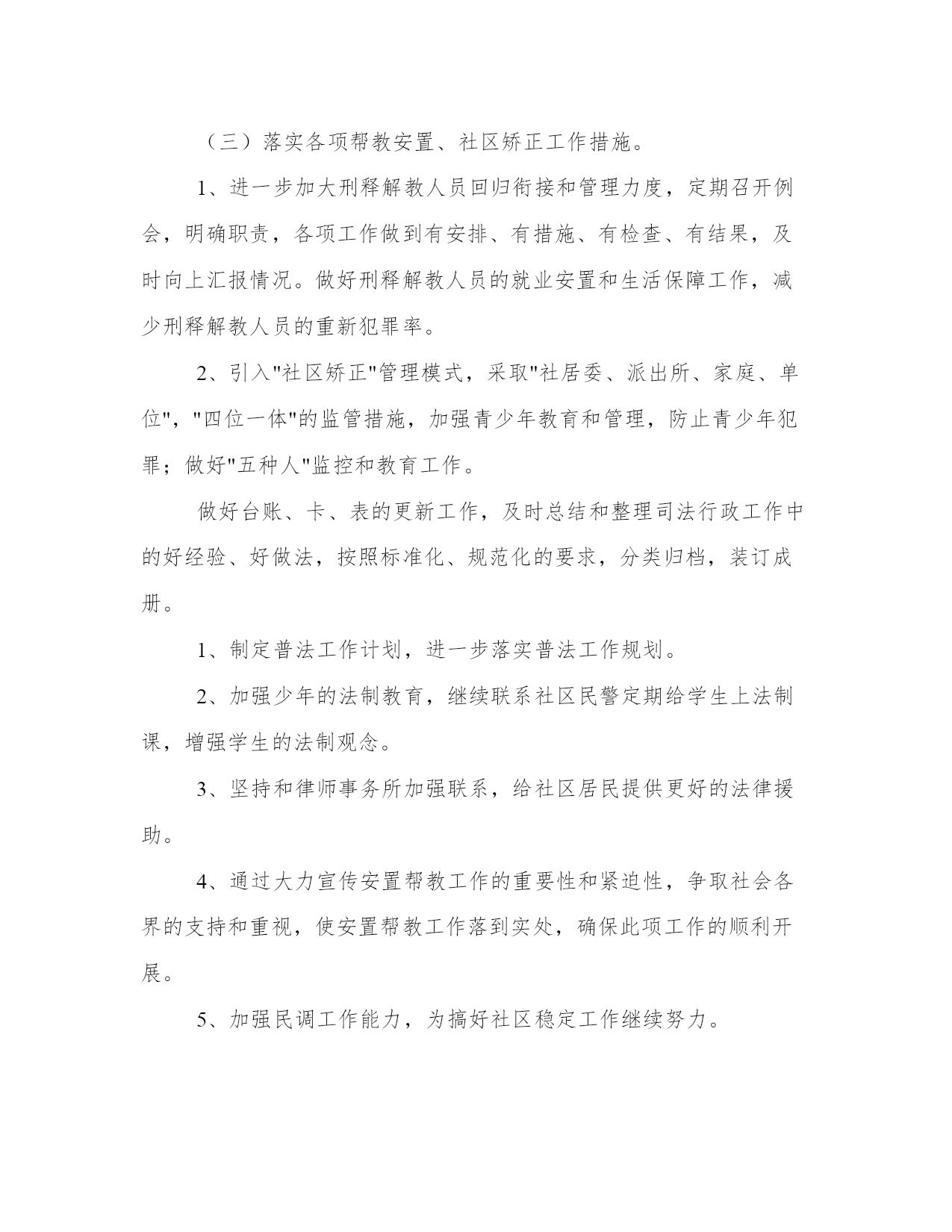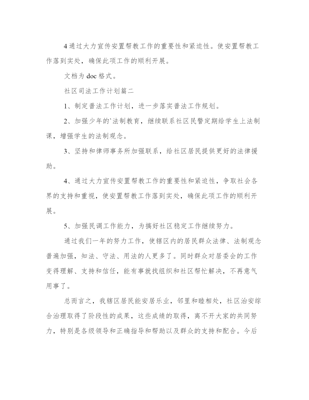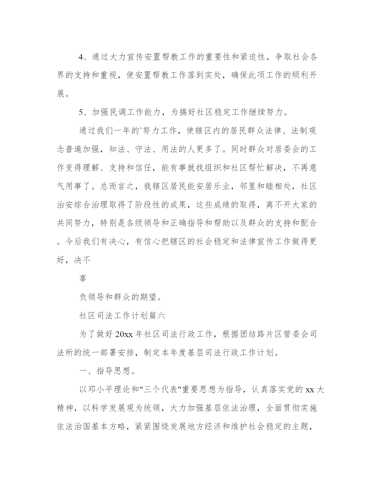 最新社区司法工作计划(优秀10篇)时间就如同白驹过隙般的流逝,我们的工作与生活又进入新的阶段,为了今后更好的发展,写一份计划,为接下来的学习做准备吧!那么我们该如何写一篇较为完美的计划呢?下面我帮大家找寻并整理了一些优秀的计划书范文,我们一起来了解一下吧。社区司法工作计划篇一使辖区内的居民群众法律、法制观念普遍加强,通过我一年的努力工作。知法、守法、用法的人更多了同时群众对居委会的工作变得理解、支持和信任,能有事就找组织和社区帮忙解决,不再意气用事了总而言之,辖区居民能安居乐业,邻里和睦相处,社区治安综合治理取得了阶段性的成果,这些成绩的取得,离不开大家的共同努力,特别是各级领导和正确指导和帮助以及群众的支持和配合。今后我有决心,有信心把辖区的社会稳定和法律宣传工作做得更好,决不辜负领导和群众的期望。继续联系社区民警定期给学生上法制课,2加强少年的法制教育。增强学生的法制观念。给社区居民提供更好的法律援助。3坚持和律师事务所加强联系。争取社会各界的支持和重视,4通过大力宣传安置帮教工作的重要性和紧迫性。使安置帮教工作落到实处,确保此项工作的顺利开展。文档为doc格式。社区司法工作计划篇二1、制定普法工作计划,进一步落实普法工作规划。2、加强少年的`法制教育,继续联系社区民警定期给学生上法制课,增强学生的法制观念。3、坚持和律师事务所加强联系,给社区居民提供更好的法律援助。4、通过大力宣传安置帮教工作的重要性和紧迫性,争取社会各界的支持和重视,使安置帮教工作落到实处,确保此项工作的顺利开展。5、加强民调工作能力,为搞好社区稳定工作继续努力。通过我们一年的努力工作,使辖区内的居民群众法律、法制观念普遍加强,知法、守法、用法的人更多了。同时群众对居委会的工作变得理解、支持和信任,能有事就找组织和社区帮忙解决,不再意气用事了。总而言之,我辖区居民能安居乐业,邻里和睦相处,社区治安综合治理取得了阶段性的成果,这些成绩的取得,离不开大家的共同努力,特别是各级领导和正确指导和帮助以及群众的支持和配合。今后我们有决心,有信心把辖区的社会稳定和法律宣传工作做得更好,决不辜负领导和群众的期望。社区司法工作计划篇三2、加强少年的法制教育,继续联系社区民警定期给学生上法制课,增强学生的法制观念。3、坚持和律师事务所加强联系,给社区居民提供更好的法律援助。4、通过大力宣传安置帮教工作的重要性和紧迫性,争取社会各界的支持和重视,使安置帮教工作落到实处,确保此项工作的顺利开展。5、加强民调工作能力,为搞好社区稳定工作继续努力。通过我们一年的努力工作,使辖区内的'居民群众法律、法制观念普遍加强,知法、守法、用法的人更多了。同时群众对居委会的工作变得理解、支持和信任,能有事就找组织和社区帮忙解决,不再意气用事了。总而言之,我辖区居民能安居乐业,邻里和睦相处,社区治安综合治理取得了阶段性的成果,这些成绩的取得,离不开大家的共同努力,特别是各级领导和正确指导和帮助以及群众的支持和配合。今后我们有决心,有信心把辖区的社会稳定和法律宣传工作做得更好,决不辜负领导和群众的期望。社区司法工作计划篇四为了做好20xx年社区司法行政工作,根据团结路片区管委会司法所的统一部署安排,制定本年度基层司法行政工作计划。以邓小平理论和“三个代表”重要思想为指导,认真落实党的十八大精神,以科学发展观为统领,大力加强基层依法治理,全面贯彻实施依法治国基本方略,紧紧围绕发展地方经济和维护社会稳定的主题,推动“六五”普法开局发展,认真开展各项司法行政业务,大力推进创建“平安社区”进程,为我社区的平安建设发挥应有的职能作用。(一)抓普法,推进依法治理工作深入开展。1、20xx年是“六五”普法的开局之年,是开展平安创建活动的关键的一年。法制宣传工作按照“六五”普法规划的总体要求,着力打造改革发展的法治氛围。2、深入开展法律“八进”活动,丰富普法载体,采取灵活多样的法律宣传方式,扩大学生、群众学法宣传面,社区内法律常识普法率达97%以上,做到普法宣传达标。3、围绕中心工作开展相关法律法规宣传。今年我们将以橱窗、横幅、标牌、标语等媒体为主渠道,法制宣传咨询台为依托,传统形式与现代手段相结合的社会法制宣传模式,突破就普法而普法的`浅层次运作,打造良好的法治环境。(二)加强人民调解工作。充分发挥人民调解工作在维护社会稳定中的“第一道防线”作用。加强社区调委会的工作力度,加强调解员的业务培训,坚持重大纠纷快报制度和社情分析制度,做到抓早抓小抓苗头,努力从行政执法的源头减少矛盾纠纷,确保年内无上访、集访,矛盾纠纷调解率100%,调处成功率达95%以上,着力提高人民调解工作实效。坚持和律师事务所加强联系,给社区居民提供更好的法律援助。(三)落
