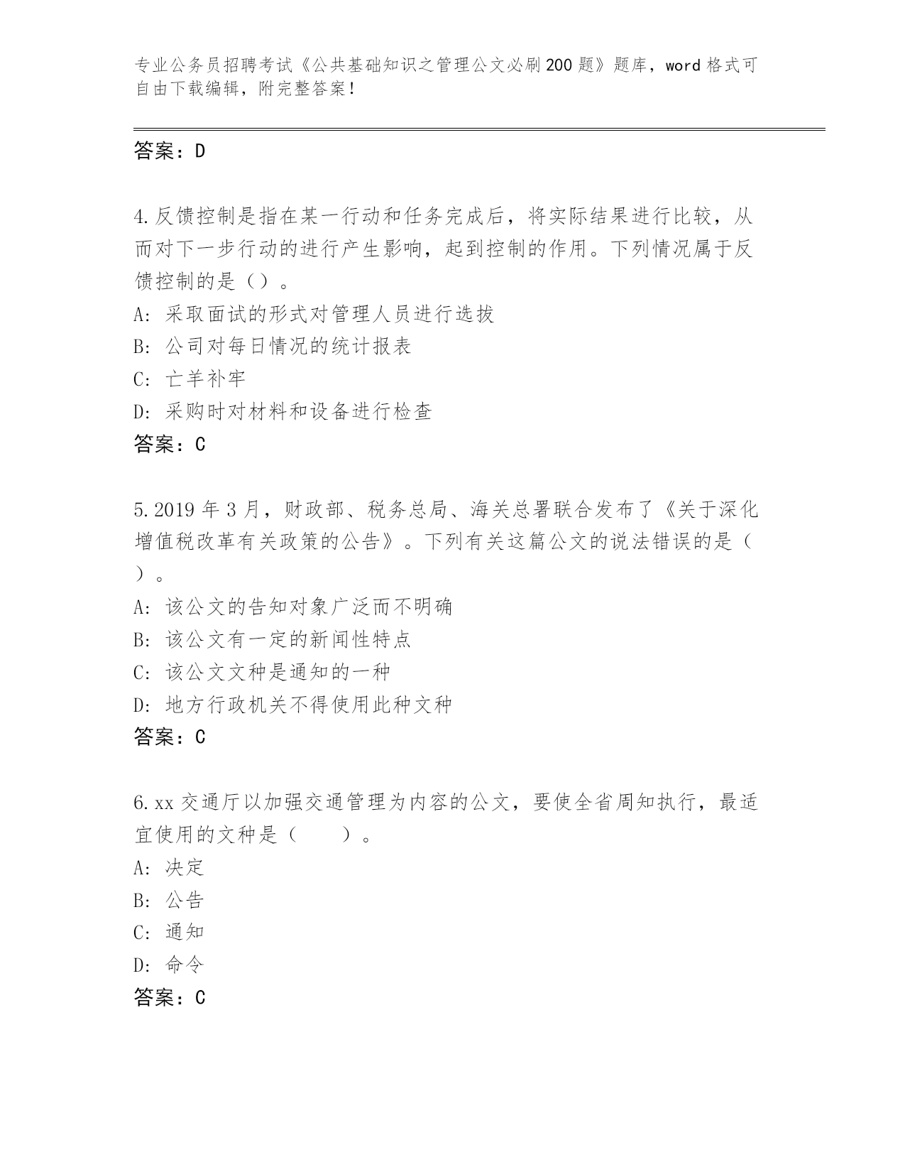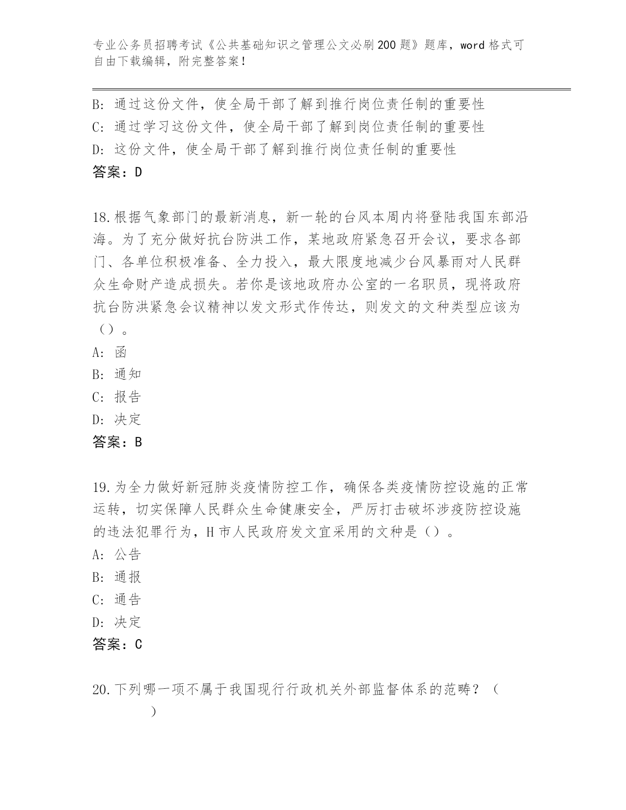 安徽省八公山区公务员招聘考试《公共基础知识之管理公文必刷200题》题库大全【基础题】.docx