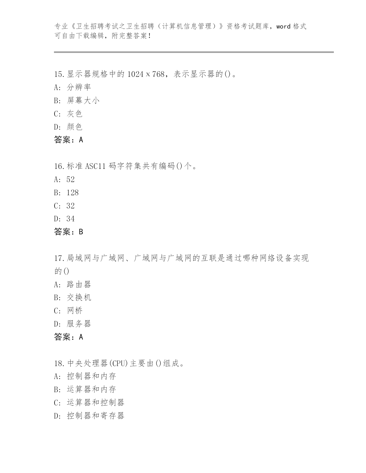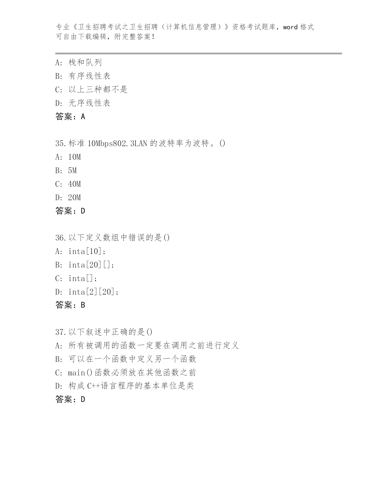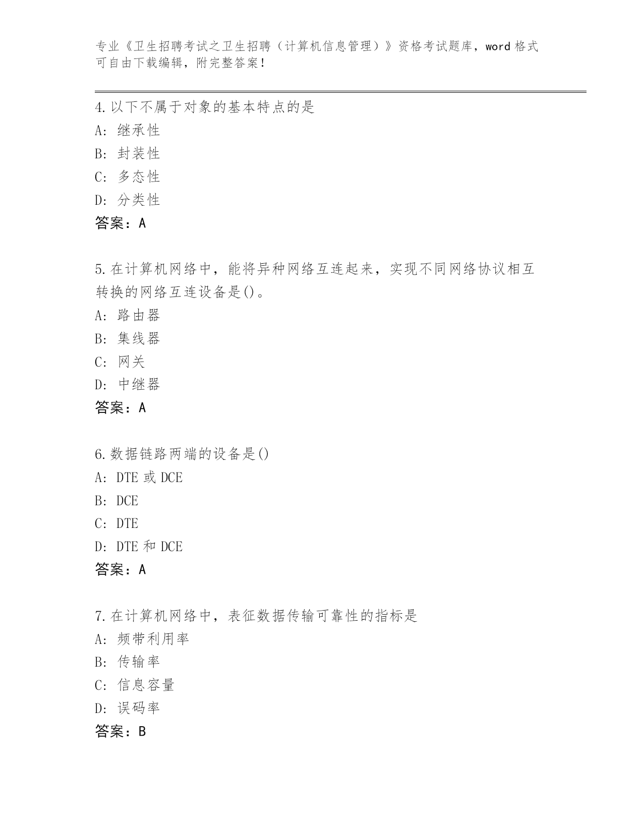 2024年江西省芦溪县《卫生招聘考试之卫生招聘(计算机信息管理)》资格考试真题【考点梳理】