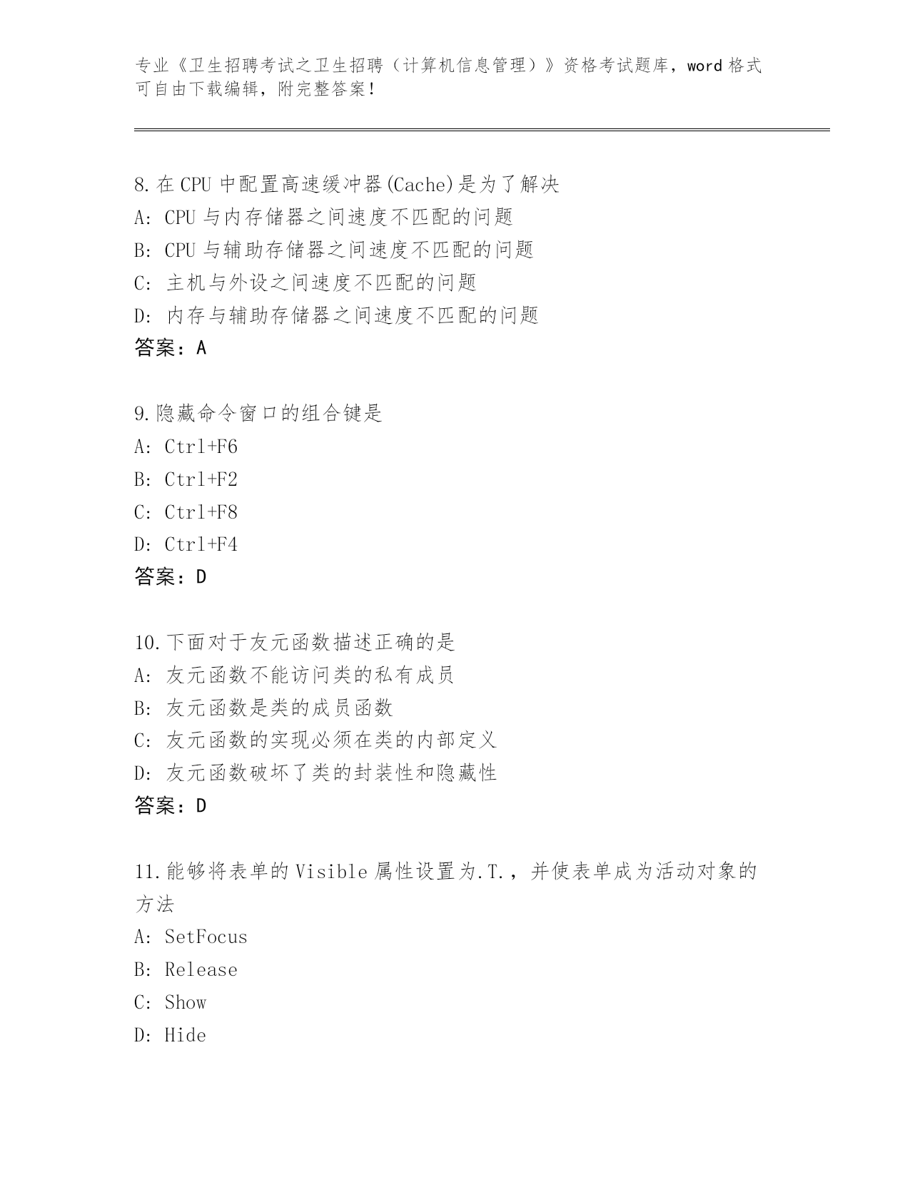 湖北省《卫生招聘考试之卫生招聘(计算机信息管理)》资格考试真题(考点梳理)