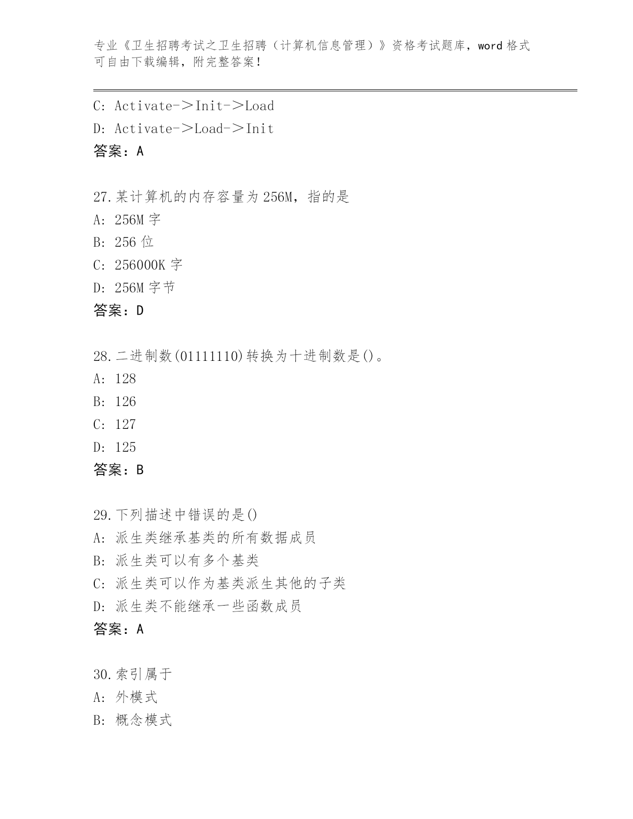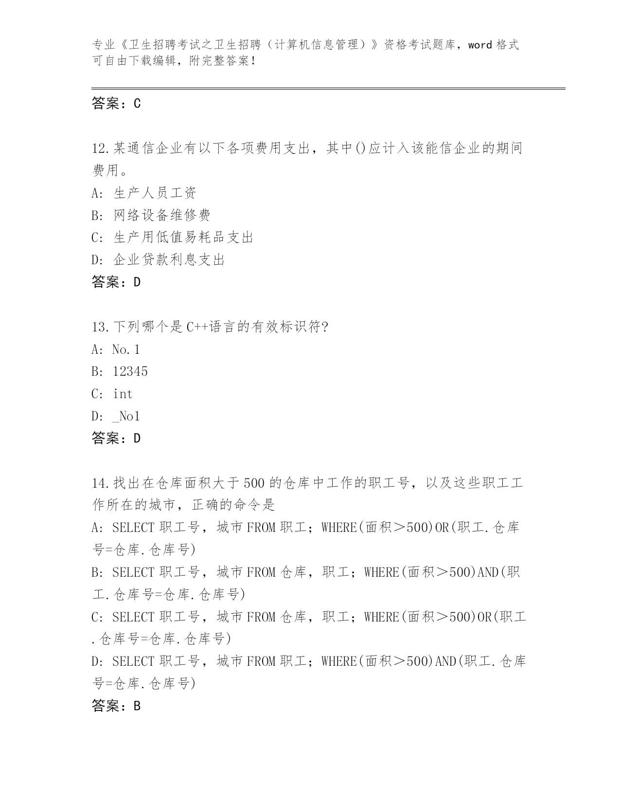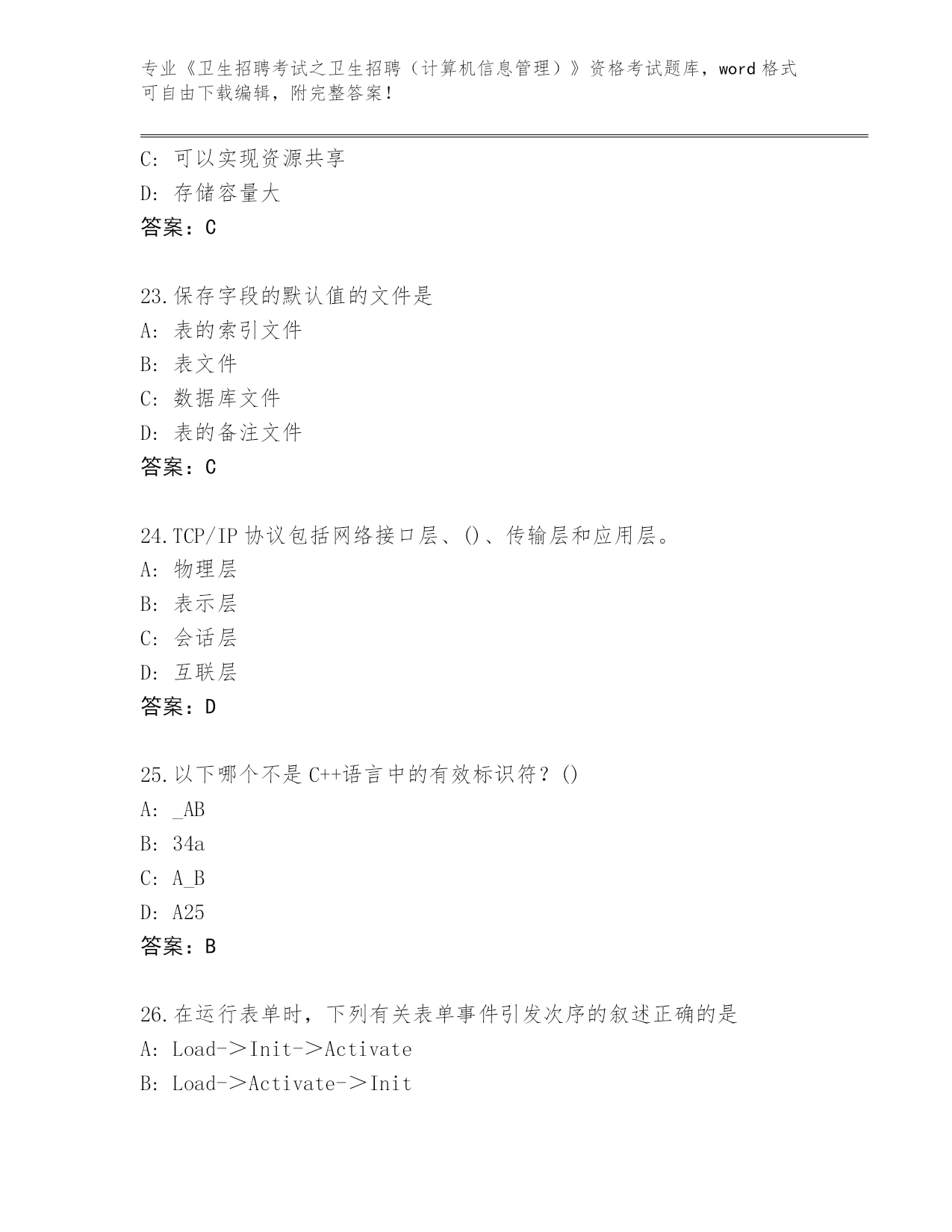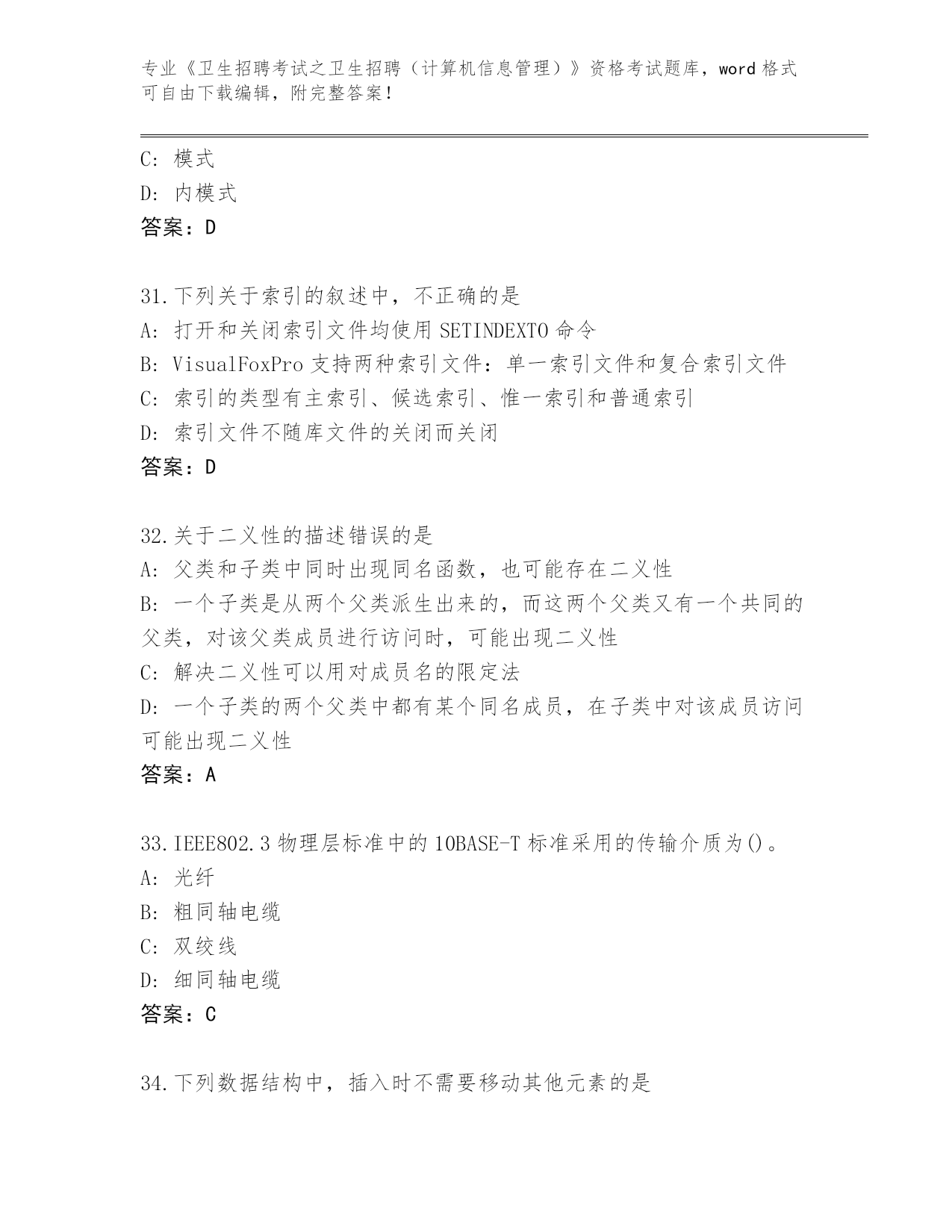 内部使用陕西省《卫生招聘考试之卫生招聘(计算机信息管理)》考试真题题库及答案【考点梳理】