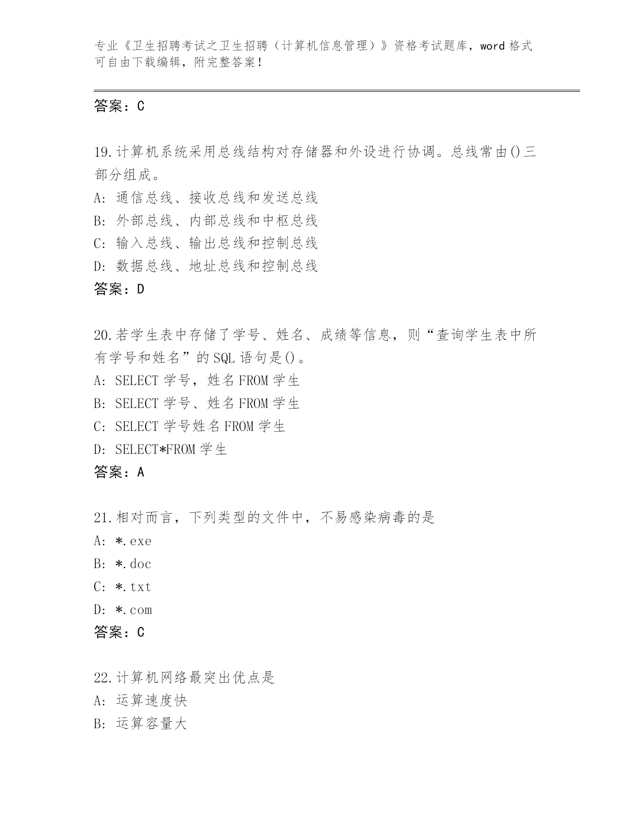 山东省东昌府区2023-2024年《卫生招聘考试之卫生招聘(计算机信息管理)》资格考试真题题库及答案【考点梳理】