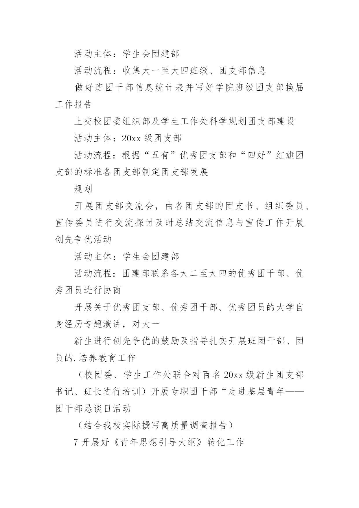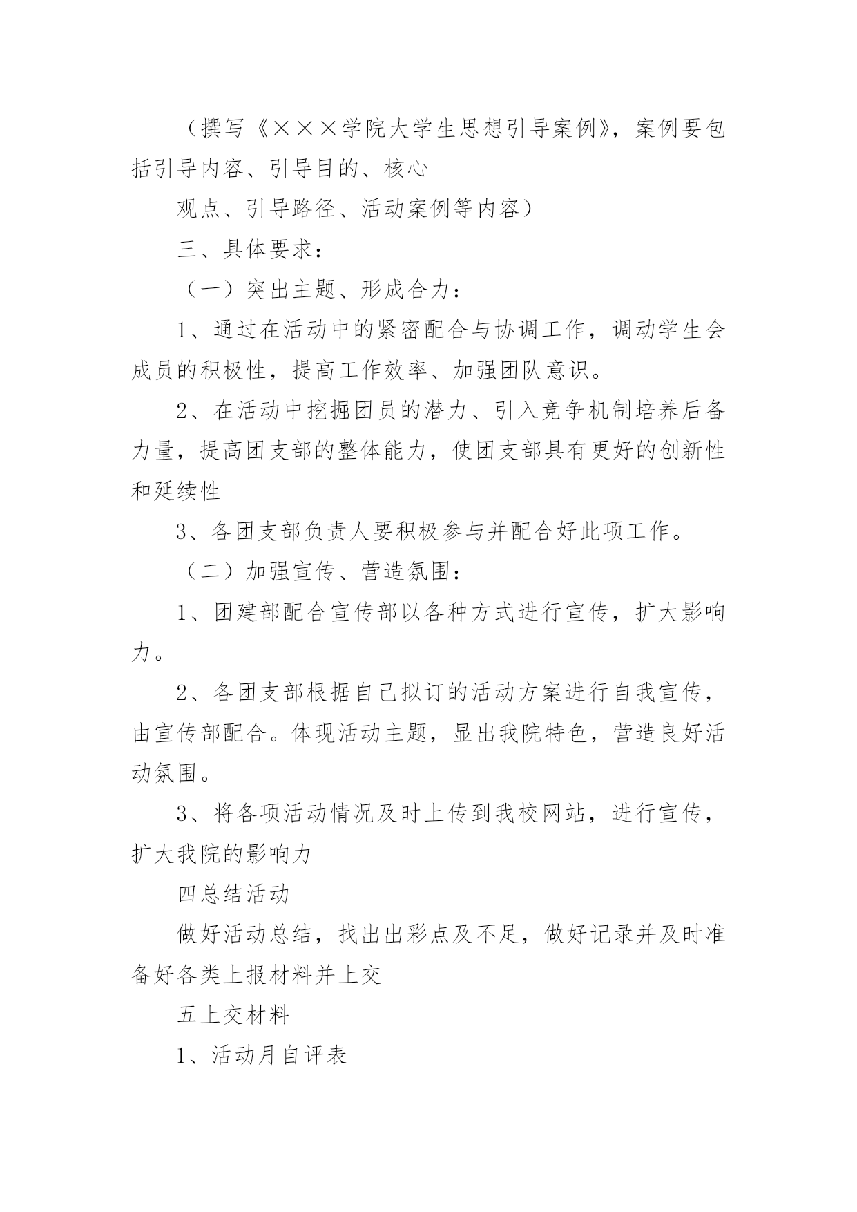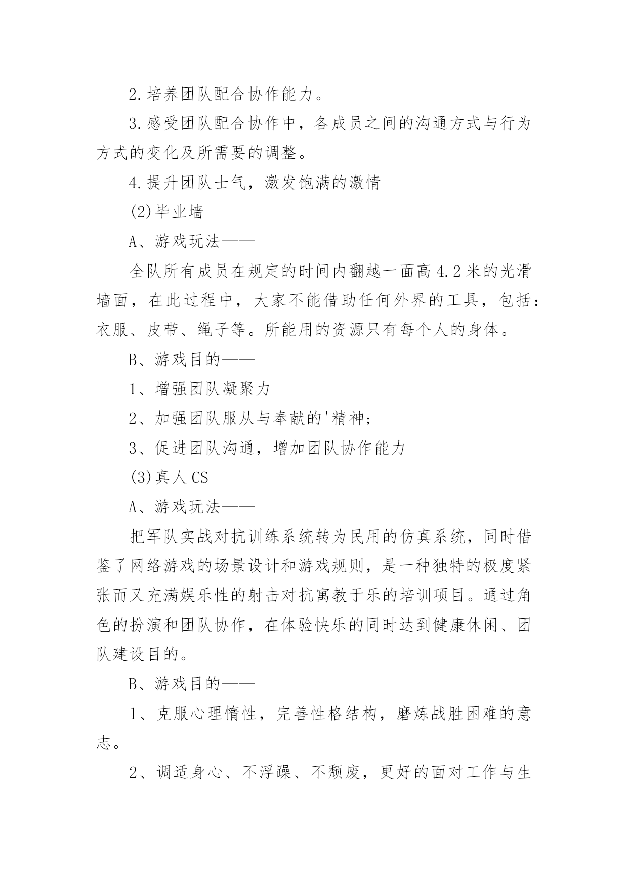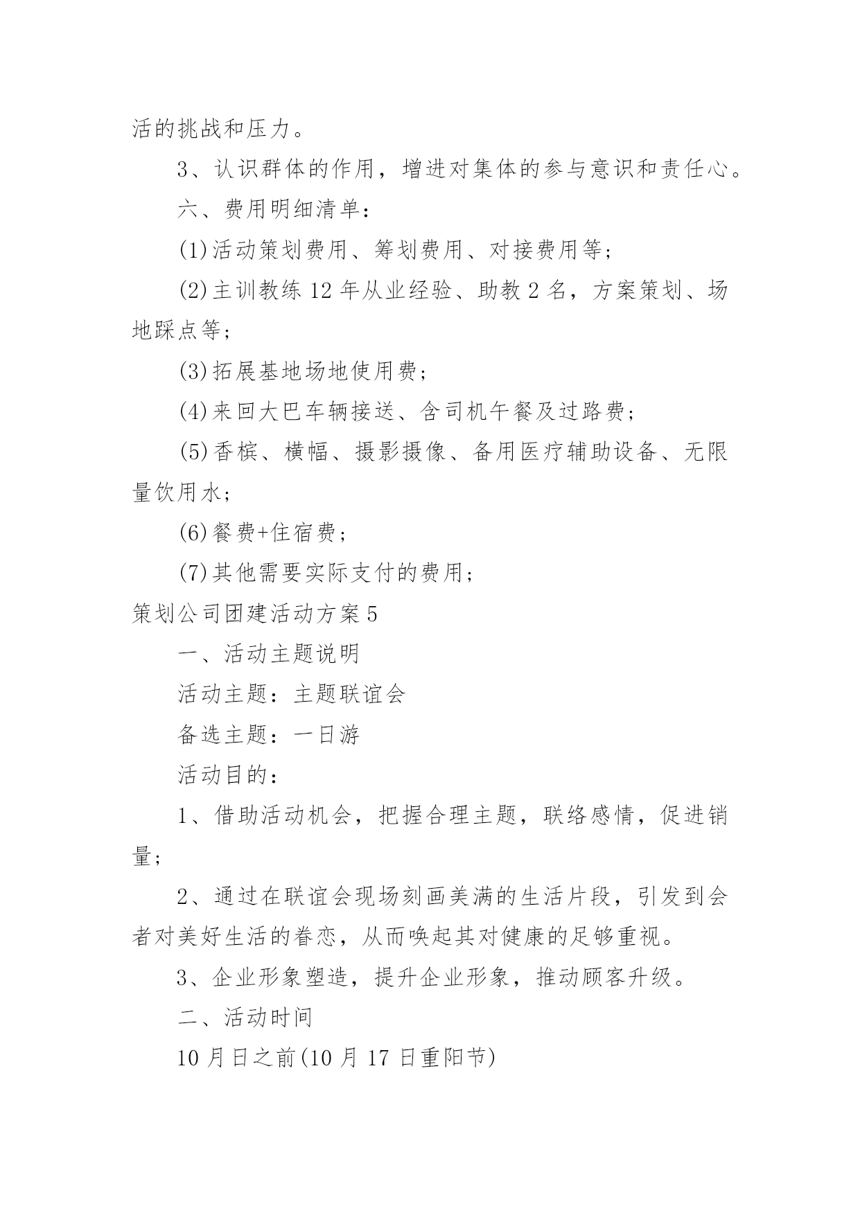 策划公司团建活动方案策划公司团建活动方案(热门)为了确保我们的努力取得实效,通常会被要求事先制定方案,方案是书面计划,具有内容条理清楚、步骤清晰的特点。方案的格式和要求是什么样的呢?下面是小编为大家整理的策划公司团建活动方案,仅供参考,欢迎大家阅读。策划公司团建活动方案1一、活动目的房地产项目发展目前已到关键阶段,为了进一步增进员工情感,加深员工了解,特举办本次聚餐活动,旨在促进员工交流,提高员工的团队意识,进而促进团队的'整体建设与发展,为实现项目工程的品牌塑造和顺利开展提供保障人力保障和智力支持。二、活动地点与时间1.活动地点:大酒店2.活动时间:20xx年xx月xx日晚7:00三、活动方式团队聚餐,席间穿插游戏和节目表演(即兴地表演)。四、活动流程1.欢迎仪式问题:以什么方式迎接董事长入场?嘉宾(各部办、公司领导)的预先邀请,及领导座次安排。2.主持人开场白问题:主持人的选定。主持稿的编写。(内容:体现活动主题和意义;欢迎各位嘉宾的到来并简单介绍;特别感谢董事长参加;表明这是一次家宴,让大家吃得开心,玩得尽兴。)房地产部门责任人及员工是否需要依次介绍。3.请张总讲话问题:发言稿的编写与修改。4.邀请董事长致辞。(共同举杯)5.宣布晚宴开始。策划公司团建活动方案2一活动主题强学风,促教改,构建班、团一体化建设新模式二活动时间20xx年10月20日至20xx年xx月20日三主体活动优秀主题团日活动活动主体:20xx级团活动小组20xx级团支部活动流程:悬挂条幅,号召开展基层团建活动团支部上交活动策划书,根据活动策划书团建部进行有重点的跟进团支部积极开展团活动并做好团活动的宣传工作做好活动总结,并开始着手准备优秀团日活动的申请新老班级、团支部换届工作活动主体:学生会团建部活动流程:收集大一至大四班级、团支部信息做好班团干部信息统计表并写好学院班级团支部换届工作报告上交校团委组织部及学生工作处科学规划团支部建设活动主体:20xx级团支部活动流程:根据“五有”优秀团支部和“四好”红旗团支部的标准各团支部制定团支部发展规划开展团支部交流会,由各团支部的团支书、组织委员、宣传委员进行交流探讨及时总结交流信息与宣传工作开展创先争优活动活动主体:学生会团建部活动流程:团建部联系各大二至大四的优秀团干部、优秀团员进行协商开展关于优秀团支部、优秀团干部、优秀团员的大学自身经历专题演讲,对大一新生进行创先争优的鼓励及指导扎实开展班团干部、团员的.培养教育工作(校团委、学生工作处联合对百名20xx级新生团支部书记、班长进行培训)开展专职团干部“走进基层青年——团干部恳谈日活动(结合我校实际撰写高质量调查报告)7开展好《青年思想引导大纲》转化工作(撰写《×××学院大学生思想引导案例》,案例要包括引导内容、引导目的、核心观点、引导路径、活动案例等内容)三、具体要求:(一)突出主题、形成合力:1、通过在活动中的紧密配合与协调工作,调动学生会成员的积极性,提高工作效率、加强团队意识。2、在活动中挖掘团员的潜力、引入竞争机制培养后备力量,提高团支部的整体能力,使团支部具有更好的创新性和延续性3、各团支部负责人要积极参与并配合好此项工作。(二)加强宣传、营造氛围:1、团建部配合宣传部以各种方式进行宣传,扩大影响力。2、各团支部根据自己拟订的活动方案进行自我宣传,由宣传部配合。体现活动主题,显出我院特色,营造良好活动氛围。3、将各项活动情况及时上传到我校网站,进行宣传,扩大我院的影响力四总结活动做好活动总结,找出出彩点及不足,做好记录并及时准备好各类上报材料并上交五上交材料1、活动月自评表2、主题团日活动申报材料3、专职团干部共青团工作调研报告4、团员思想引导案例5、学院第八届基层团支部建设暨班级规范化建设活动月总结材料(活动结束时间xx月10日上交材料准备结束时间xx月17日上交时间:月20日)策划公司团建活动方案3一、活动安排公司工会拟定于20xx年xx月xx日(周)下午在公司会议室组织一场结合设计知识的趣味竞赛,为了使比赛能够顺利开展,特制作活动方案如下:1、主持人:(待定)2、竞赛仲裁委员会成员:黄院长办公室主任一二三四所长设计工作室组长3、参赛岗位:设计院全员及一所全员4、竞赛形式及办法:(一)组队模式:抽签决定分为5队抽签,组合一共5种颜色(红黄蓝绿紫)(二)比赛方式:题目类型有以下三种二、比赛流程第一轮竞答1、选择题:5队依次作答每队有2分钟答题时间,两分钟内答题最多且正确率则本环节计一分,题目由抽签决定。2、终极30杪:分数相同的队伍在终极30杪环节抢答并答对题目来争取计分,获胜队伍计一分。第二轮大家来找茬1、团队协作题:5张问题图纸,在规定时间内哪队发明的`错误较多且准确即为胜出,胜出队计一分。2、分数相同队伍进入你画我猜环节得分最多队获