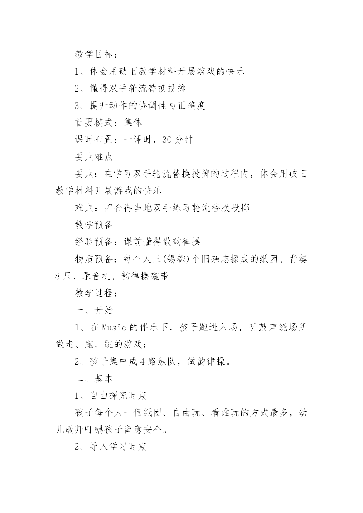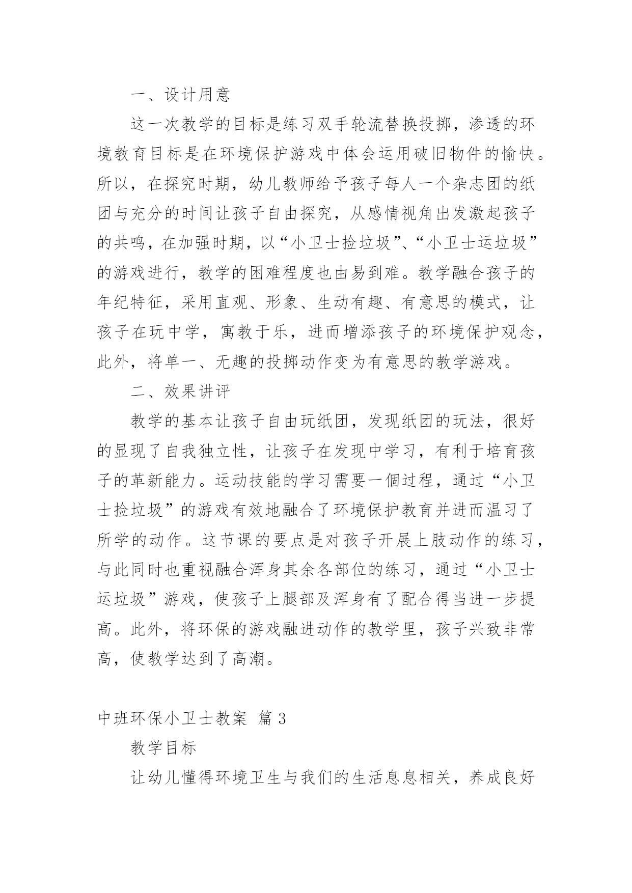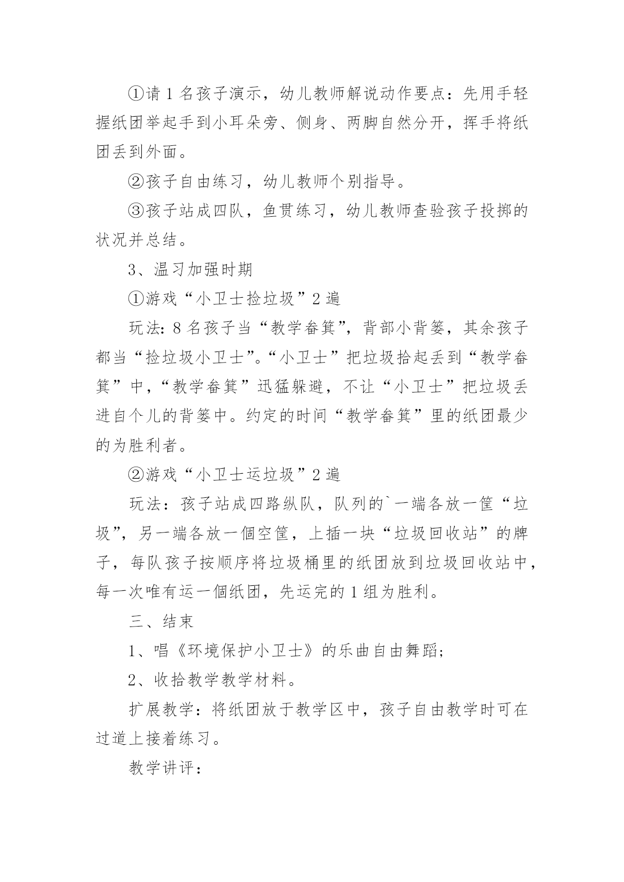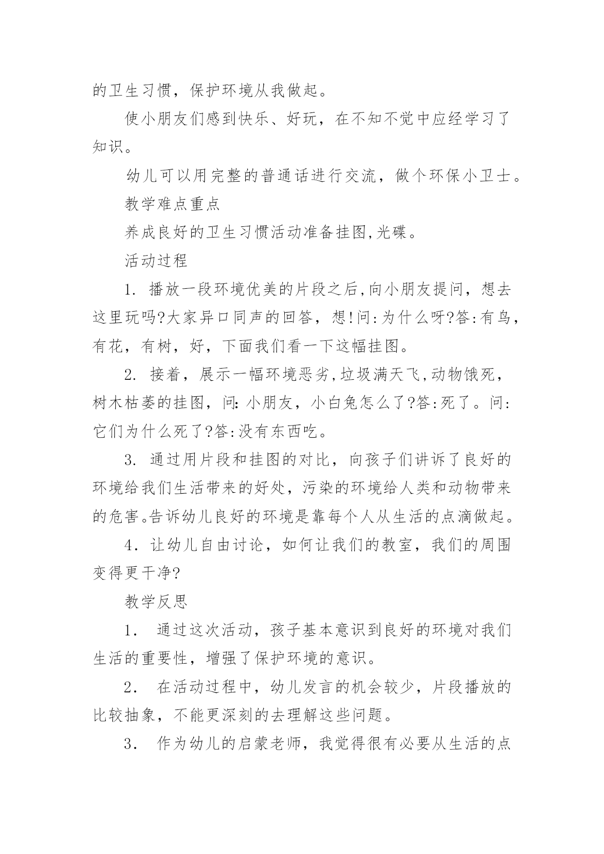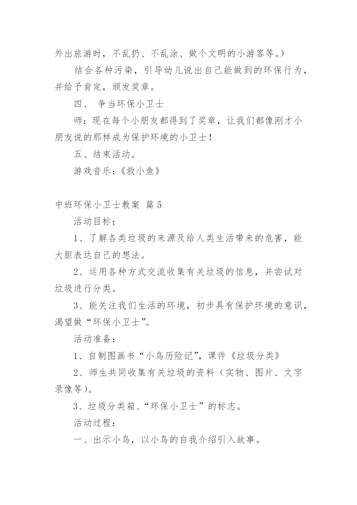 中班环保小卫士教案中班环保小卫士教案汇总五篇作为一名教学工作者,时常要开展教案准备工作,编写教案有利于我们科学、合理地支配课堂时间。那么写教案需要注意哪些问题呢?下面是小编精心整理的中班环保小卫士教案5篇,仅供参考,欢迎大家阅读。中班环保小卫士教案篇1【活动设计背景】在这春暖花开万物复苏的季节里,我们逐渐感受到绿色植物带给我们的生机。值此孩子们喊出“绿动春天”的响亮口号,通过组织本次活动让幼儿亲自动手给小树苗浇水,爱护小树苗懂得爱护树木的道理,人人争做护绿小卫士。【活动目标】1、了解树木的种类及树木是人类和动物的好朋友,了解绿化对人类的好处初步产生环保意识。2、能愉快的参与植树活动并与同伴分工合作。3、激发幼儿热爱和亲近大自然,感受绿色生命带给他们好心情。【教学重点、难点】通过不同的活动方式让孩子们知道:树木是人类的好朋友,珍惜爱护身边的一草一木,爱护花草树木就是爱护我们美好家园!绿色是生命的永恒!【活动准备】1、各种树木的彩色照片。2、植树用的工具如:小桶、水、各种饮料瓶等。3、多媒体课件:植被破坏环境恶化引发的山洪暴发、沙尘暴、泥石流、小动物搬家、干旱等。【活动过程】1、组织幼儿学唱《爱护小树苗》,通过儿歌激发幼儿爱护小树苗的`情感。2、让幼儿了解3月12日是植树节,介绍小朋友认识各种树木以及它们生长情况。3、让幼儿观看有关沙尘暴、泥石流、干旱等危害人类的视频,讨论植树造林对人类的益处,教育幼儿从小一定要爱护树木,增强环保意识。4、带领幼儿来参加植树,提醒幼儿在植树过程中一定要注意安全且记住同伴间的分工与协作。5、植树后谈对这次活动的认识与感受并发挥想象小树苗长成参天大树,我们呼吸新鲜空气,在绿色家园中尽情地嬉戏、玩耍多开心!活动延伸:护绿小卫士行动1、回家后认养小树苗每天浇水、除草,清除垃圾。2、为树苗做好成长记录。中班环保小卫士教案篇2教学目标:1、体会用破旧教学材料开展游戏的快乐2、懂得双手轮流替换投掷3、提升动作的协调性与正确度首要模式:集体课时布置:一课时,30分钟要点难点要点:在学习双手轮流替换投掷的过程内,体会用破旧教学材料开展游戏的快乐难点:配合得当地双手练习轮流替换投掷教学预备经验预备:课前懂得做韵律操物质预备:每个人三(锡都)个旧杂志揉成的纸团、背篓8只、录音机、韵律操磁带教学过程:一、开始1、在Music的伴乐下,孩子跑进入场,听鼓声绕场所做走、跑、跳的游戏;2、孩子集中成4路纵队,做韵律操。二、基本1、自由探究时期孩子每个人一個纸团、自由玩、看谁玩的方式最多,幼儿教师叮嘱孩子留意安全。2、导入学习时期①请1名孩子演示,幼儿教师解说动作要点:先用手轻握纸团举起手到小耳朵旁、侧身、两脚自然分开,挥手将纸团丢到外面。②孩子自由练习,幼儿教师个别指导。③孩子站成四队,鱼贯练习,幼儿教师查验孩子投掷的状况并总结。3、温习加强时期①游戏“小卫士捡垃圾”2遍玩法:8名孩子当“教学畚箕”,背部小背篓,其余孩子都当“捡垃圾小卫士”。“小卫士”把垃圾拾起丢到“教学畚箕”中,“教学畚箕”迅猛躲避,不让“小卫士”把垃圾丢进自个儿的背篓中。约定的时间“教学畚箕”里的纸团最少的为胜利者。②游戏“小卫士运垃圾”2遍玩法:孩子站成四路纵队,队列的`一端各放一筐“垃圾”,另一端各放一個空筐,上插一块“垃圾回收站”的牌子,每队孩子按顺序将垃圾桶里的纸团放到垃圾回收站中,每一次唯有运一個纸团,先运完的1组为胜利。三、结束1、唱《环境保护小卫士》的乐曲自由舞蹈;2、收拾教学教学材料。扩展教学:将纸团放于教学区中,孩子自由教学时可在过道上接着练习。教学讲评:一、设计用意这一次教学的目标是练习双手轮流替换投掷,渗透的环境教育目标是在环境保护游戏中体会运用破旧物件的愉快。所以,在探究时期,幼儿教师给予孩子每人一个杂志团的纸团与充分的时间让孩子自由探究,从感情视角出发激起孩子的共鸣,在加强时期,以“小卫士捡垃圾”、“小卫士运垃圾”的游戏进行,教学的困难程度也由易到难。教学融合孩子的年纪特征,采用直观、形象、生动有趣、有意思的模式,让孩子在玩中学,寓教于乐,进而增添孩子的环境保护观念,此外,将单一、无趣的投掷动作变为有意思的教学游戏。二、效果讲评教学的基本让孩子自由玩纸团,发现纸团的玩法,很好的显现了自我独立性,让孩子在发现中学习,有利于培育孩子的革新能力。运动技能的学习需要一個过程,通过“小卫士捡垃圾”的游戏有效地融合了环境保护教育并进而温习了所学的动作。这节课的要点是对孩子开展上肢动作的练习,与此同时也重视融合浑身其余各部位的练习,通过“小卫士运垃圾”游戏,使孩子上腿部及浑身有了配合得当进一步提高。此外,将环保的游戏融进动作的教学里,孩子兴致非常高,使教学达到了高潮。中班环保小卫士教案篇3教学目标让幼儿懂得环境卫生与我们的生活息息相关,养成