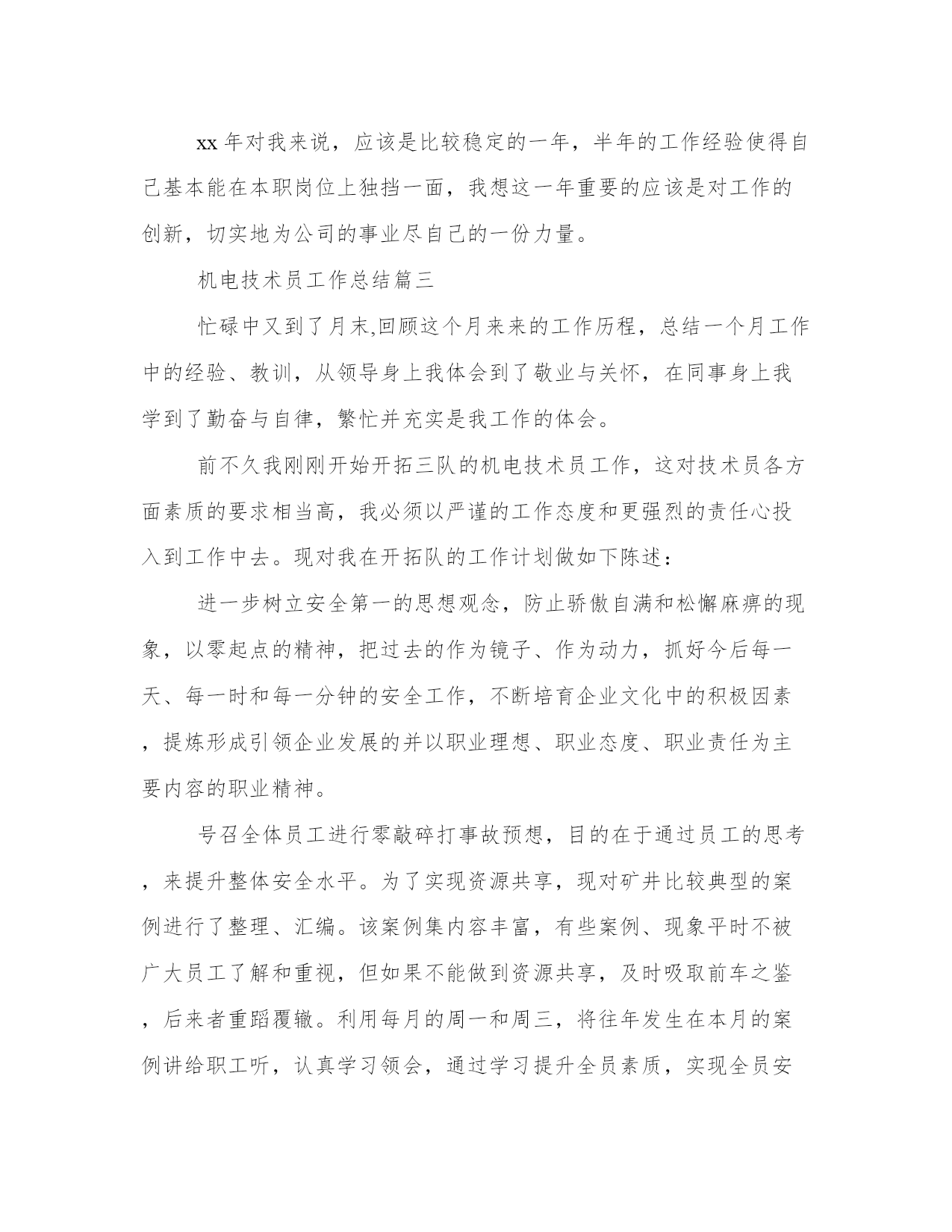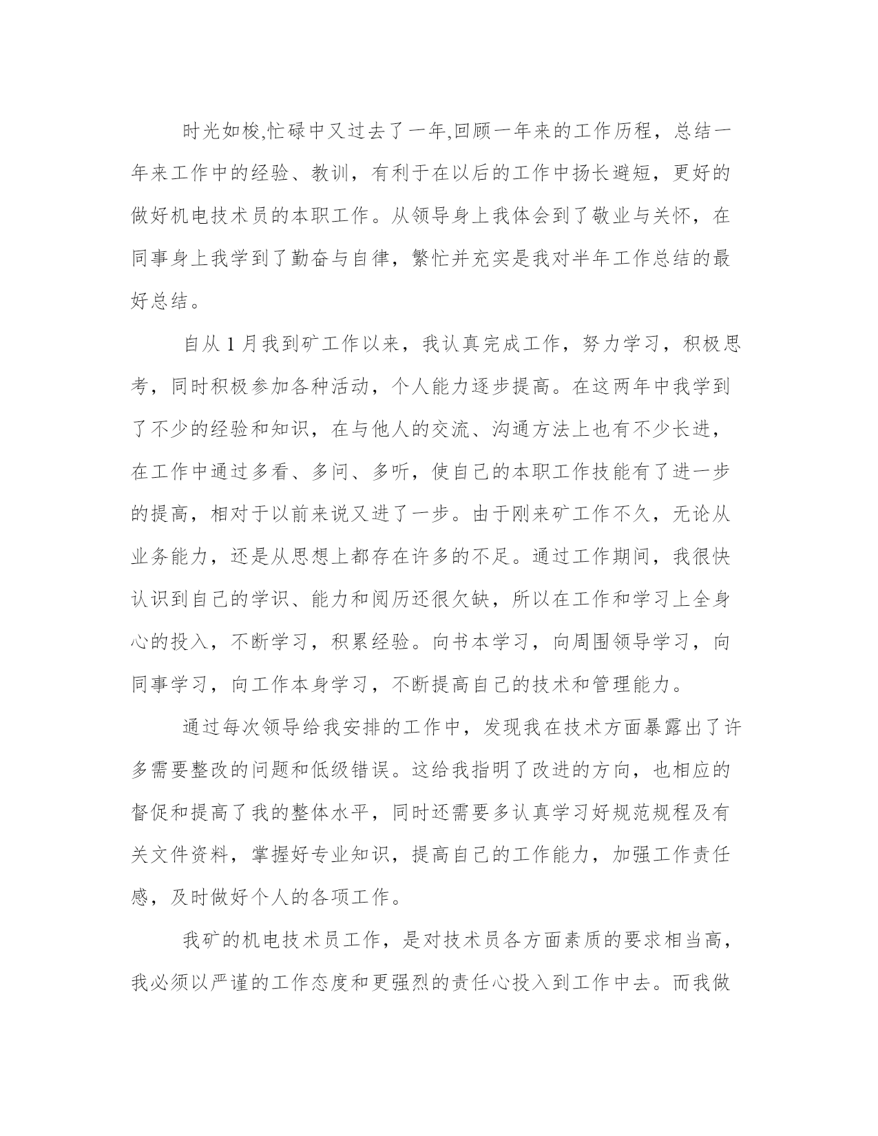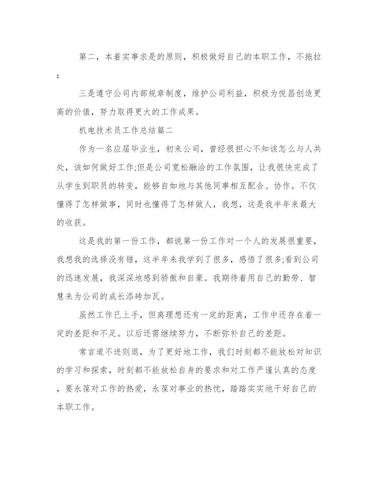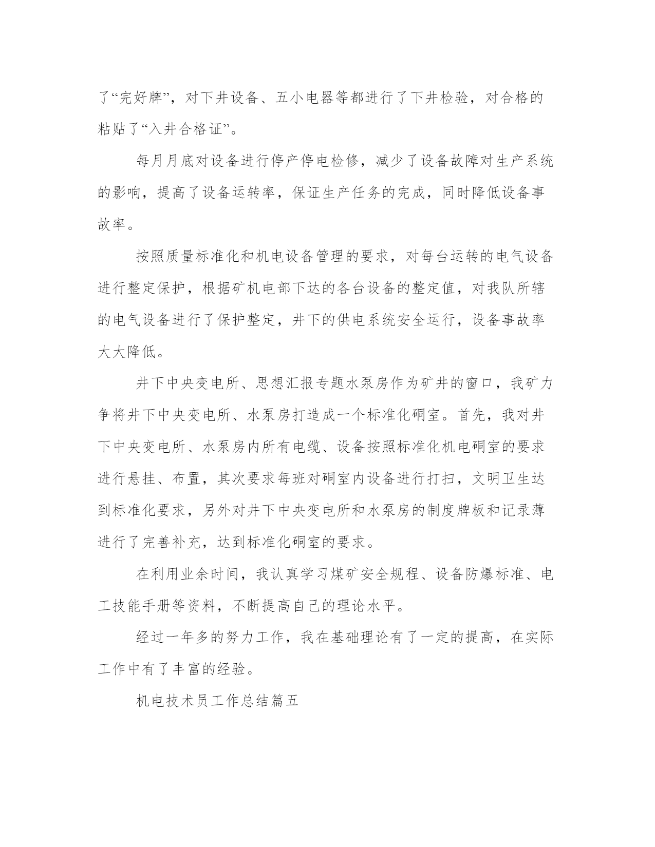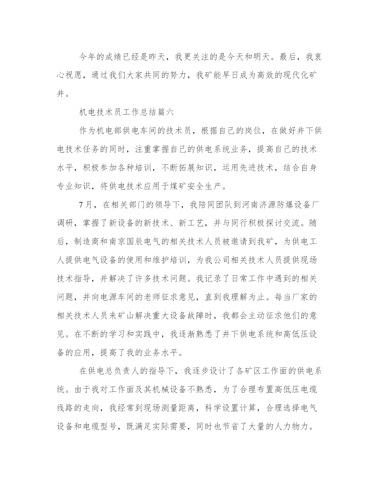2023年机电技术员工作总结(精选8篇)