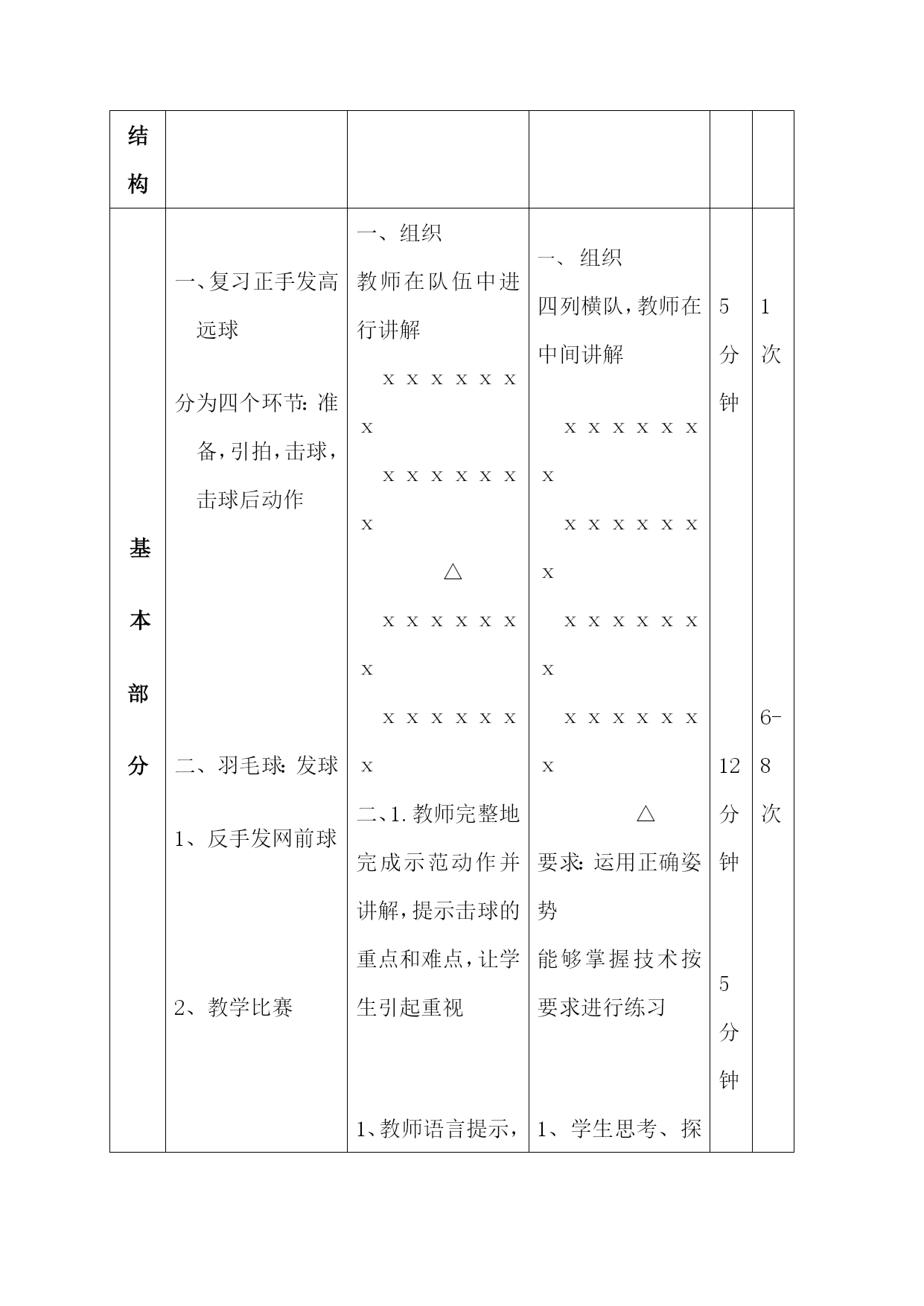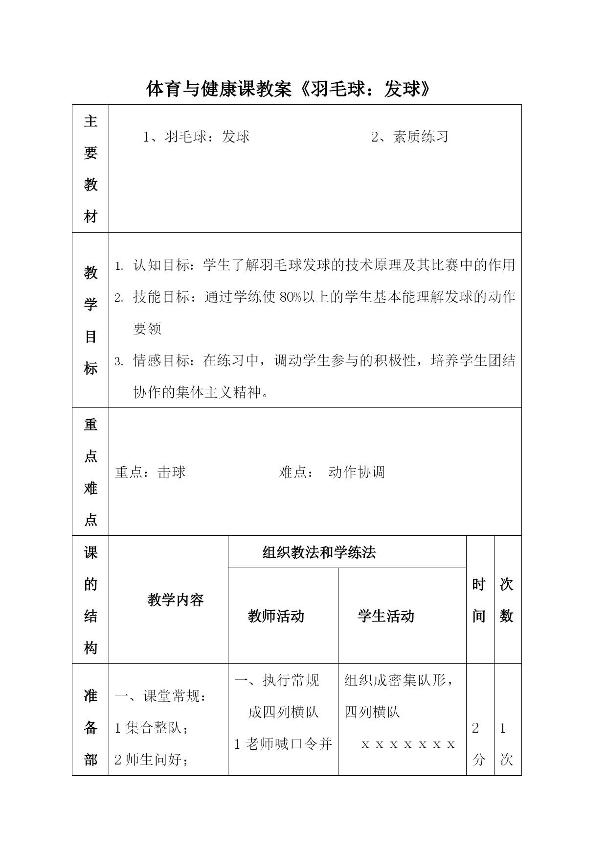 体育与健康课教案《羽毛球:发球》-【精品通用教辅文档】.doc