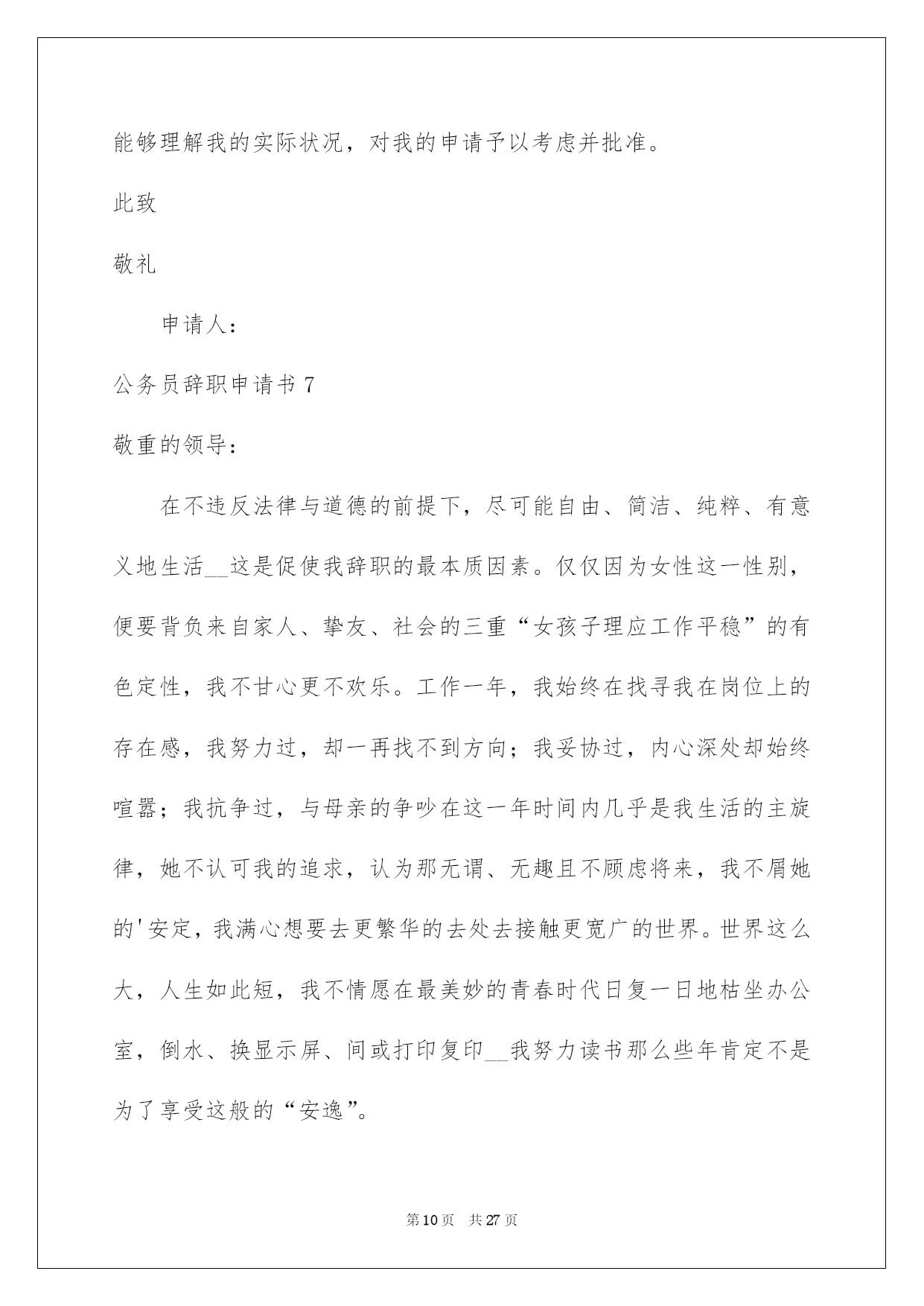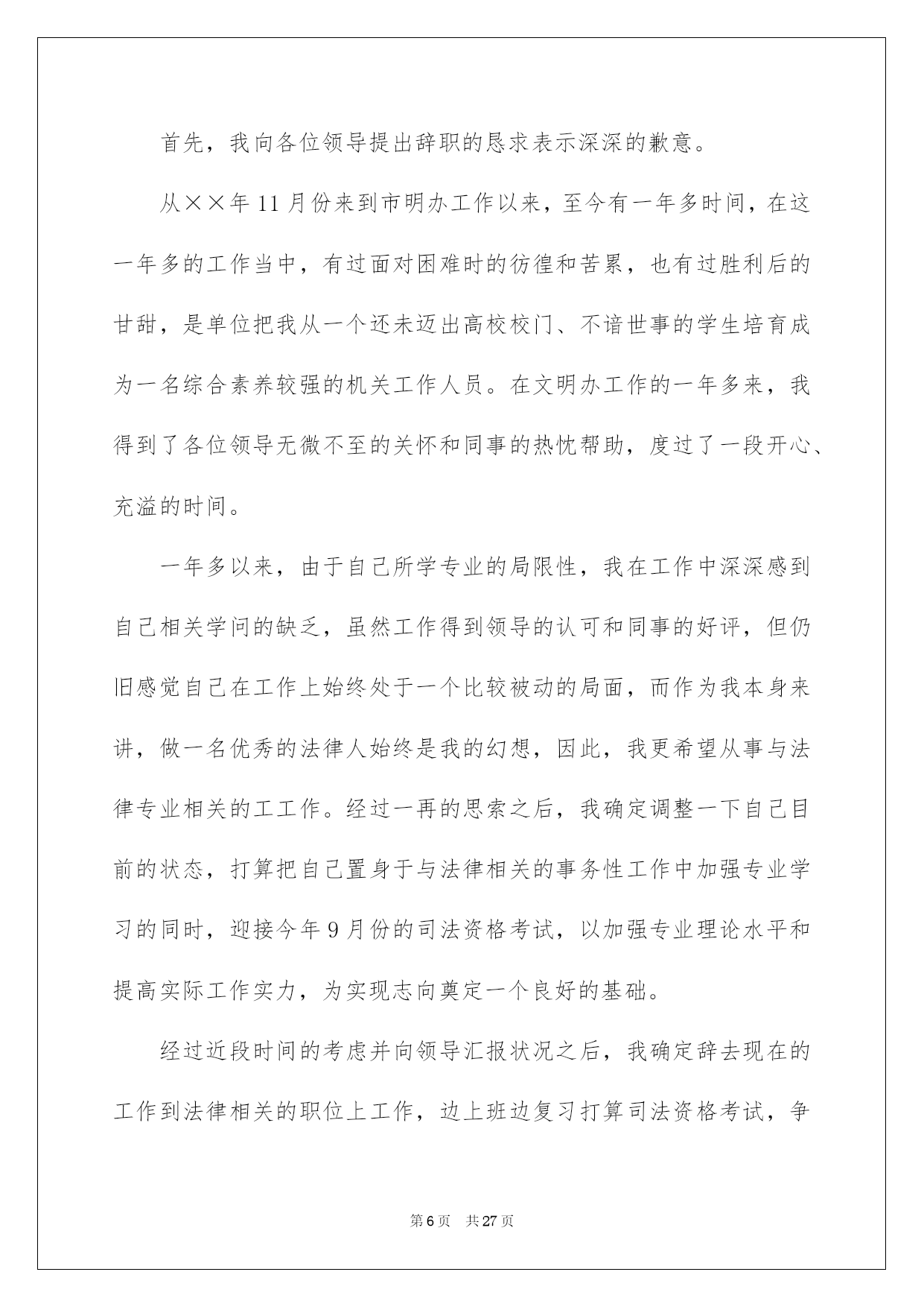第PAGE\*Arabic\*MERGEFORMAT27页共NUMPAGES\*Arabic\*MERGEFORMAT27页第PAGE\*MERGEFORMAT27页共NUMPAGES\*MERGEFORMAT27页第PAGE\*MERGEFORMAT27页共NUMPAGES\*MERGEFORMAT27页第PAGE\*MERGEFORMAT27页共NUMPAGES\*MERGEFORMAT27页第PAGE\*MERGEFORMAT27页共NUMPAGES\*MERGEFORMAT27页第PAGE\*MERGEFORMAT27页共NUMPAGES\*MERGEFORMAT27页第PAGE\*MERGEFORMAT27页共NUMPAGES\*MERGEFORMAT27页第PAGE\*MERGEFORMAT27页共NUMPAGES\*MERGEFORMAT27页第PAGE\*MERGEFORMAT27页共NUMPAGES\*MERGEFORMAT27页第PAGE\*MERGEFORMAT27页共NUMPAGES\*MERGEFORMAT27页第PAGE\*MERGEFORMAT27页共NUMPAGES\*MERGEFORMAT27页2022公务员辞职申请书公务员辞职申请书在法律不断完善的社会中,申请书起到的作用越来越大,通过申请书,我们可以提出自己的恳求。为了让您在写申请书中更加简洁便利,以下是我收集整理的公务员辞职申请书,仅供参考,大家一起来看看吧。公务员辞职申请书1敬重的领导:您好!首先致以我深深地歉意,及怀着及其困难而愧疚的、恋恋不舍的心情、我写下这份沉重的辞职信。很缺憾自己在这个时候突然向单位领导提出辞职,纯粹是出于个人的缘由,以致不能在单位接着发展!我将要离开这个单位,离开这些曾经同甘共苦的,照看我的领导和同事,的确很舍不得,舍不得领导的信任及关怀,舍不得同事之间的那片真诚和友善。x单位是一个有着优良传统的单位,单位有着能进能退的人事管理机制,铁打的营盘流水的兵,我作为单位的一员,特殊是财务部门的主要会计,更要站好最终一班岗,财务工作更要无缝对接,更要向接班的会计交接得清晰明白,更不能辜负领导的期望。一个财务人员要来得明明白白,要走得清清晰楚。我担当多年的财务负责人定会带头模范执行。凡是单位的物品、及资料要毫无保留的办好交接,确保单位财务工作日后正常运行。我就要离开单位了,由于担当了经理重要岗位的缘由,在这里我举荐x接替我的工作,经我和她在单位财务一年多的时间里工作,我认为目前她是单位里唯一可以接替我的工作的会计,信任他肯定有实力并能够胜任工作,信任年轻人的她会比我做得更好。但是我还是要确定离开了,我恳请领导宽恕我的离开,批准我辞职,我深深地感谢你们!此致敬礼!辞职人:xx20xx年x月x日公务员辞职申请书2敬重的XX主任:您好!工作近四年来,发觉自己在工作、生活中,所学学问还有许多欠缺,已经不能适应社会发展的须要,因此渴望回到校内,接着深造。经过慎重考虑之后,特此提出申请:我自愿申请辞去在单位的一切职务,敬请批准。在单位近四年的时间里,我有幸得到了单位历届领导及同事们的倾心指导及热忱帮助。工作上,我学到了很多珍贵的科研阅历和实践技能,对科研工作有了大致的了解。生活上,得到各级领导与同事们的关照与帮助;思想上,得到领导与同事们的指导与帮助,有了更成熟与深刻的人生观。这近四年多的工作阅历将是我今后学习工作中的第一笔珍贵的财宝。在这里,特殊感谢XX领导和XX主任、XX主任、XX主任在过去的工作、生活中赐予的大力扶持与帮助。尤其感谢XX主任近二年来的关照、指导以及对我的信任和在人生道路上对我的指引。感谢全部赐予过我帮助的同事们。望领导批准我的申请,并请帮助办理相关离职手续,在正式离开之前我将仔细接着做好目前的每一项工作。祝您身体健康,事业顺心。并祝单位事业蓬勃发展。此致敬礼!辞职人:XX20xx年XX月XX日公务员辞职申请书3敬重的徐总及单位领导:您好!我是工程部的_,我很缺憾自己在这个时候向单位正式提出辞职。来到单位到现在大约半年了,单位里的人对我都很好。我诚心感谢徐总以及各位同事对我的照看与错爱,在这半年里,我学到了许多以前从未接触过的学问,将高校里头学到的工程学问运用到了实际当中,开阔了视野,熬炼了实力。而如今我却要辞职,只有缺憾与愧疚。因为诸多缘由,我确定参与今年公务员考试,以为工作两年再去读研是一个好的确定。假如我现在不辞职,我就是在单位里尸位素餐两年,因为在两年时间里,我不行能为单位做多少贡献。我或许能大致经验、学习这个工程建设的某些方面,可这只是对我有好处,